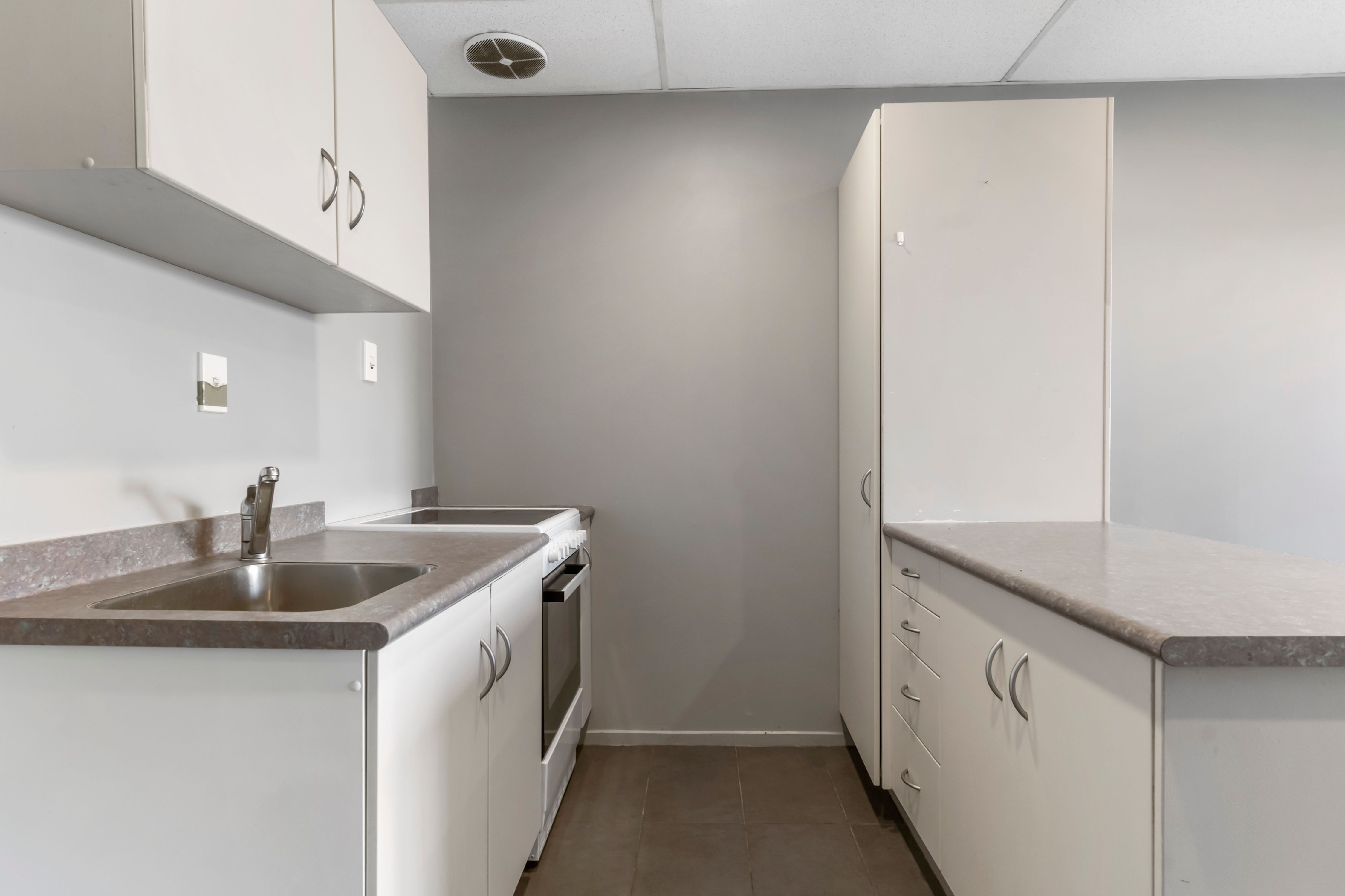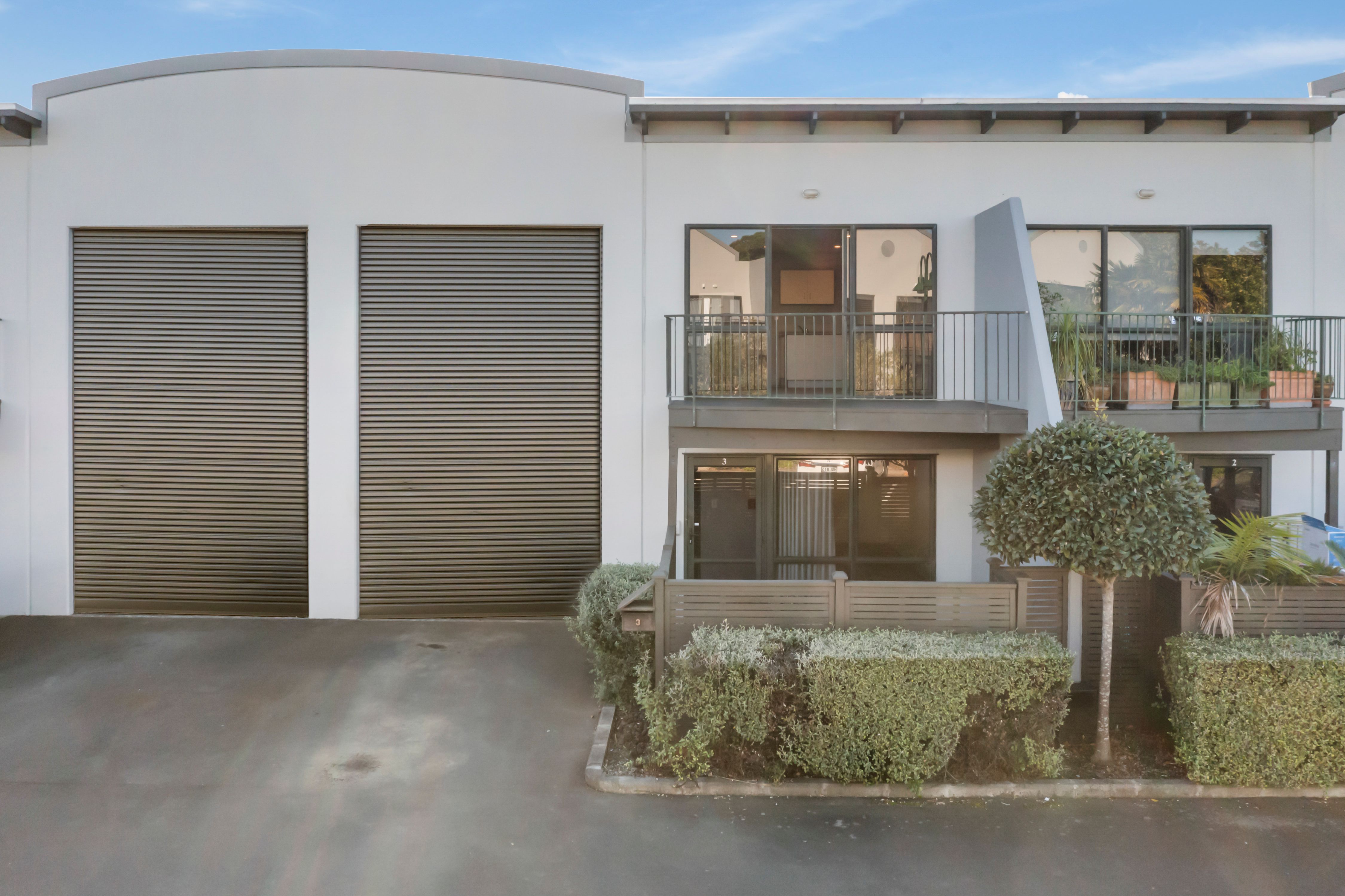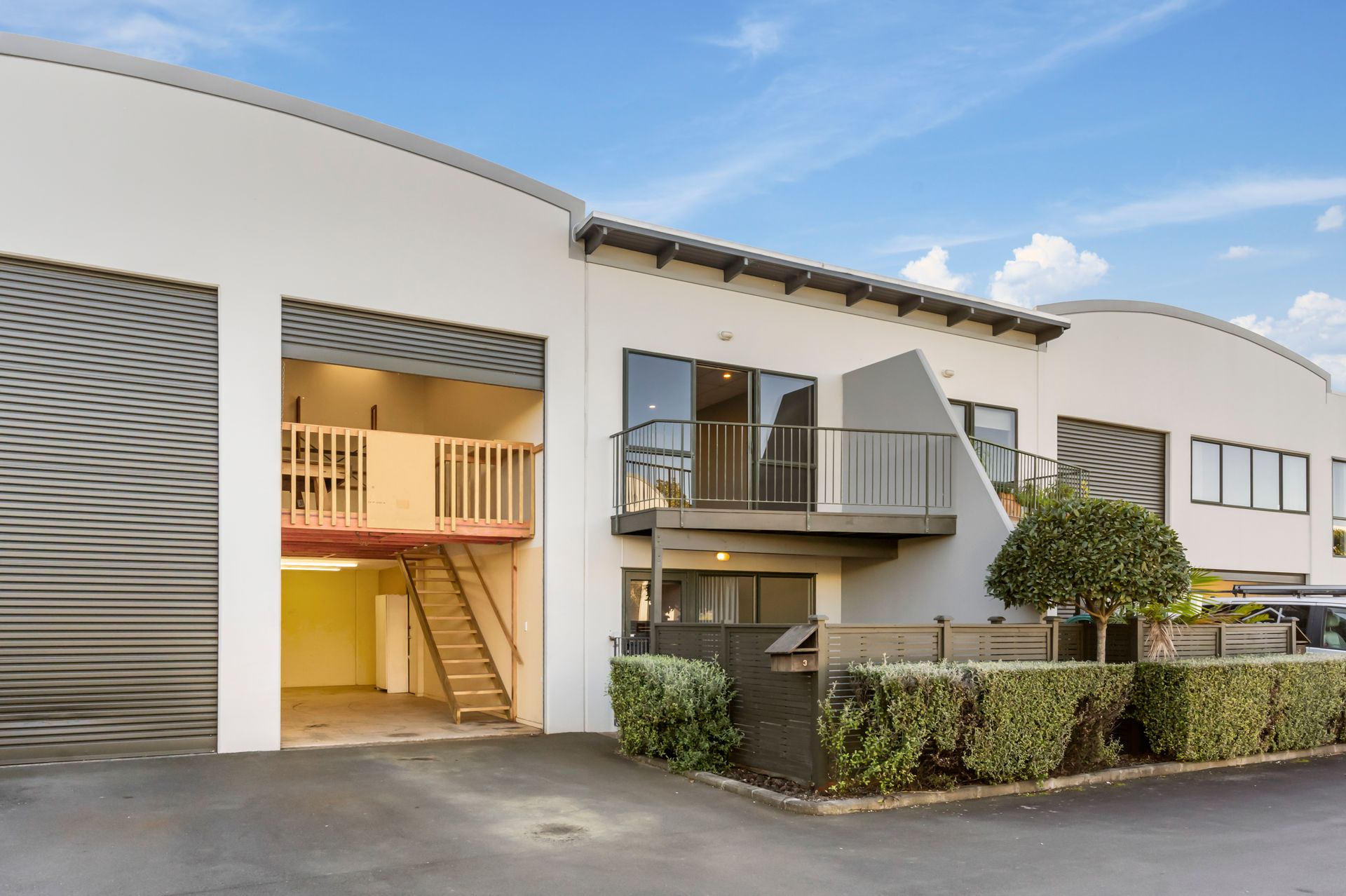 The apartment, which has the option of 1, 2 or 3 bedrooms, depending on your choice of configuration, offers great open plan flow and a balcony from upstairs or a private fully fenced courtyard downstairs. The complex is very quiet, well kept, and has a lovely community vibe. The commercial component could steal the downstairs bedroom as a public-facing office space, and utilise the high stud warehouse, that is accessible from the office or by the electric roller door. A bonus mezzanine allows for twice the storage capacity. This can easily be removed to allow for the high stud traffic.