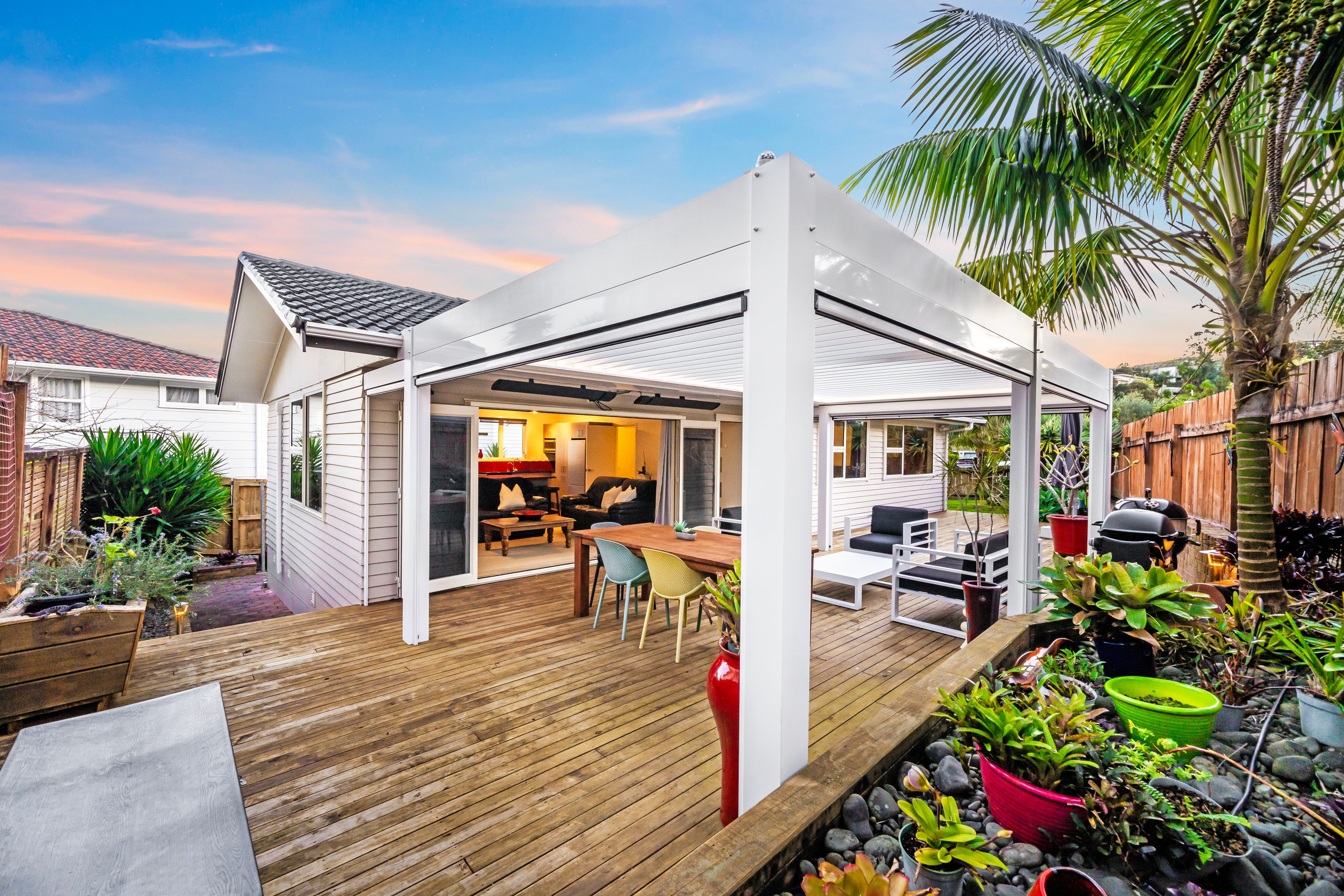 Boasting three bedrooms, fabulous open plan living and a super sized entertaining deck with Louvre system that is permanently BBQ ready, this beautifully presented Sunnynook home is ready and waiting for a new family. Situated at the end of a quiet cul-de-sac the current owners have loved their life here but it is time for them to upsize. Will you be the lucky next to move in and create memories? Let's have a look at some of the top features: