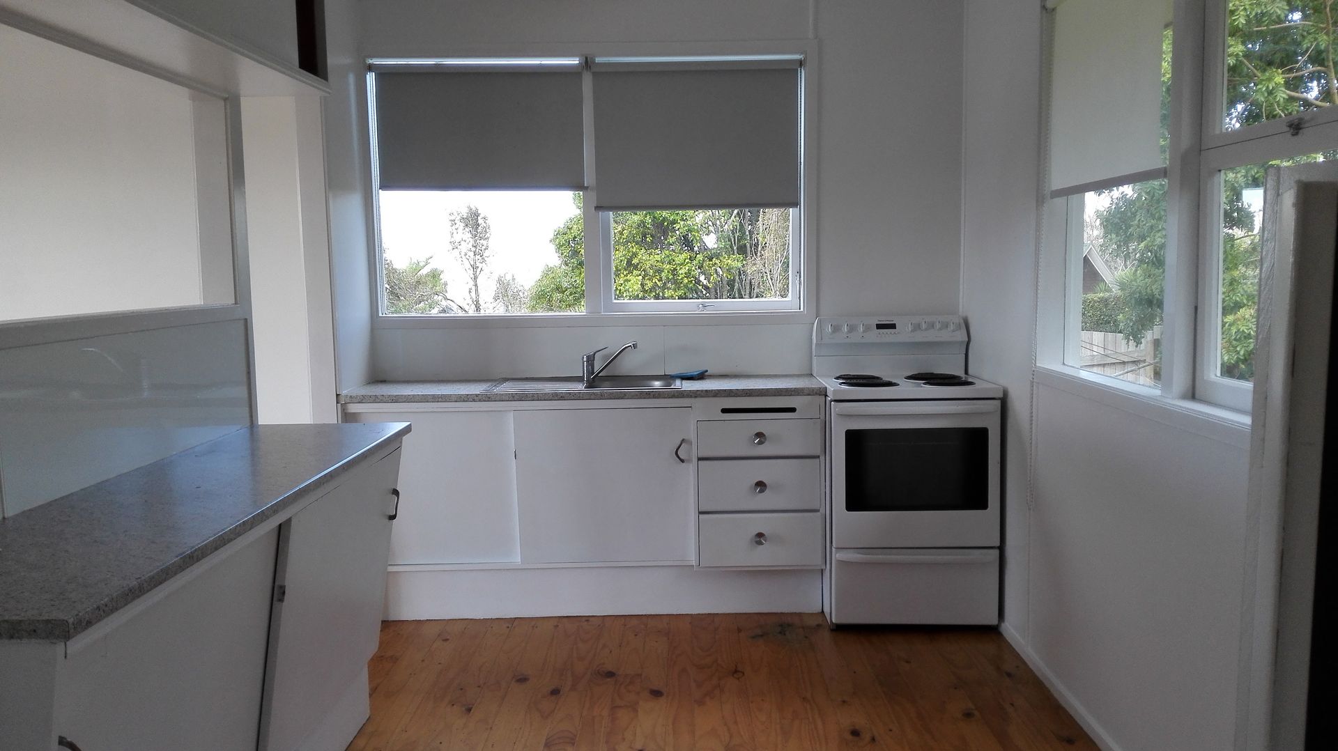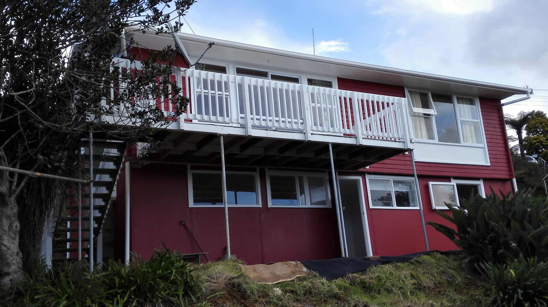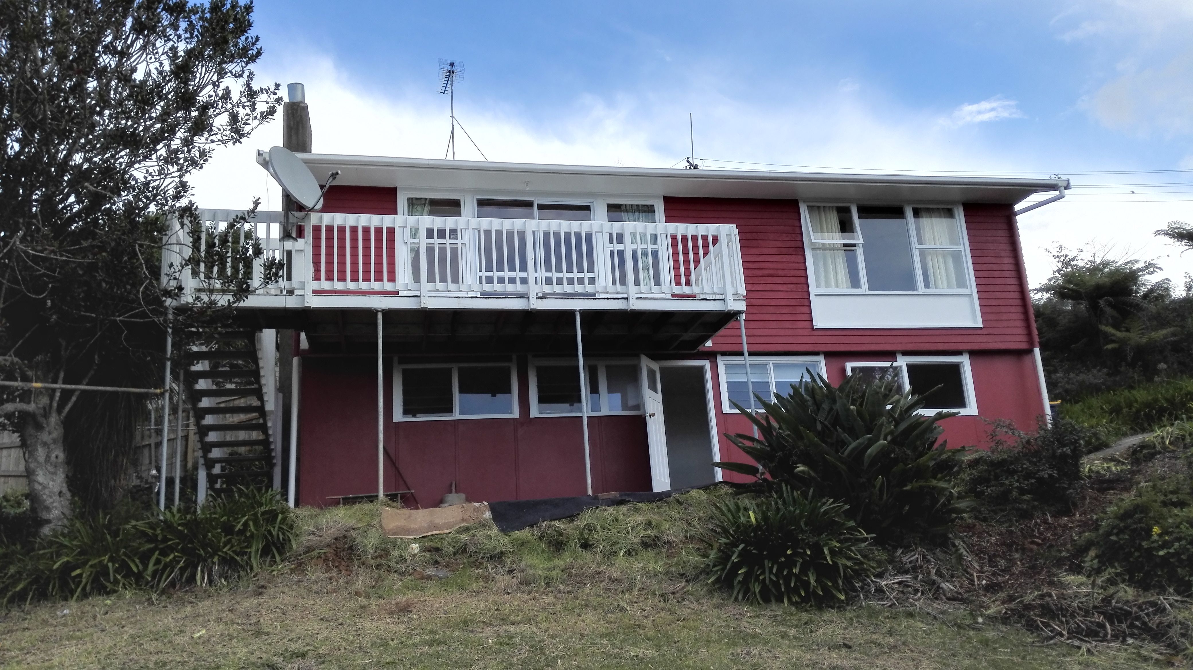 -upstairs two bedrooms with open plan lounge, dining and kitchen flows to nice deck with lovely views. Separate bathroom and toilet.