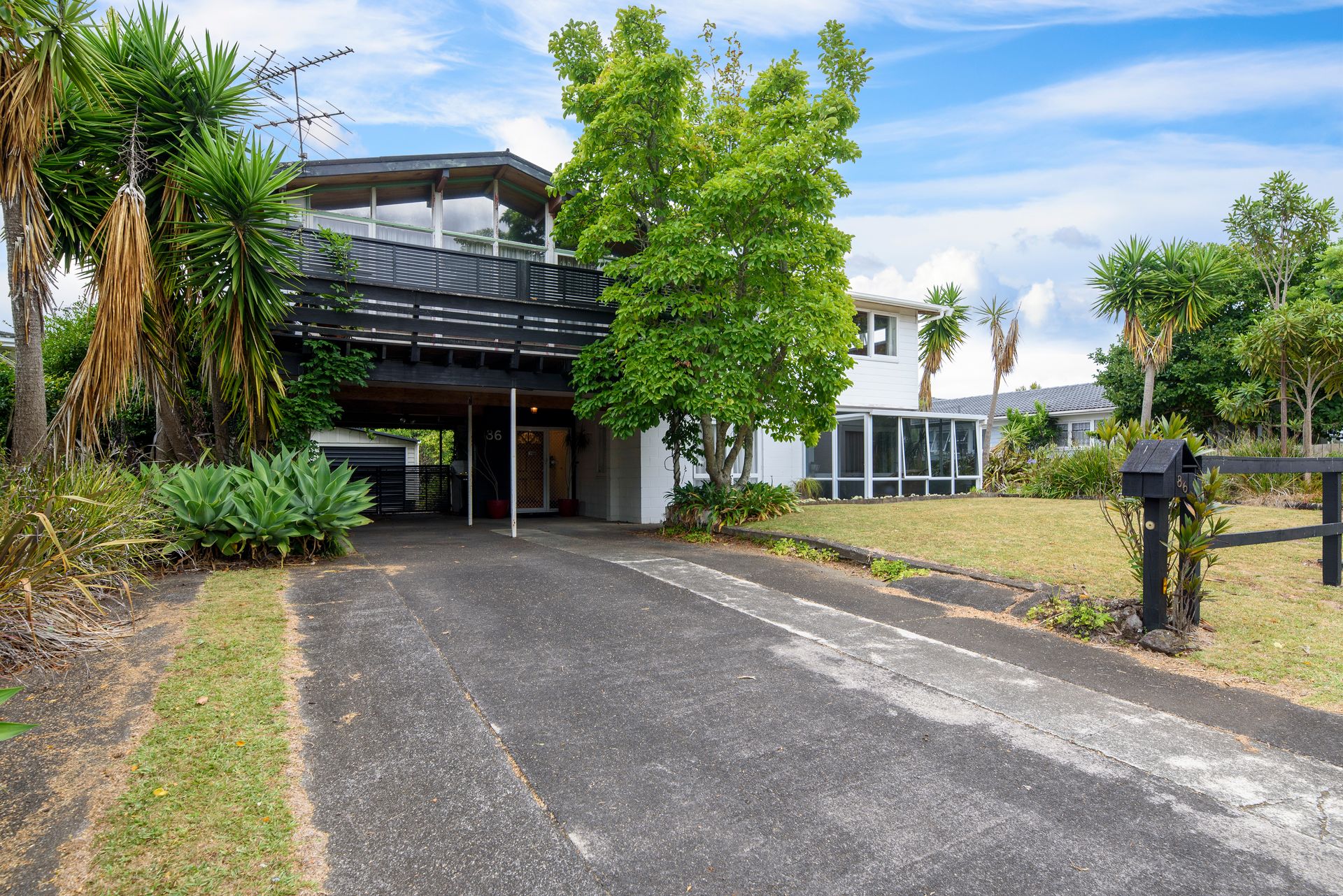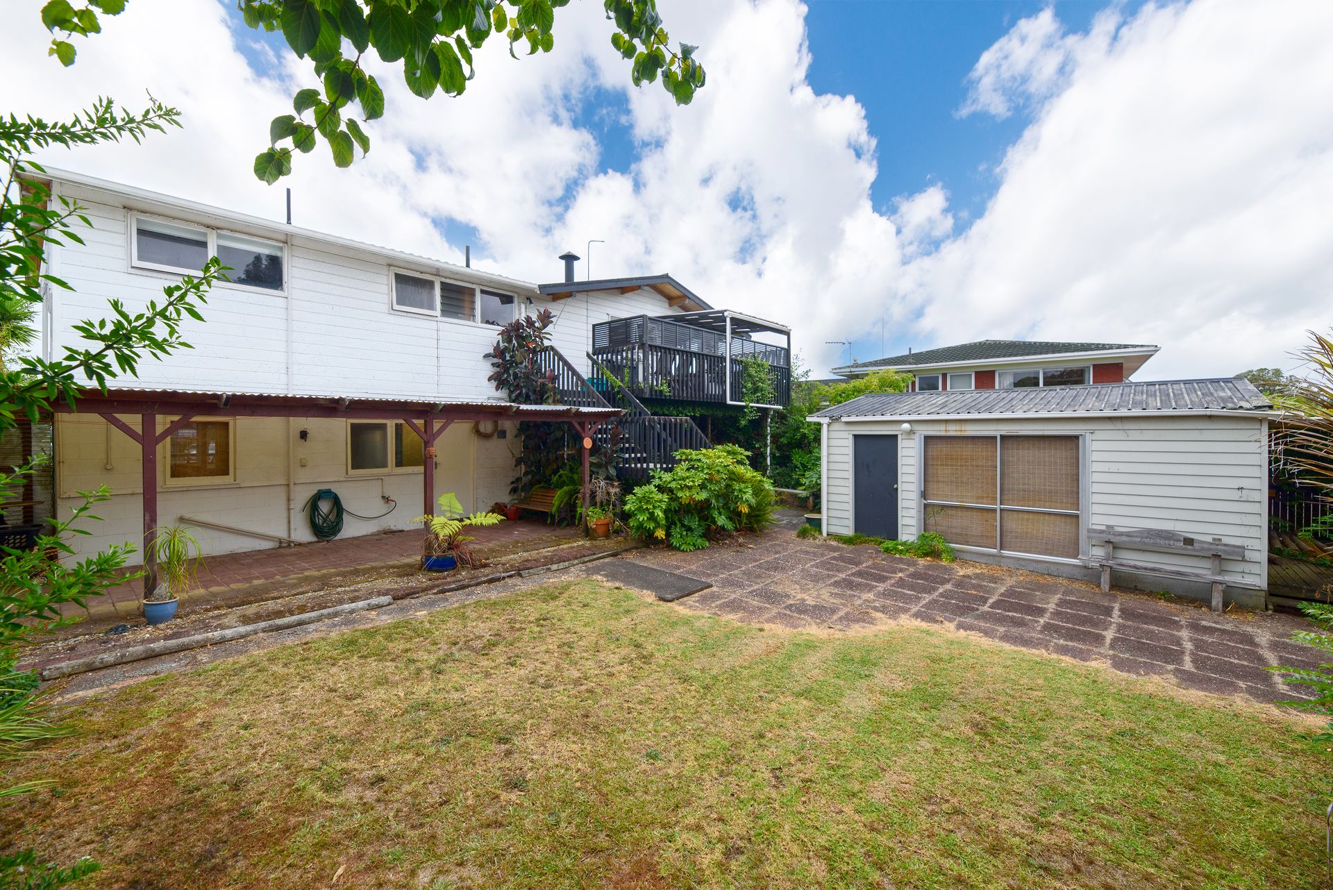Property 1 at 86 Elliot Street comprises a tidy and sunny elevated family home on a level 784 sqm (approx) well-established section with north-facing living areas flanked by decking. Four double bedrooms share two bathrooms and there's a large ground floor rumpus room with an attached conservatory. Configuration of the floor plan offers scope to create a yield from the downstairs quarters and an ancillary detached garage could also convert to a sleepout. Completely flat for ease of access, partially fenced, and at street frontage.