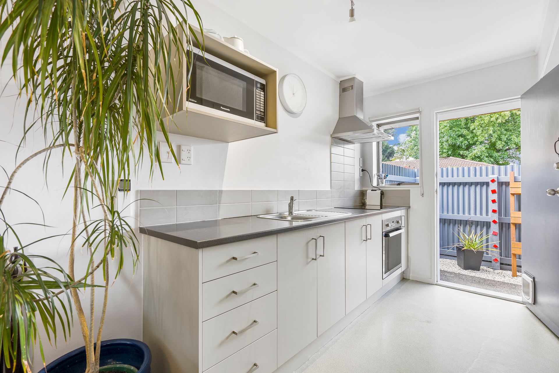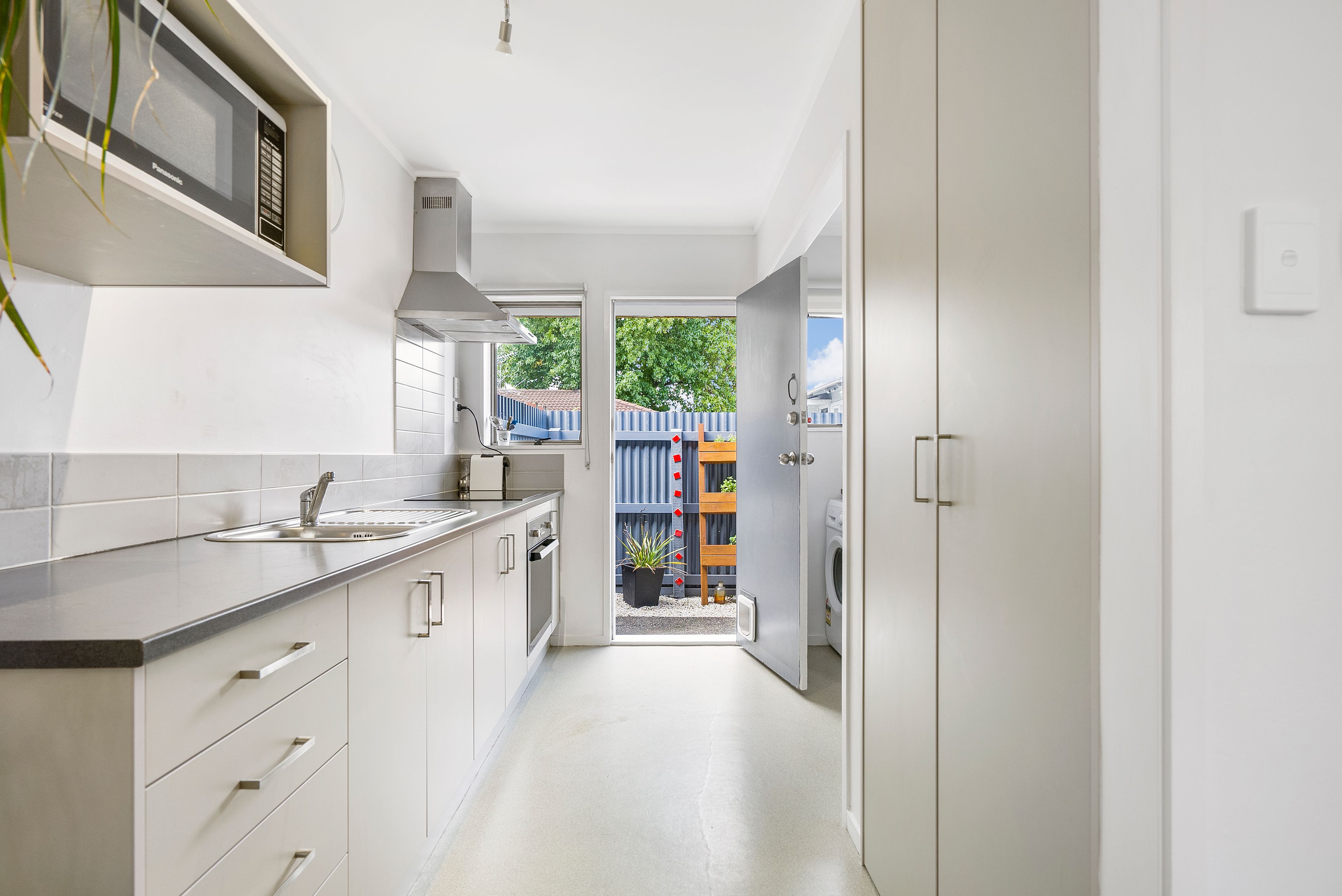 Lovely two bedroom unit, modern kitchen, private deck and courtyard off the living area. Off street parking and a single carport.