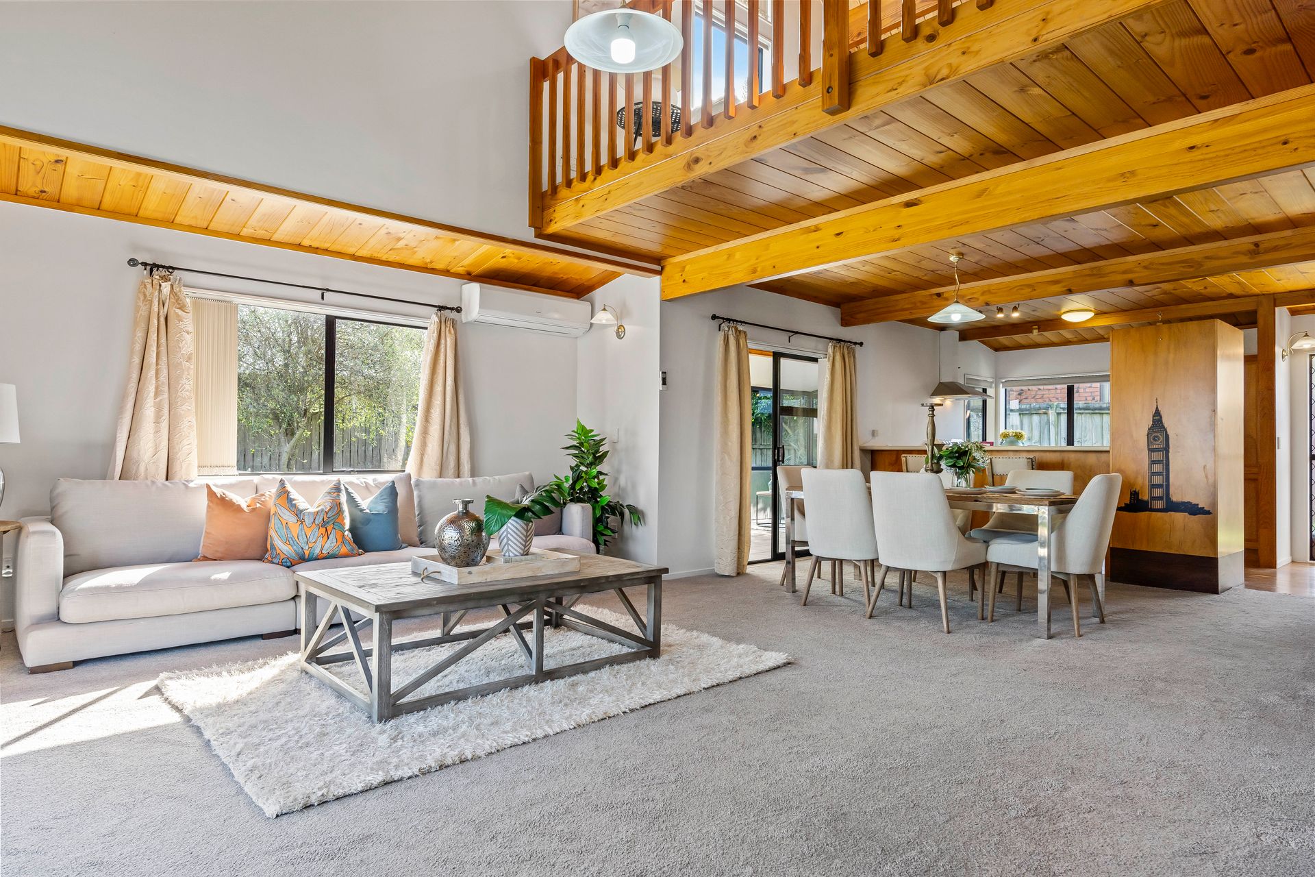 * Open plan kitchen/dining and living spaces.