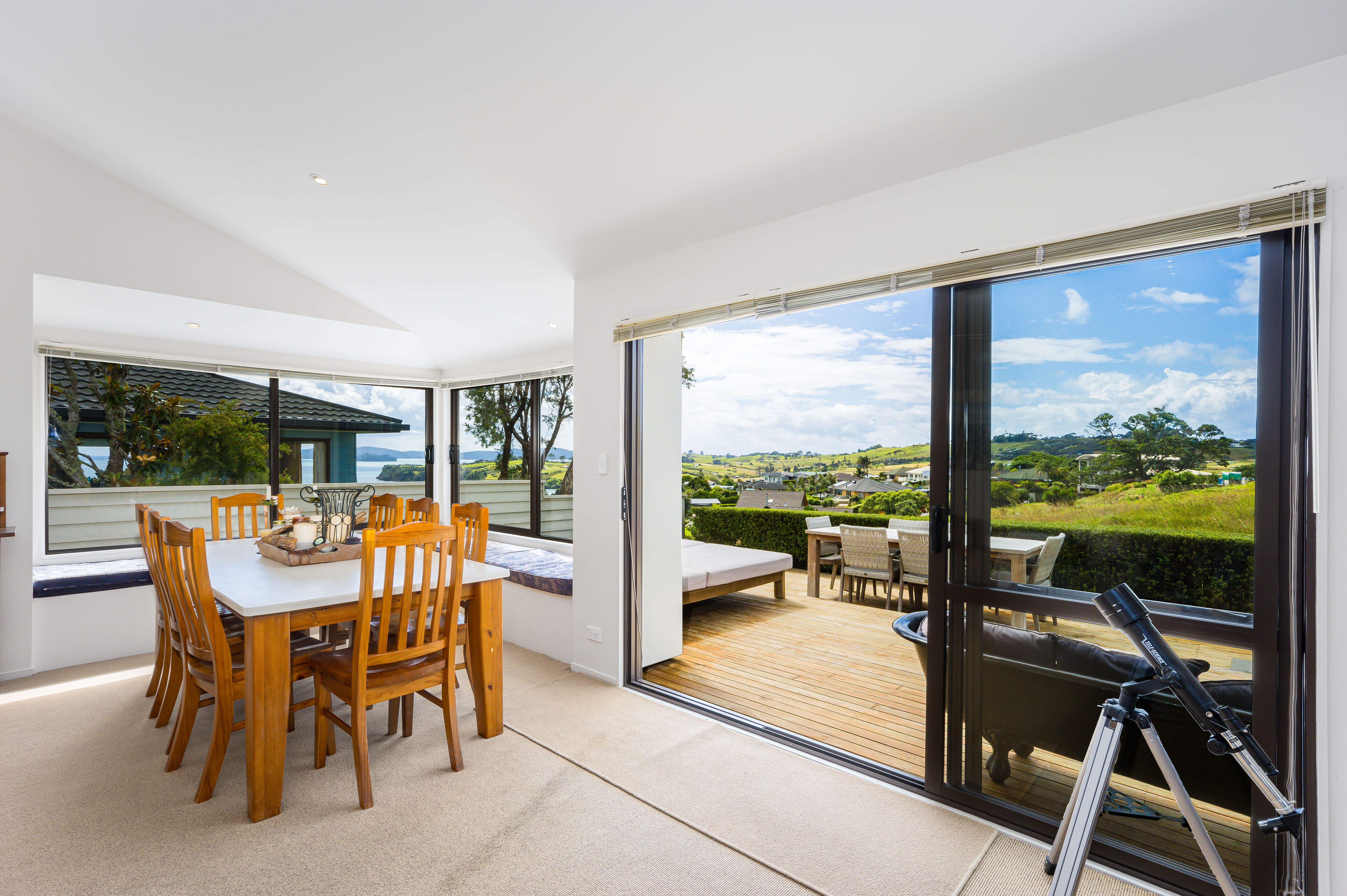 This home features three spacious bedrooms and two bathrooms with seamless indoor/outdoor flow from the open plan kitchen, dining, and lounge areas onto a large sun-soaked deck. Take in stunning views of yachts below and picturesque Mayne, Kawau and Little Barrier Island's and beyond. Downstairs, you'll find a large 10m double car garage that doubles as a rumpus room or bunkhouse with laundry, and a versatile workshop/storage room to suit all your needs. With ample storage throughout and off-street space for your boat, tractor, and vehicles.