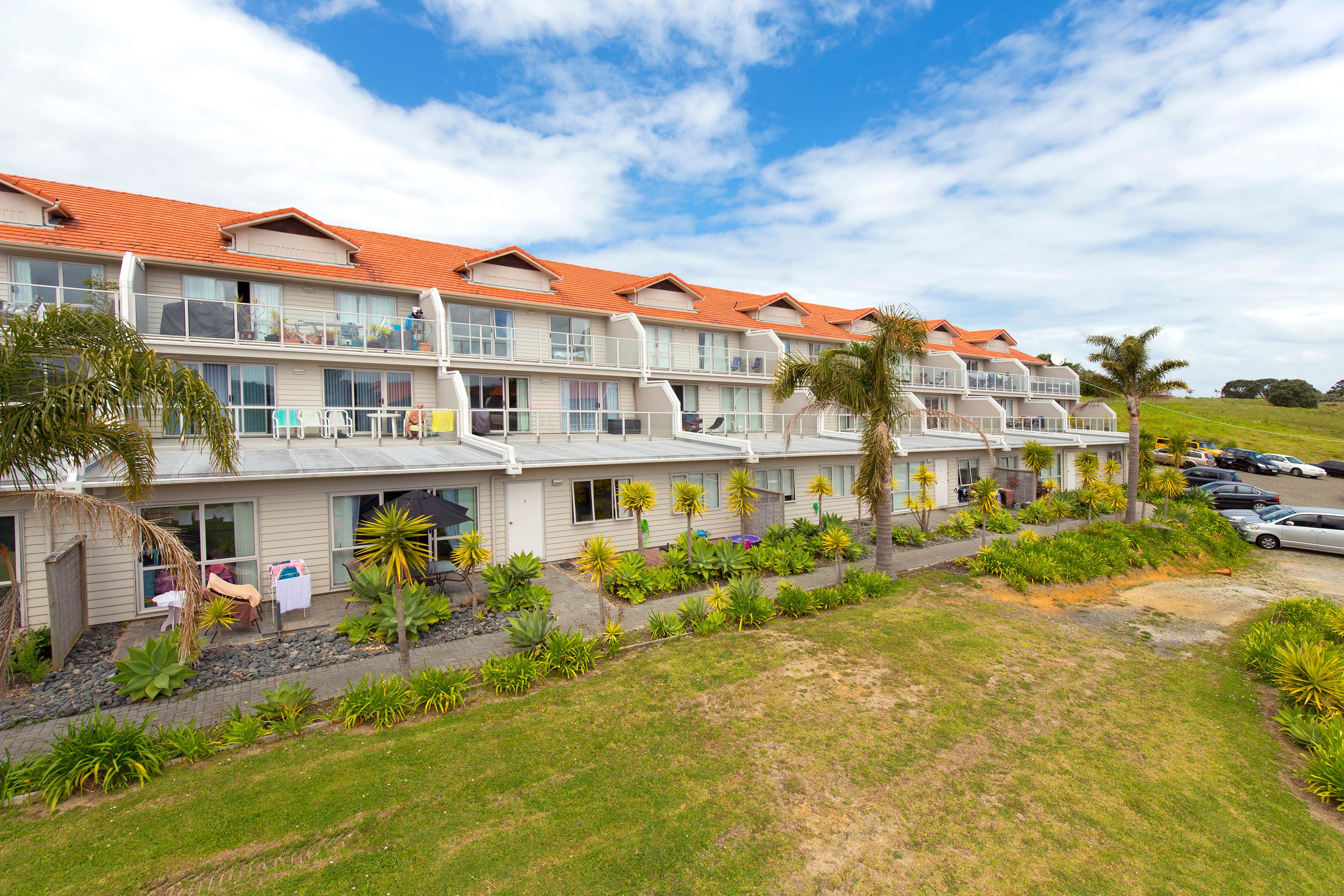 This spacious three bedroom top-floor apartment is in the Santa Rosa complex at Gulf Harbour. It offers open-plan living flowing out onto a sunny balcony, that makes the most of its high position and aspect, for relaxing and entertaining. There are three bedrooms and a family bathroom. It also comes with a carpark.