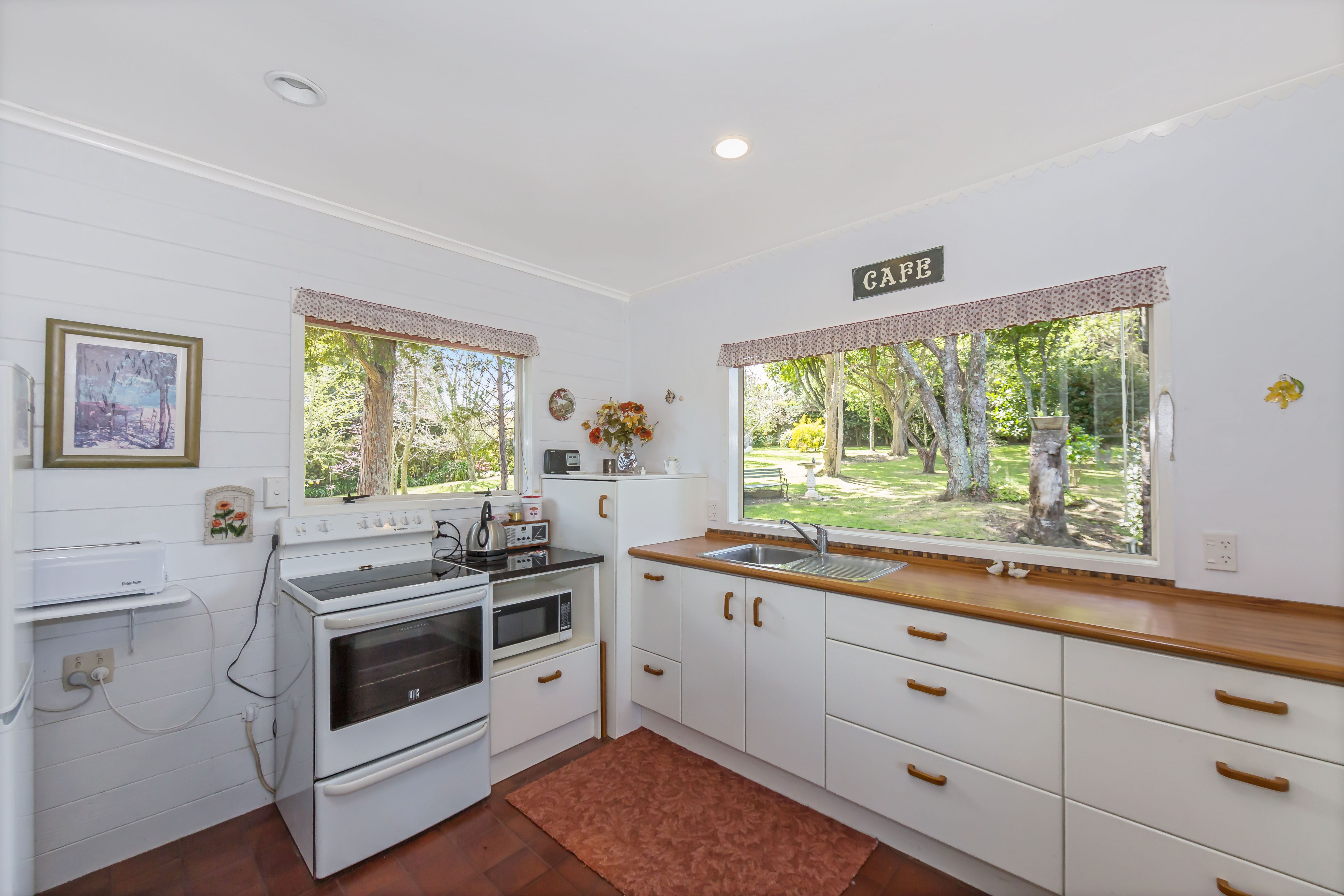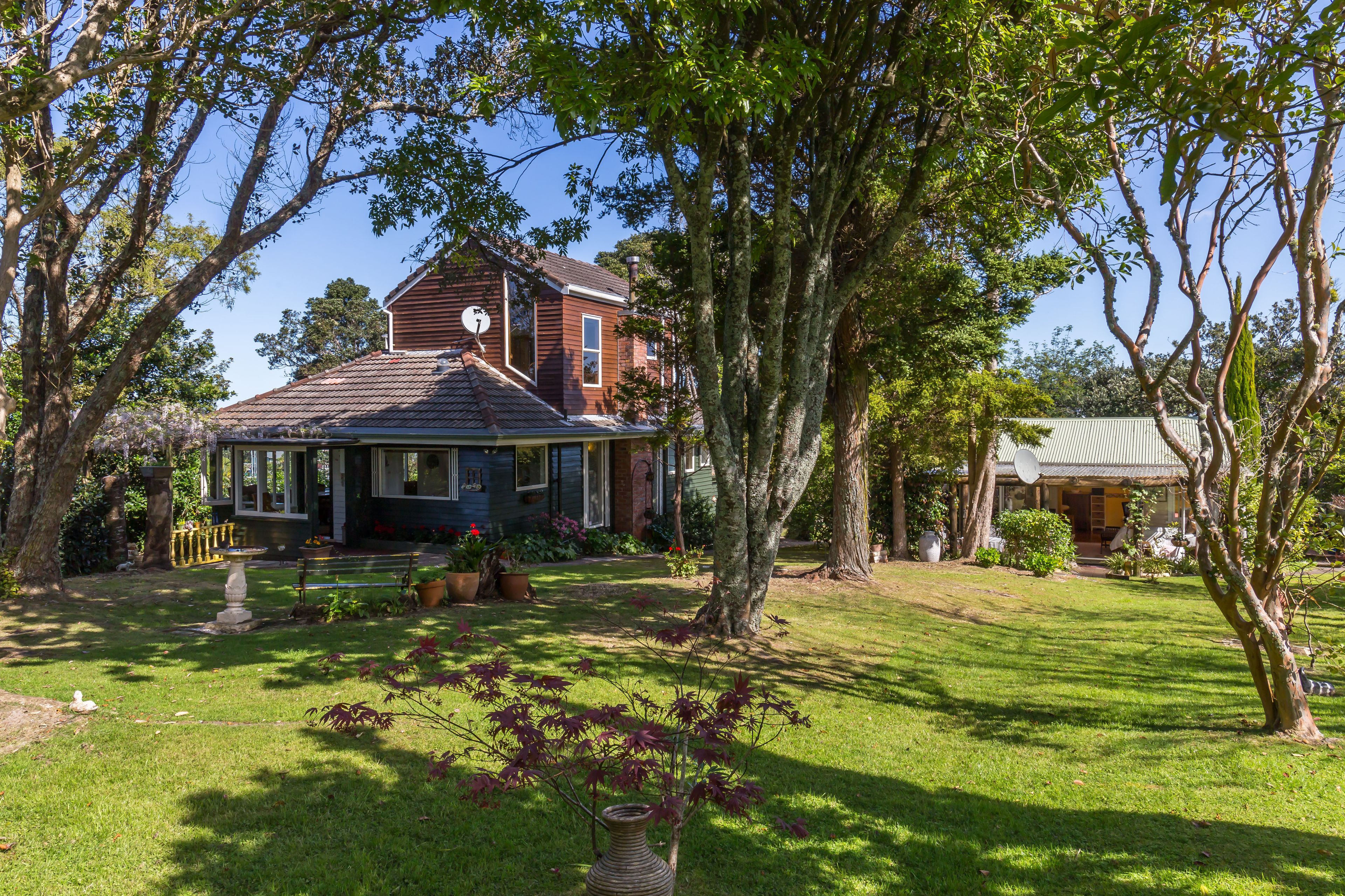 Tucked away in a magical park-like, private setting this property spreads over a large cross-lease section (2/3 share of 3202m2) with a well- built weatherboard and cedar home and a very well appointed studio that offers so many options. The Main House features 2 bedrooms, 2 bathrooms, 2 lounges with stunning seaviews from both levels and presents in immaculate original condition.