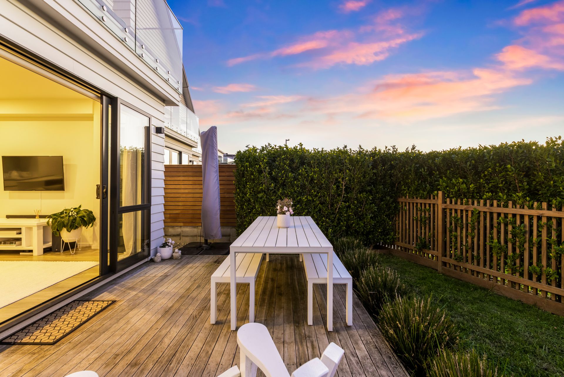 • Sundrenched north-facing deck, the perfect space for al fresco dining, featuring glass balustrades for uninterrupted views to the peaceful bush of the estuary