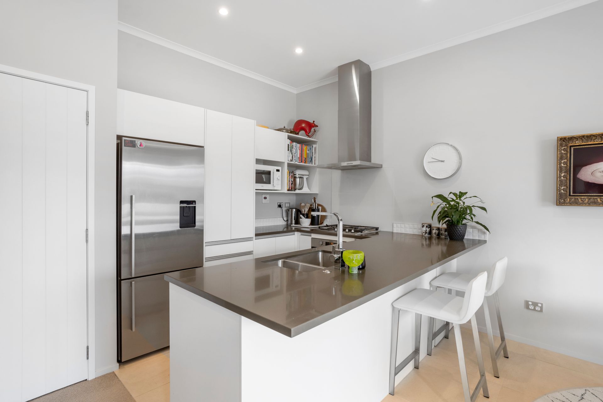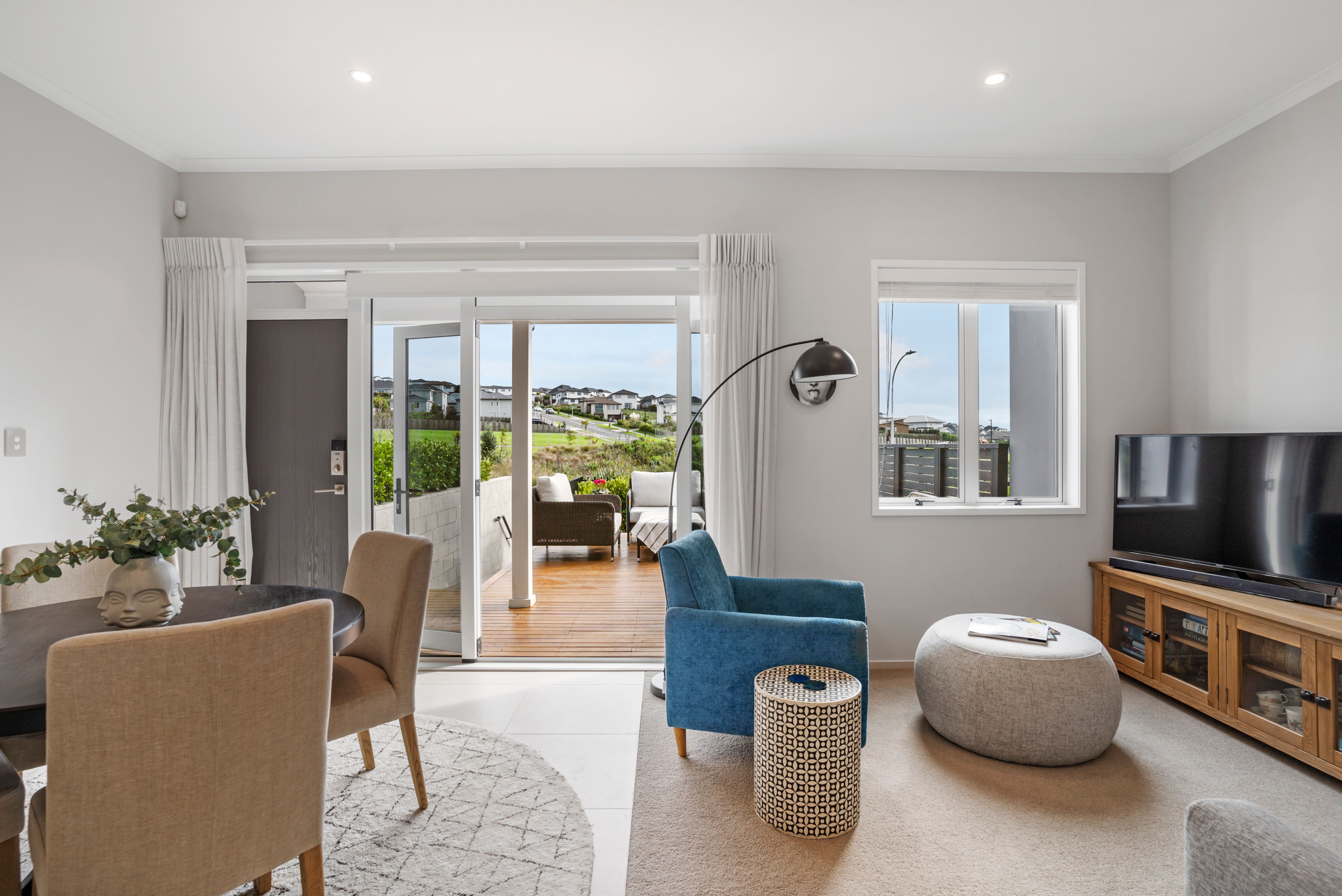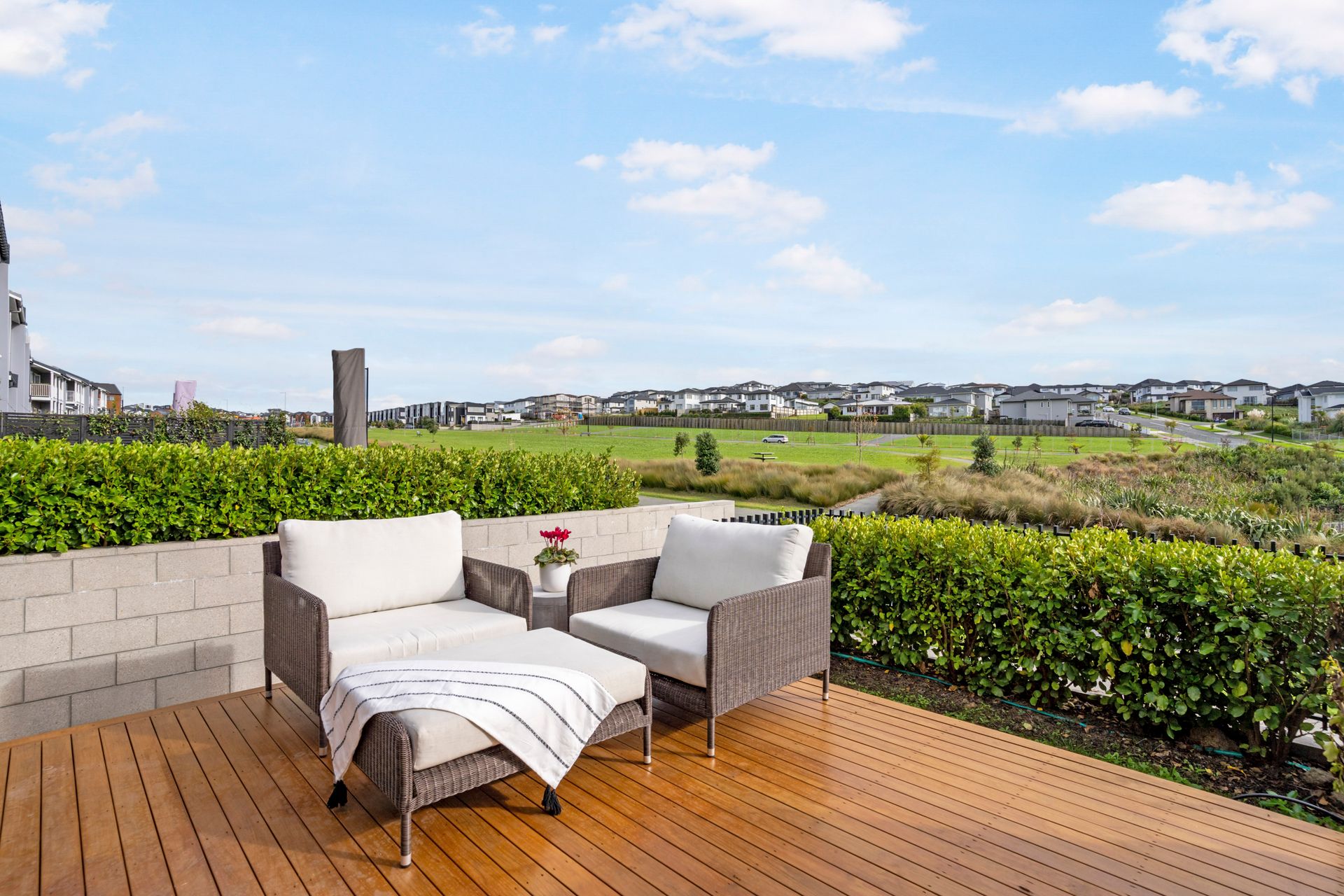 The living area seamlessly flows onto a north-facing deck, where you can bask in the gentle sunlight and relish in the picturesque outlook. Whether you're enjoying your morning coffee or hosting gatherings with loved ones, this outdoor oasis promises moments of blissful relaxation. Venture upstairs to discover two generously sized bedrooms, each offering peaceful retreats for rest and rejuvenation. The master bedroom boasts a generous sized walk -in wardrobe and unobstructed views of Bonair Park.
