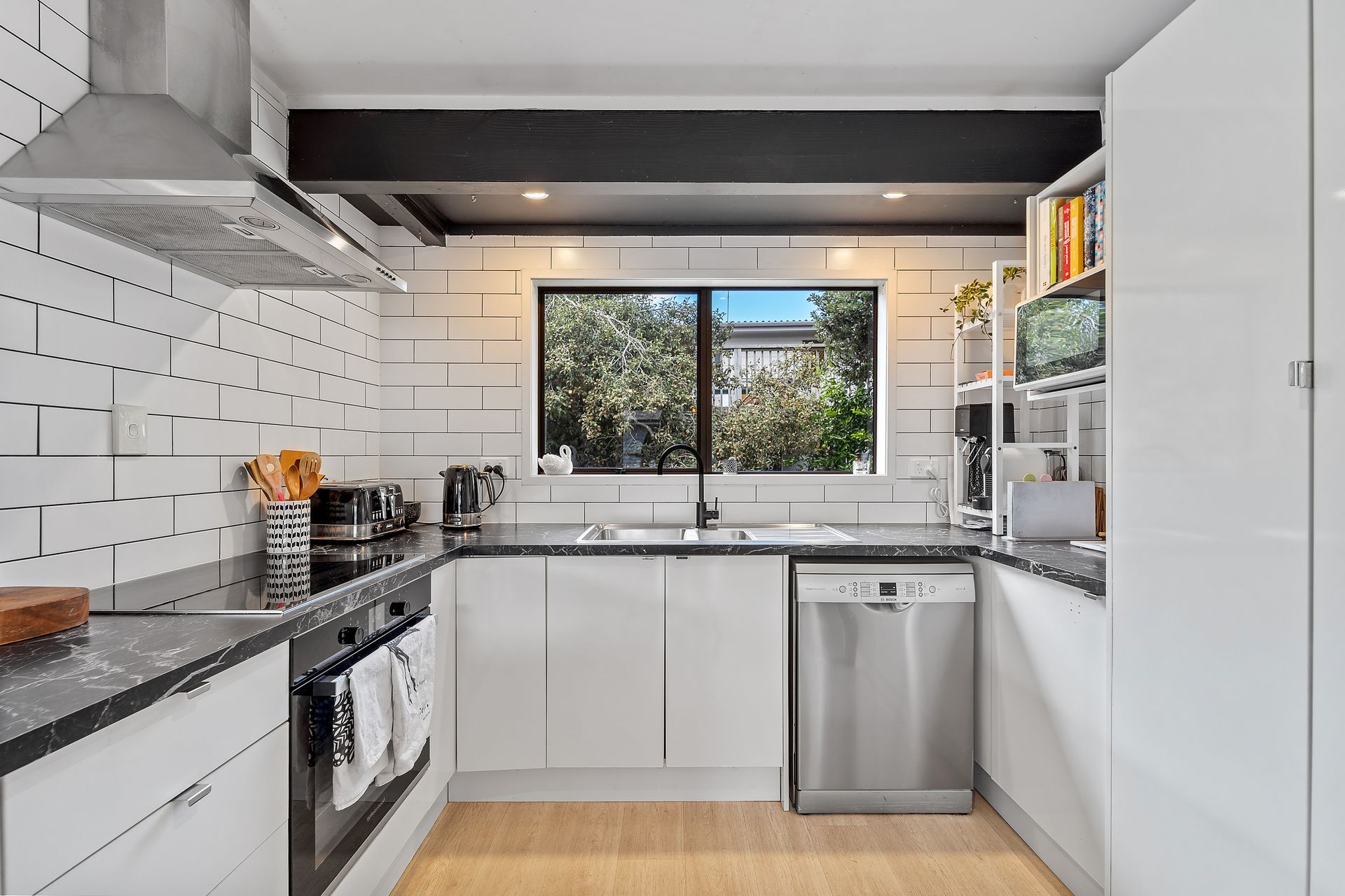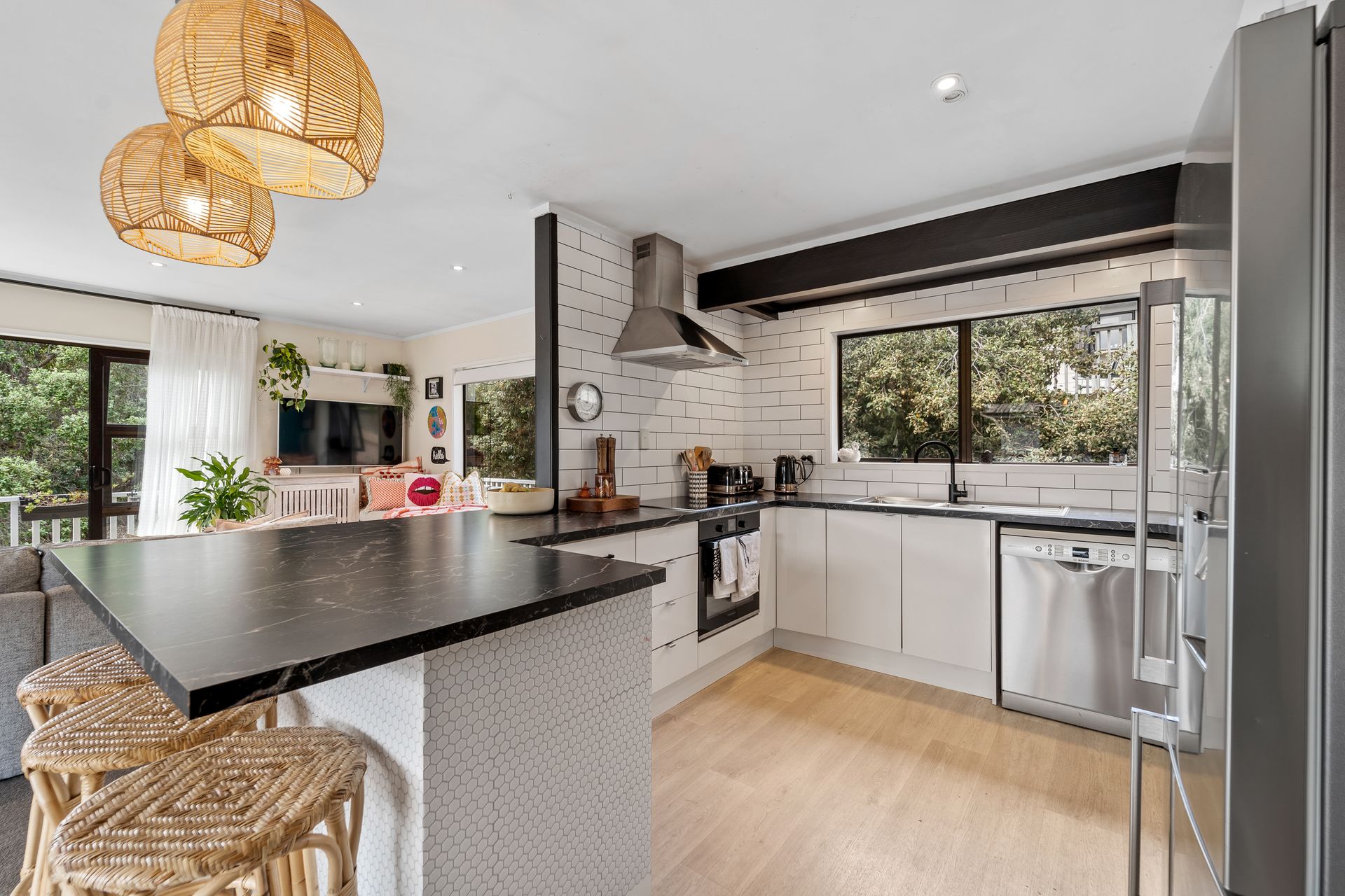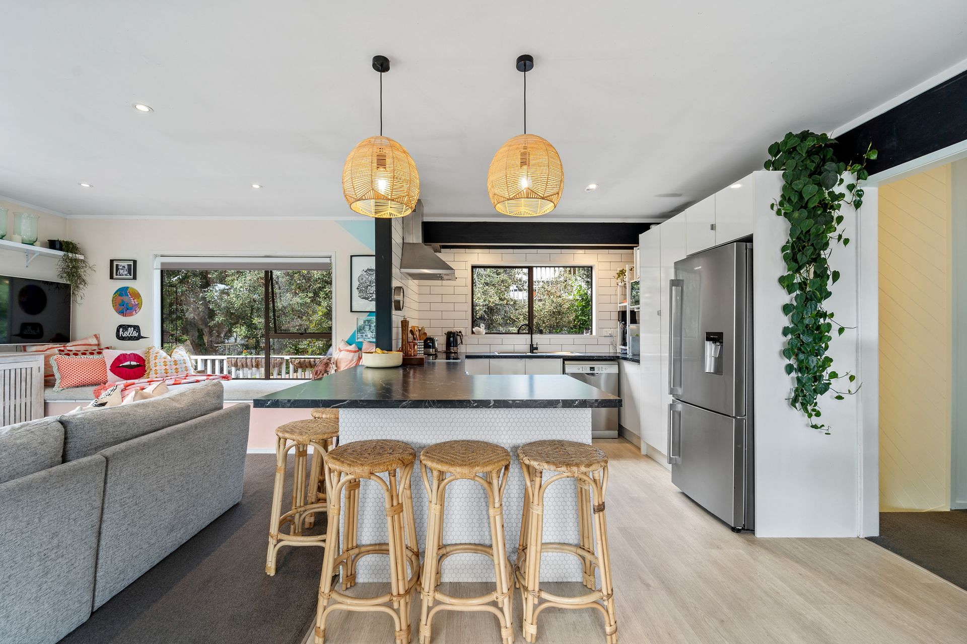 Upstairs, the home features 3 bedrooms, a funky open plan kitchen, lounge and dining area that flows out onto large wrap-around decks - perfect for soaking up the sun and enjoying the views. The home is move-in ready, and there's plenty of room for the boat and kids to play or even pitch a tent in the garden.