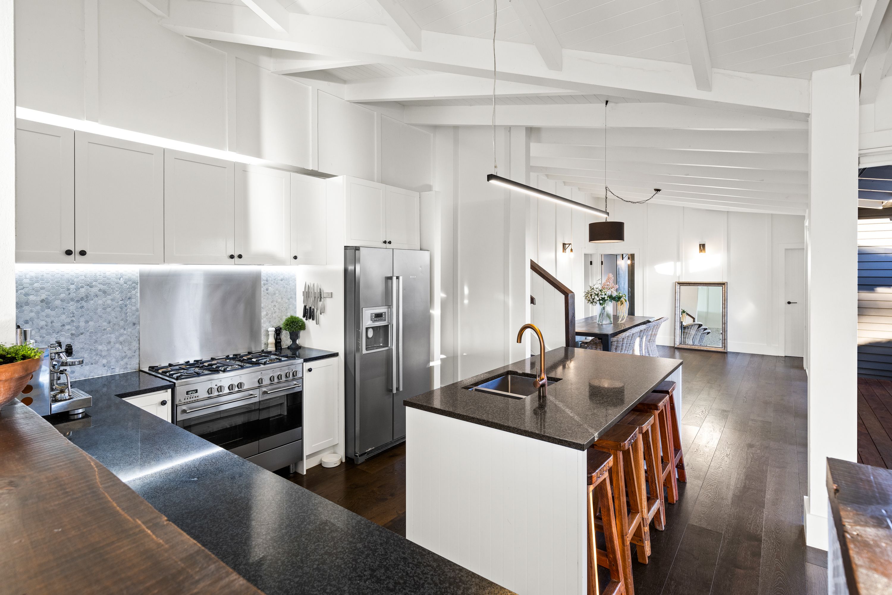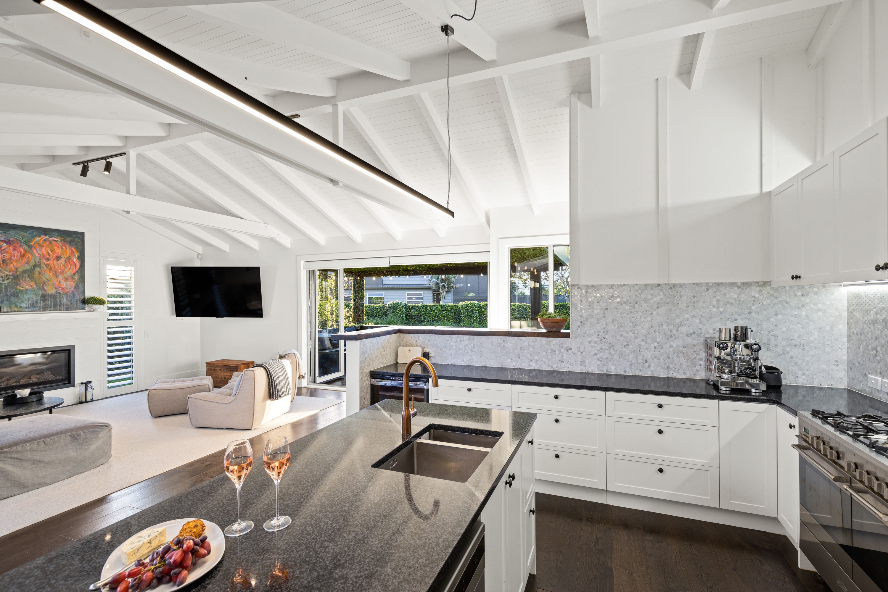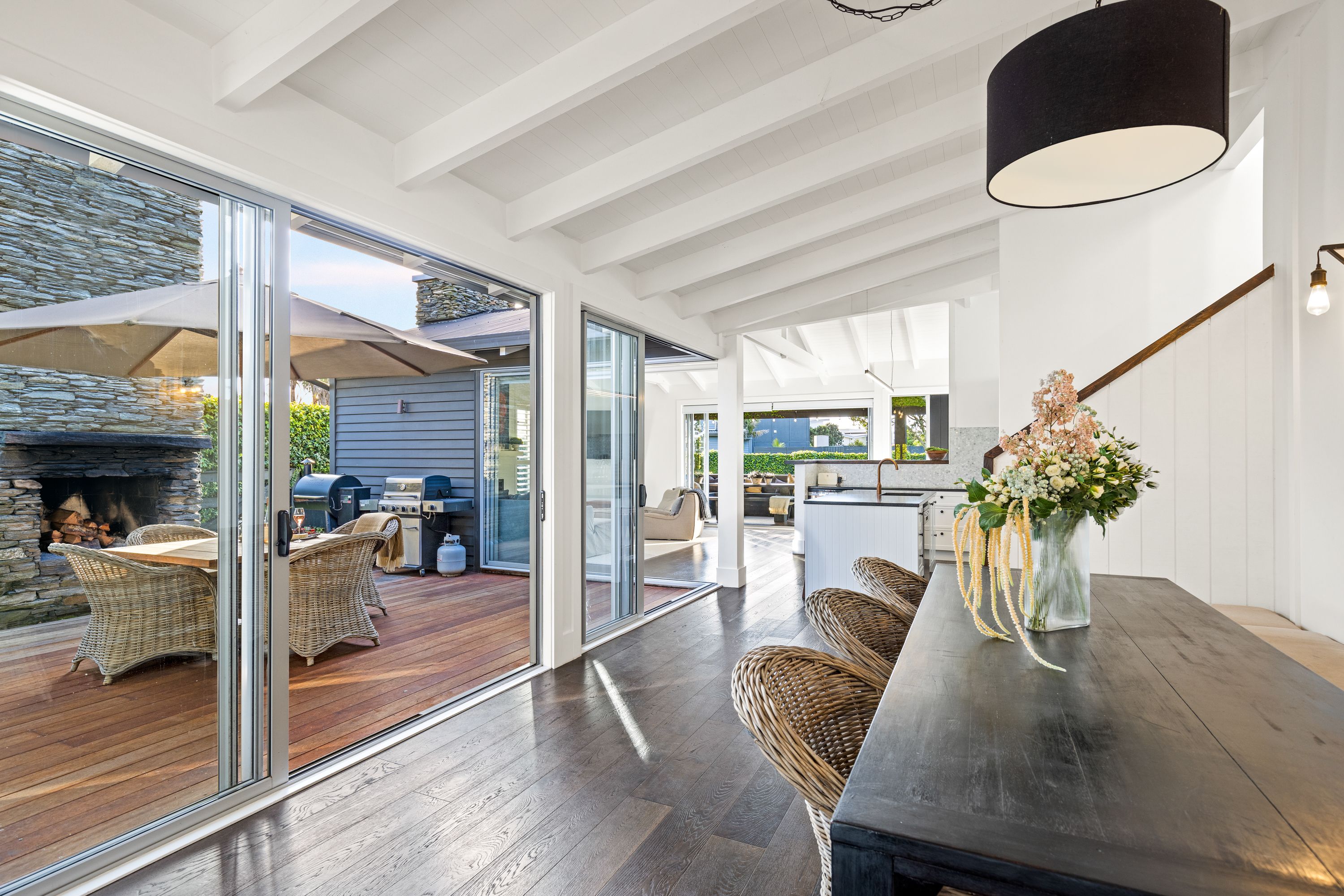 This thoughtfully designed home showcases flexible living with five versatile bedrooms that can easily be tailored to suit your family's needs or accommodate holiday guests. Multiple living areas flow effortlessly throughout the property, with dual outdoor entertaining areas creating seamless indoor-outdoor connection, perfect for sheltered summer gatherings by the fireplace and year-round enjoyment enjoying the afternoon sunshine. The entertainer's kitchen is the hub of this inviting home, enhanced by light infused vaulted ceilings, timber flooring and a gas fireplace for cosy weekends at the beach.