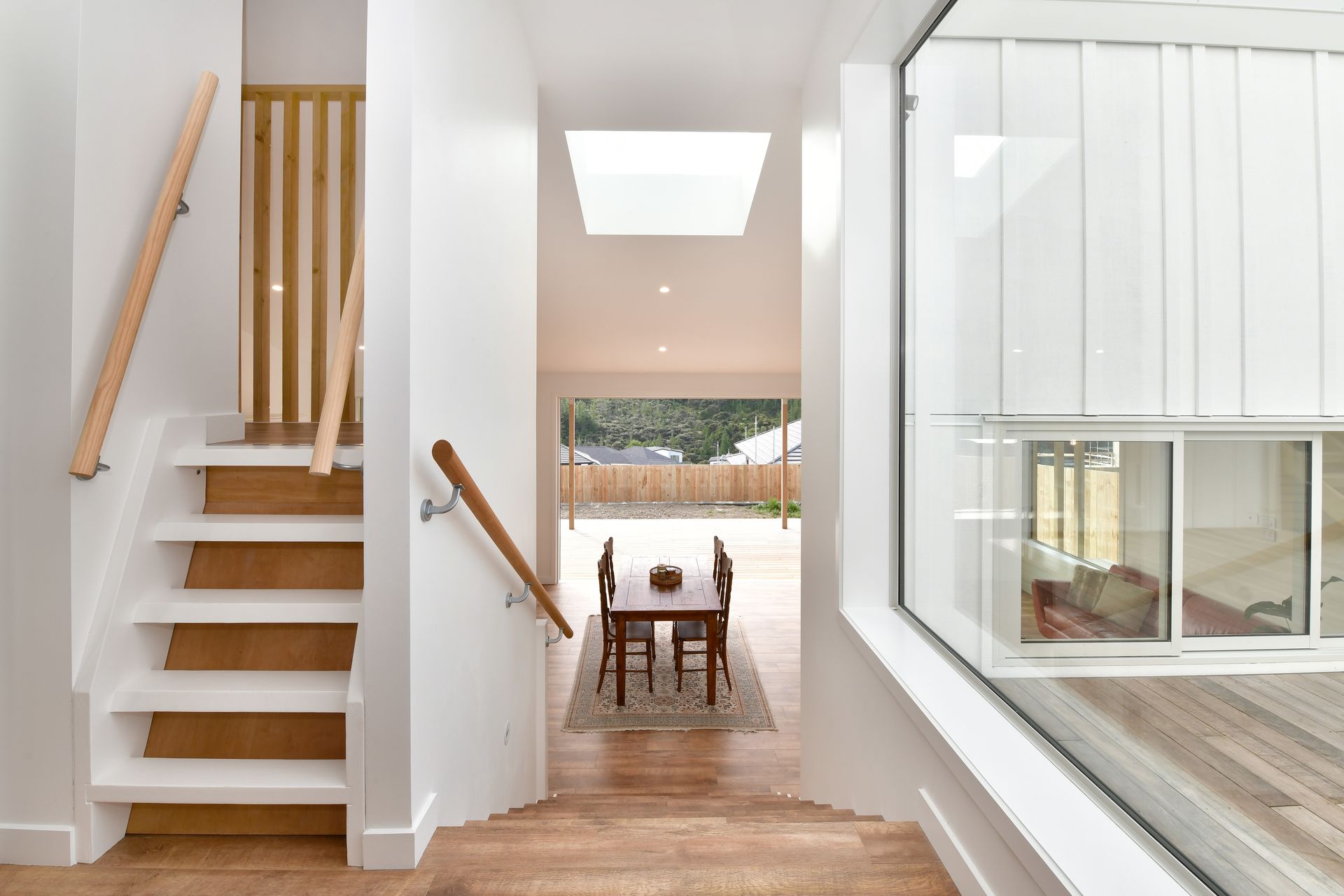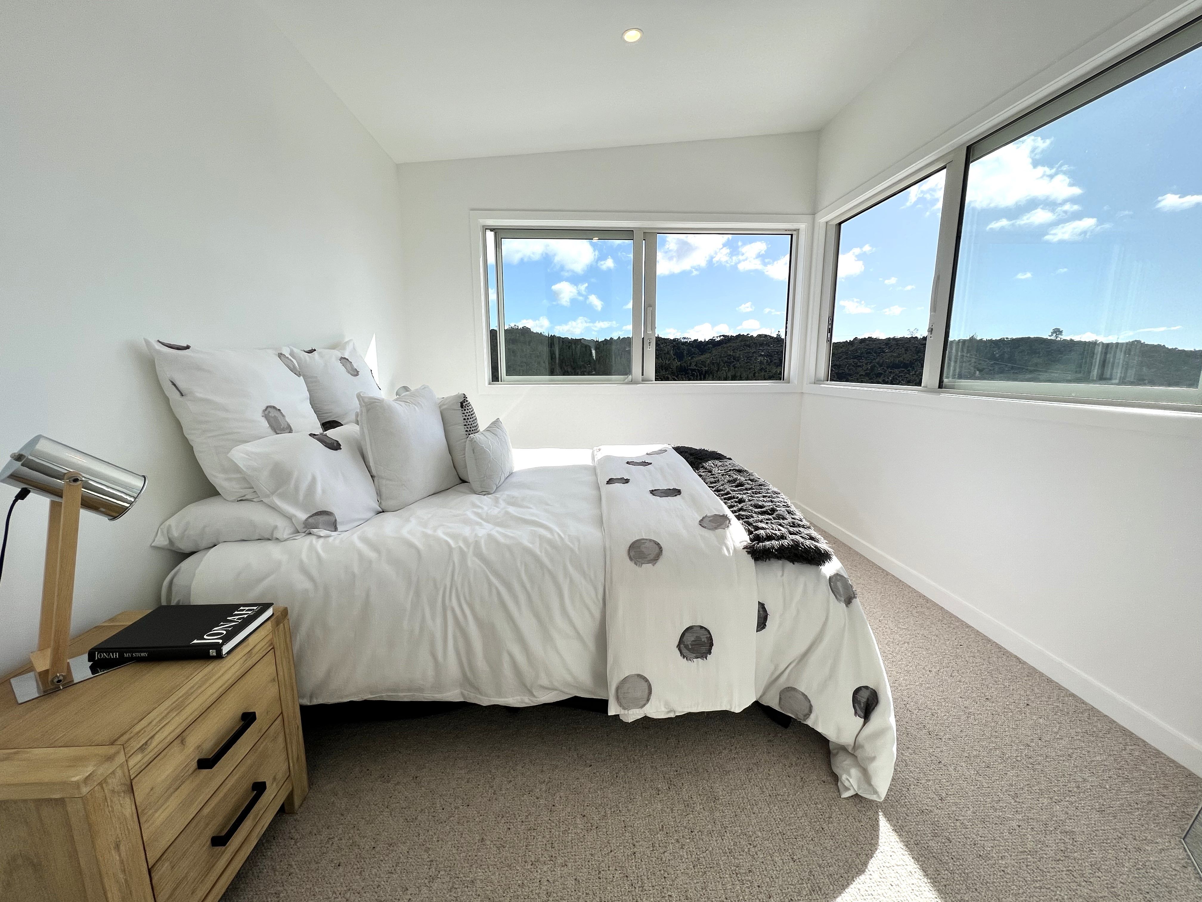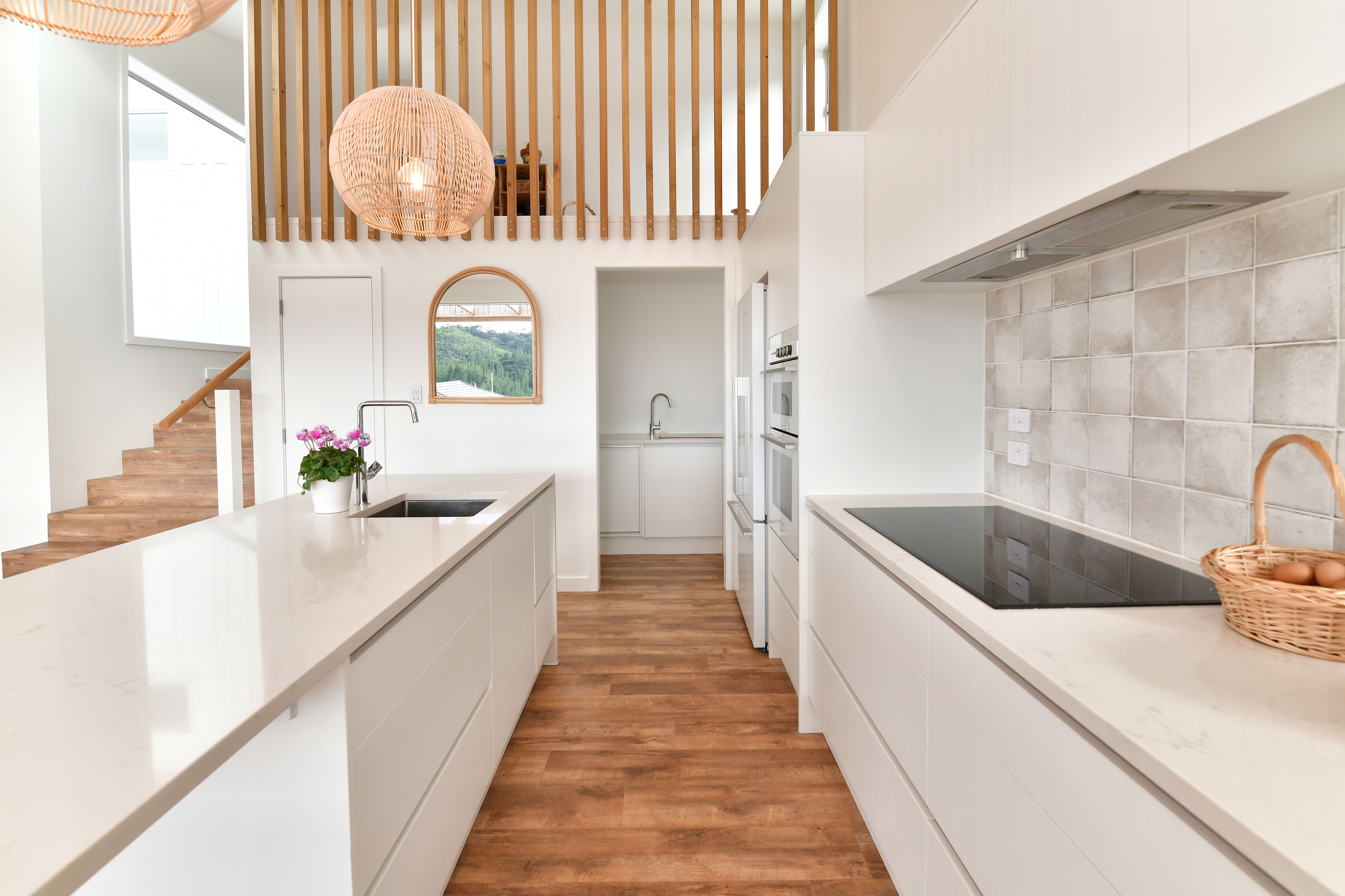 The lower floor you have a great set out kitchen with a butlers pantry, plenty or room and storage. The living area has the feeling of space with high contoured ceiling up to 4m and bright natural light from the skylights. Off the living area open the 3 panel (6m) sliding stacker that flows to a very spacious deck, with relaxing bush views. You have 70m2 of decking to enjoy with a flat back yard. When the family gets back from the beach covered in sand, kick your jandals off and jump under the warm outdoor shower.