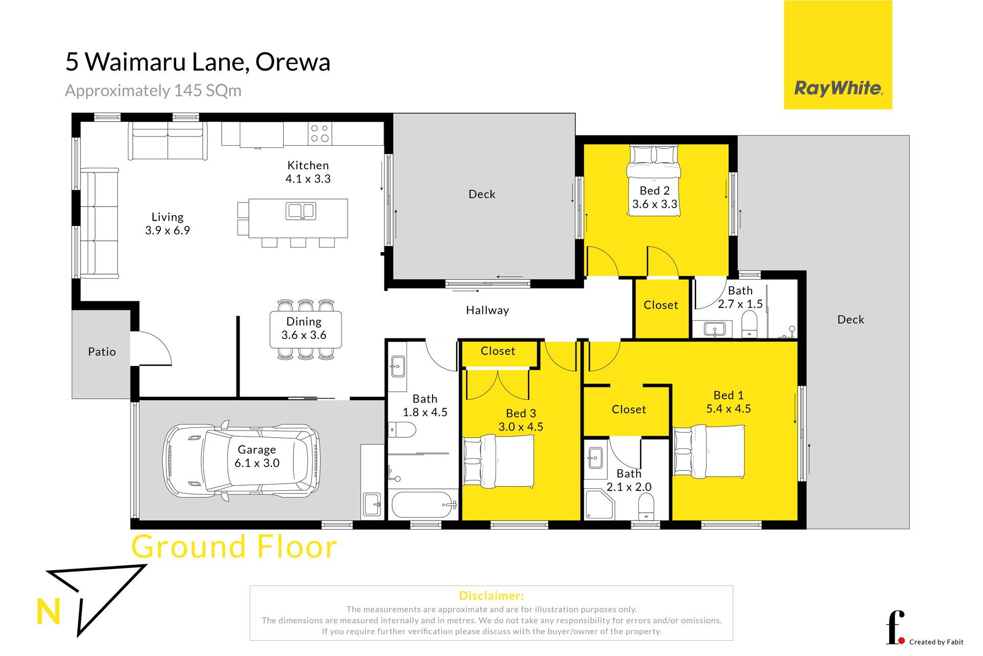 Two bedrooms with ensuite and walk-in-wardrobe and the third gets to use the main bathroom - no fighting for bathroom time, unless it's to soak in the bath! From two of the bedrooms, slide open the ranch slider and walk out onto a north facing deck.