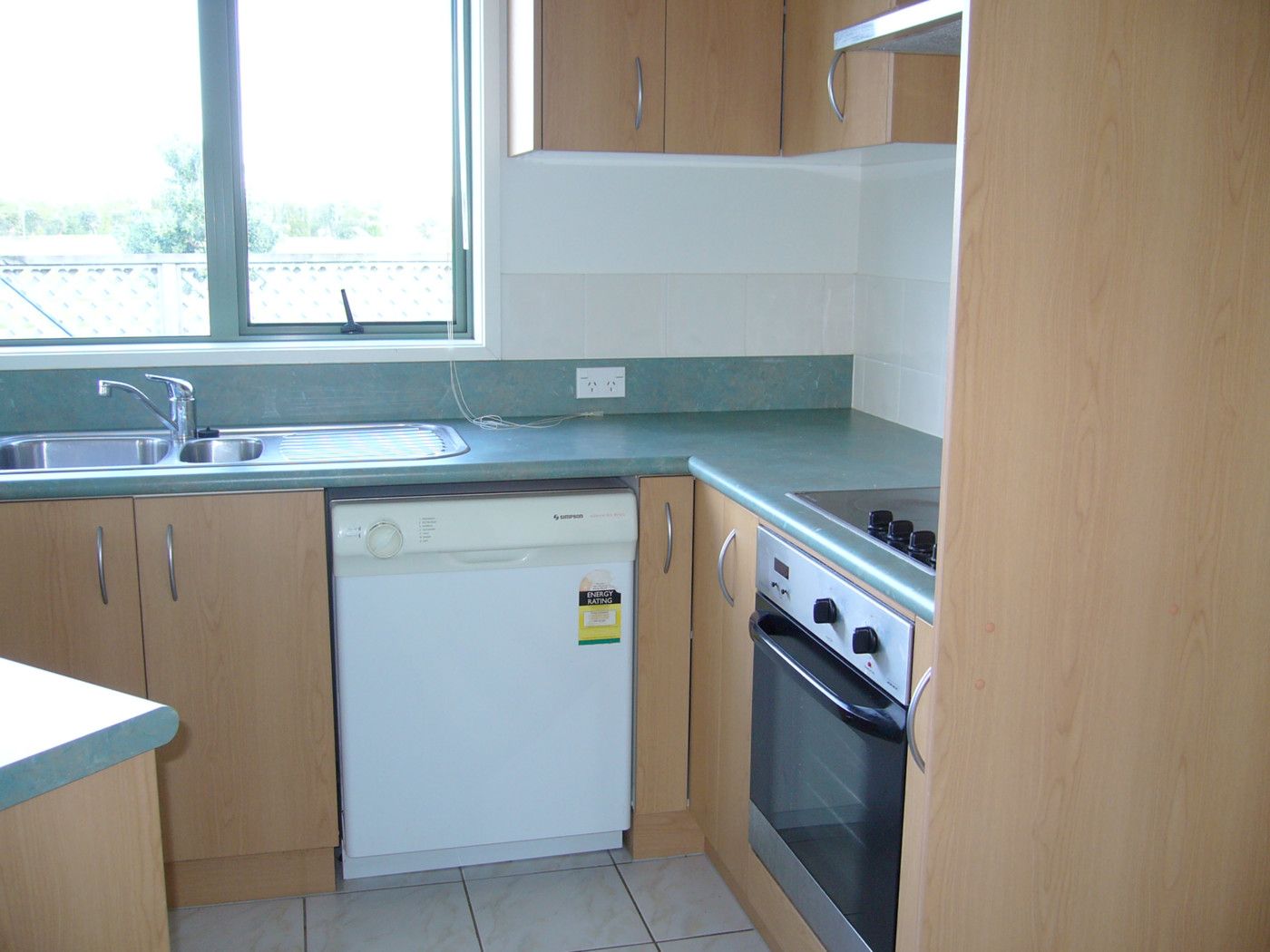 The house is open plan kitchen and living, with ranchsliders opening to the small fenced garden.