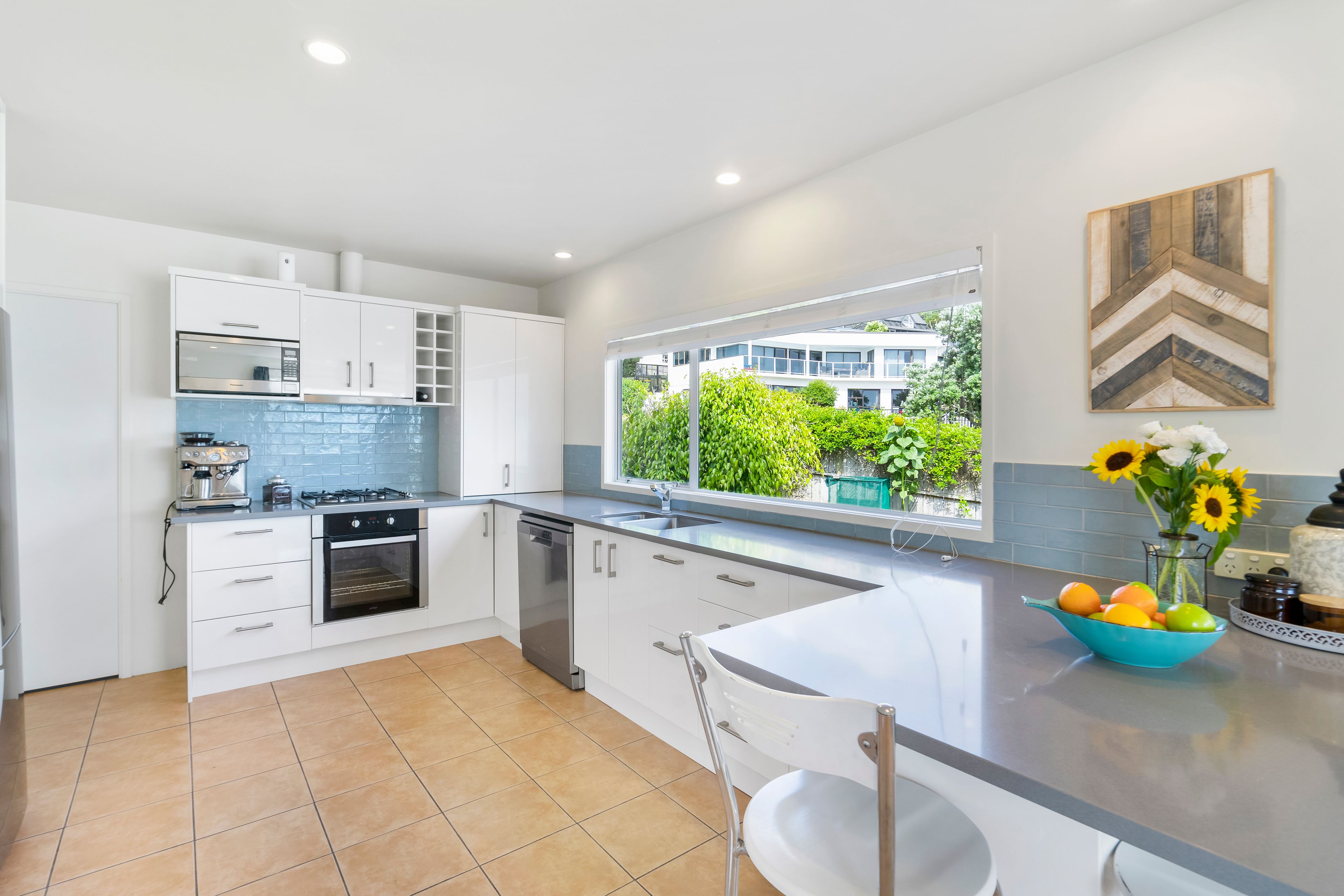 - Stone top benches in the kitchen