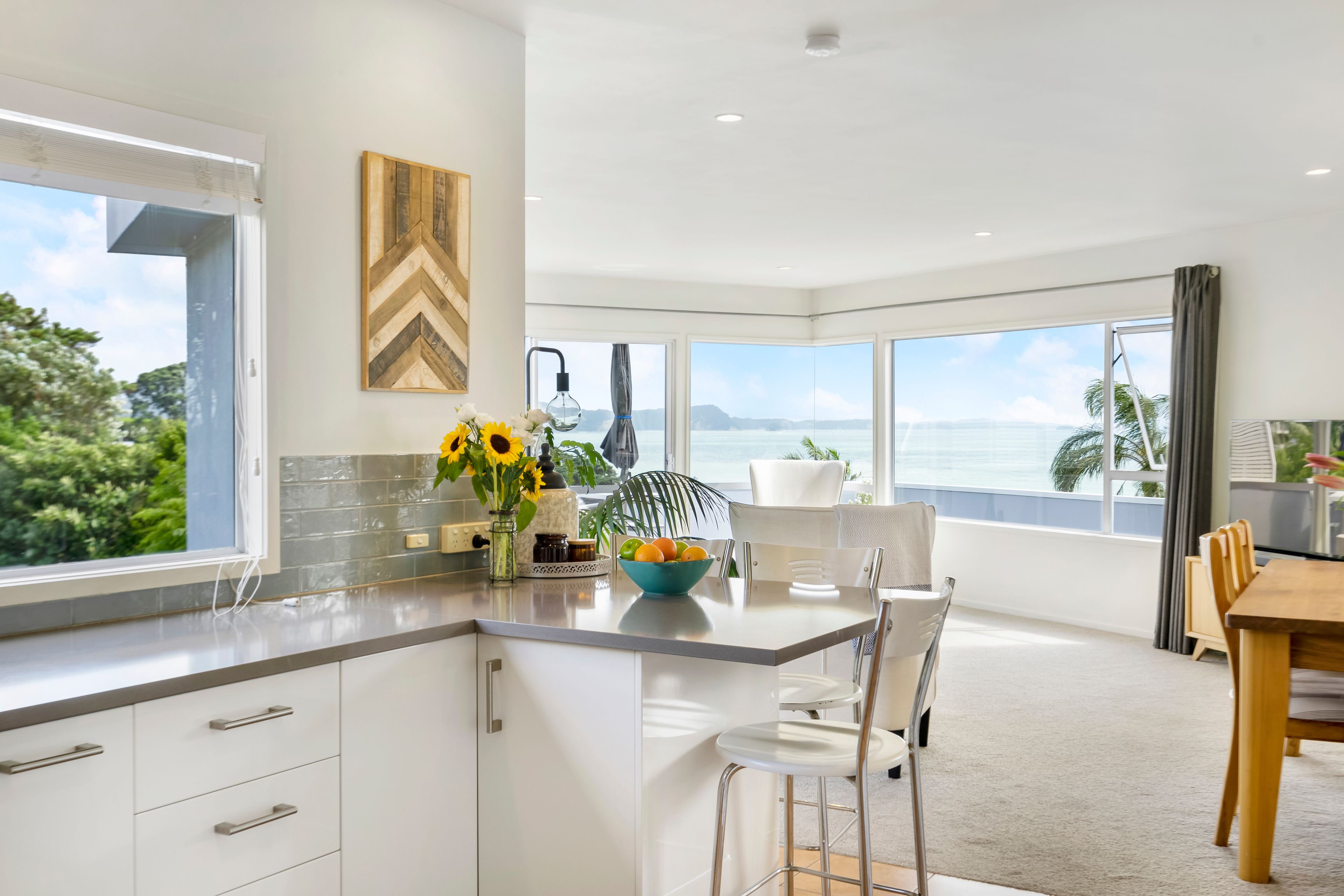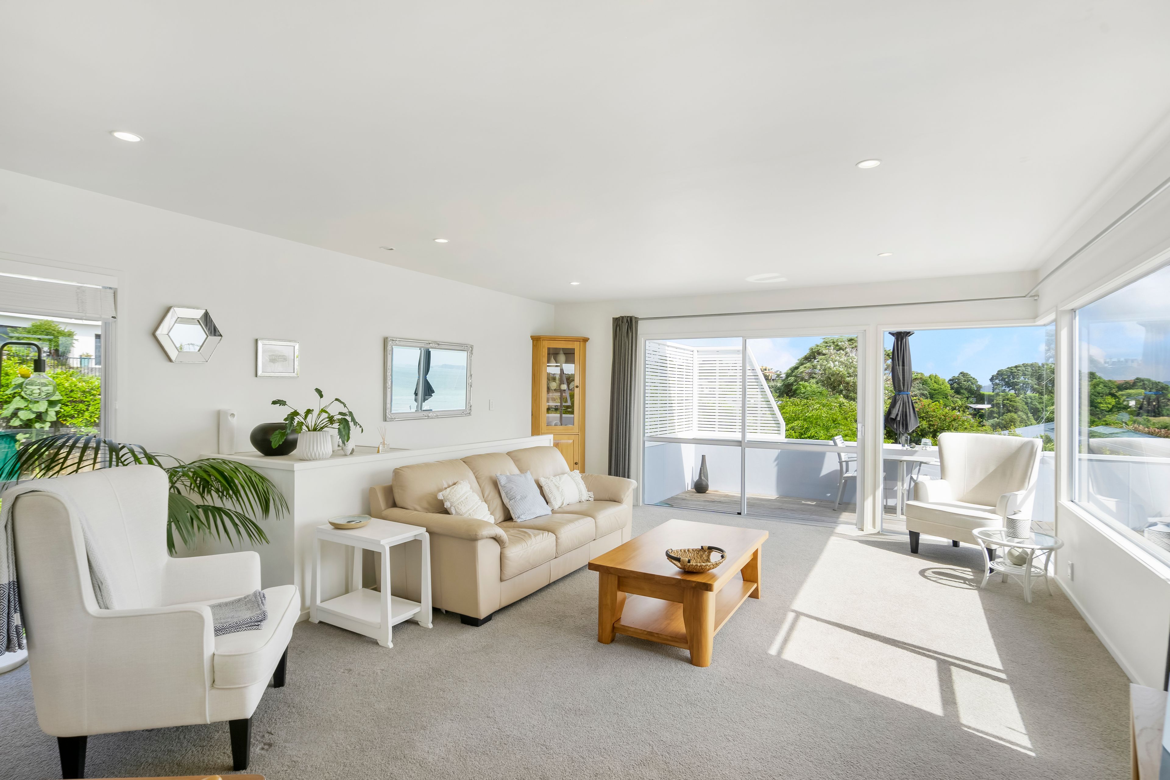 Sitting proudly on a generous corner site and elevated to capture the panoramic 180-degree views out to the sparkling waters of Red Beach and beyond, this three-bedroom contemporary home is something very special. So close to the sea you can smell the salt in the air from the spacious wrap-around deck; my owners have loved living here but it is time for them to move on with their new plans. Will you be the lucky new owners of this piece of paradise?