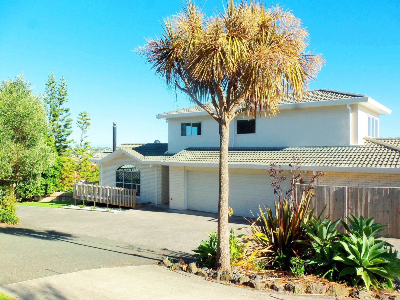 Offering four large double bedrooms, two bathrooms, three living areas, northerly outdoor flow, generous decking and massive garaging.
