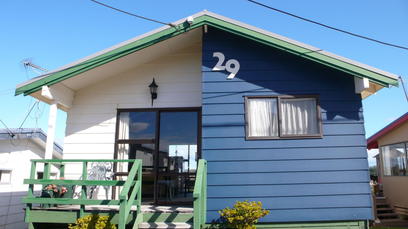 Your bach has open plan living, 2 double bedrooms, bathroom with shower, front and back decks plus a garden area; you also have all the shared facilities in the park for your convenience.