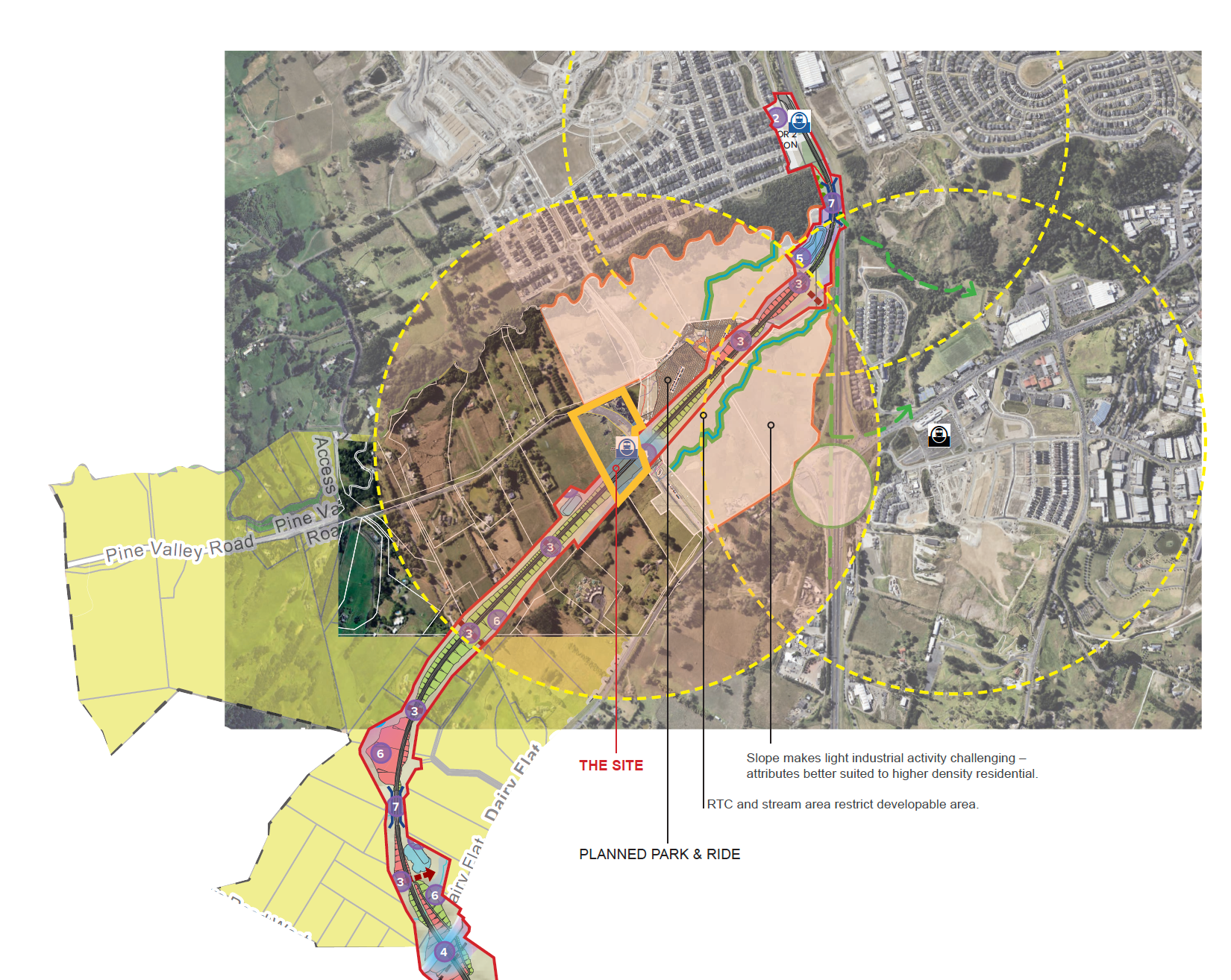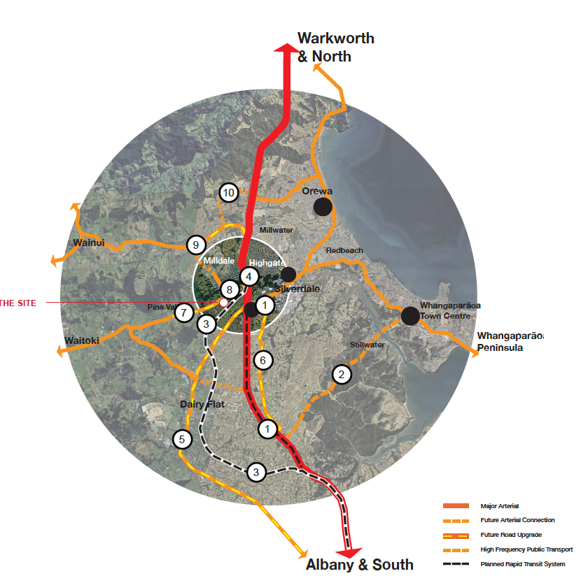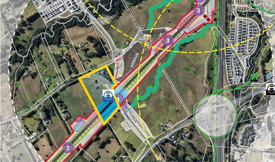 • The site is also subject to recent notices of requirement for designations by NZTA and Auckland Transport that reserve the southern part of the site for a rapid transit station, with a park and ride proposed for the land to the north east of the site. This reinforces the importance of the land as part of a new centre and transport hub.