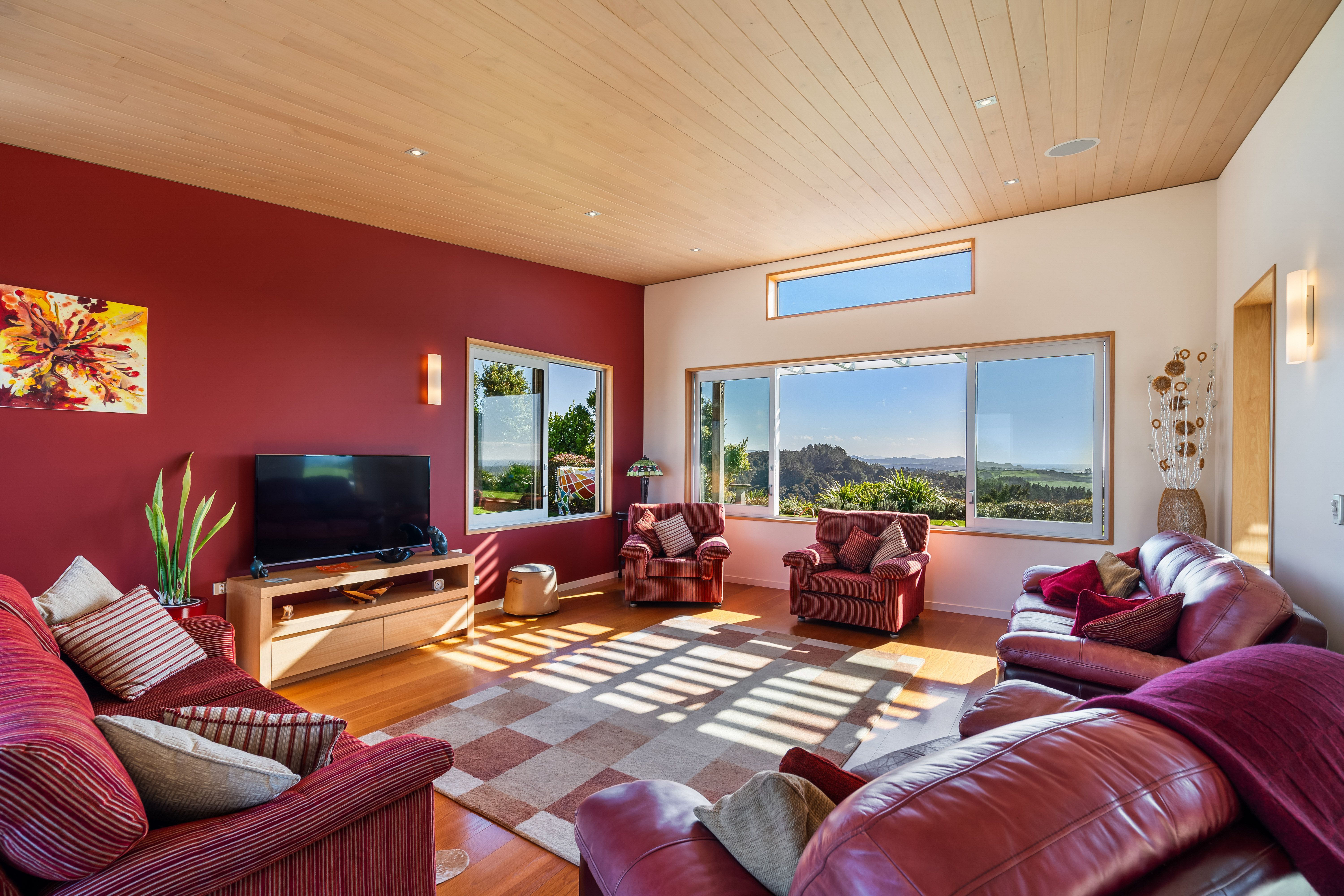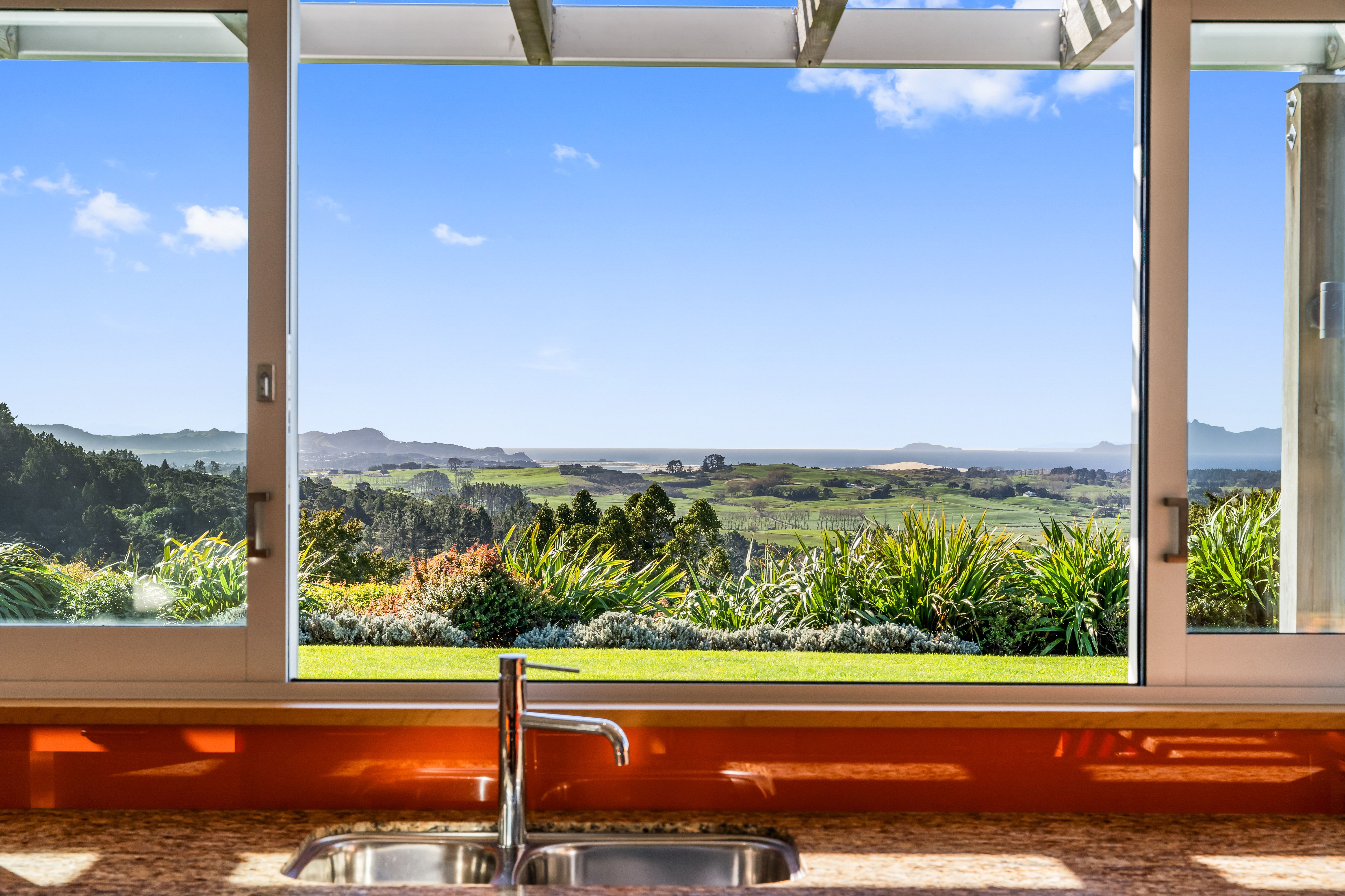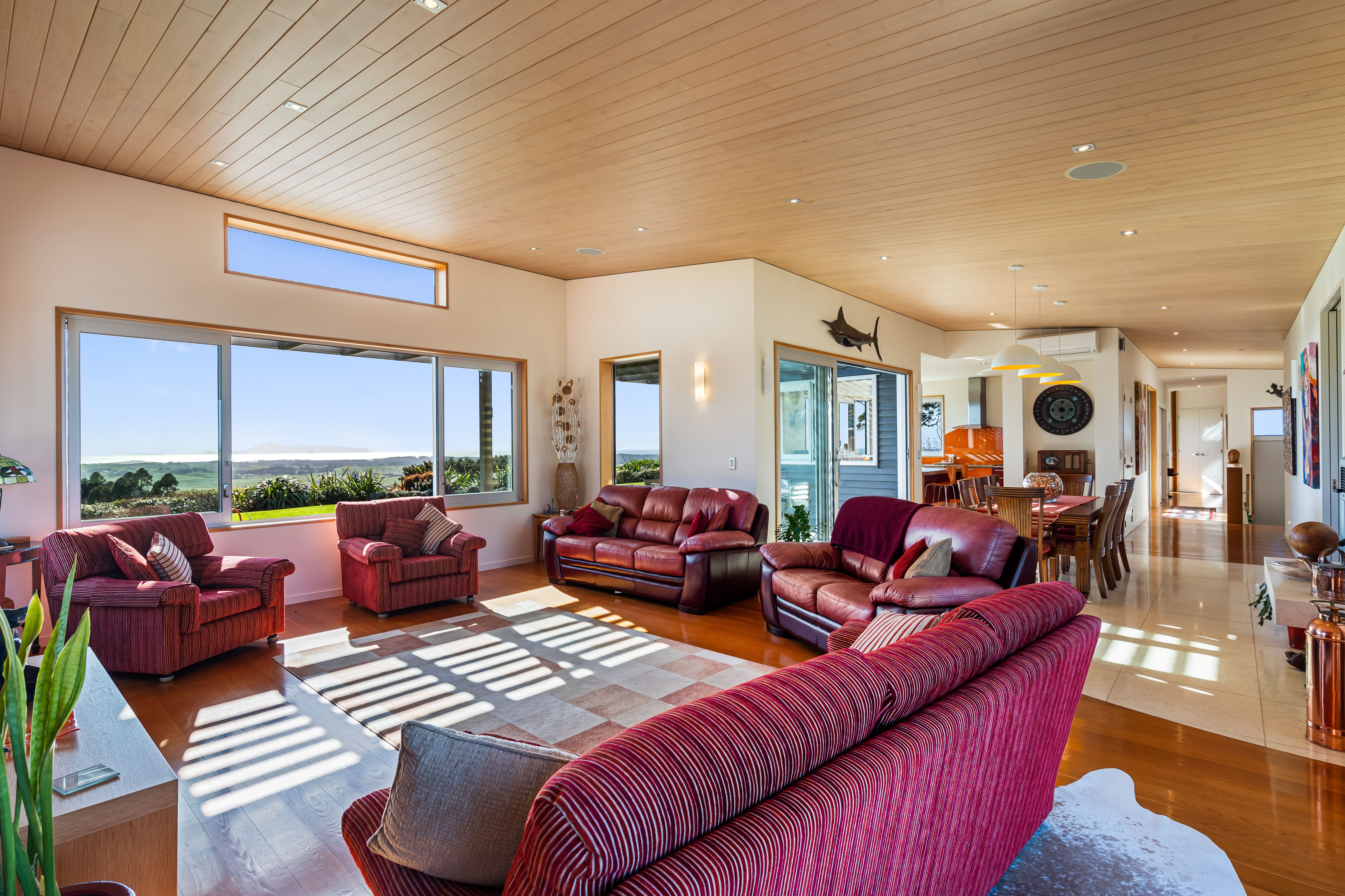 A combination of the architect's considered design and builder's superb craftsmanship is evident everywhere in this outstanding 275sqm residence. Set in an elevated position surrounded by landscaped grounds of established native plantings, every room rewards the homeowner with gorgeous views framed and enhanced by the use of quality materials. The uplifting outlook sweeps across bush-clad and rolling countryside to the south, and seawards to the ocean and islands, with breathtaking vistas stretching from Poor Knights to the Coromandel.