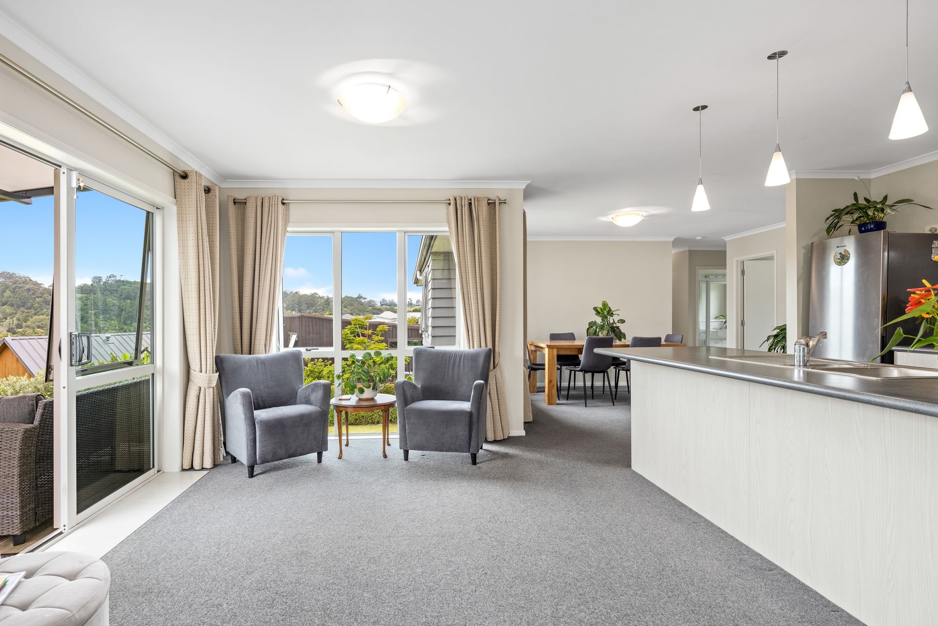 Positioned in a quiet cul-de-sac on the northern slopes, this home offers the perfect blend of convenience and charm. Start your day in the bright and airy living room, flooded with natural light and flowing onto a north-facing deck. Enjoy your mornings surrounded by lush gardens, and soak in the picturesque views of the established native bush.