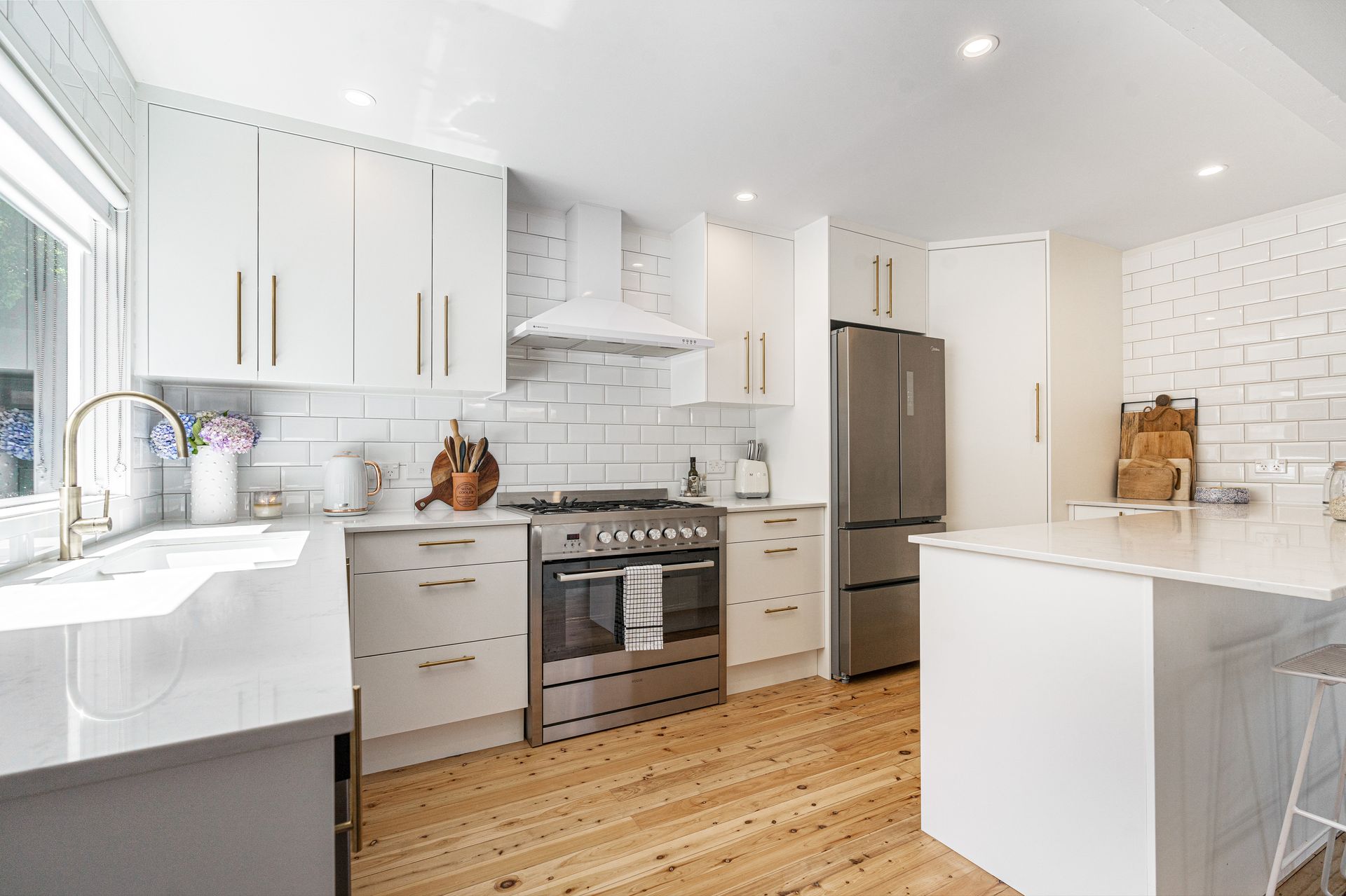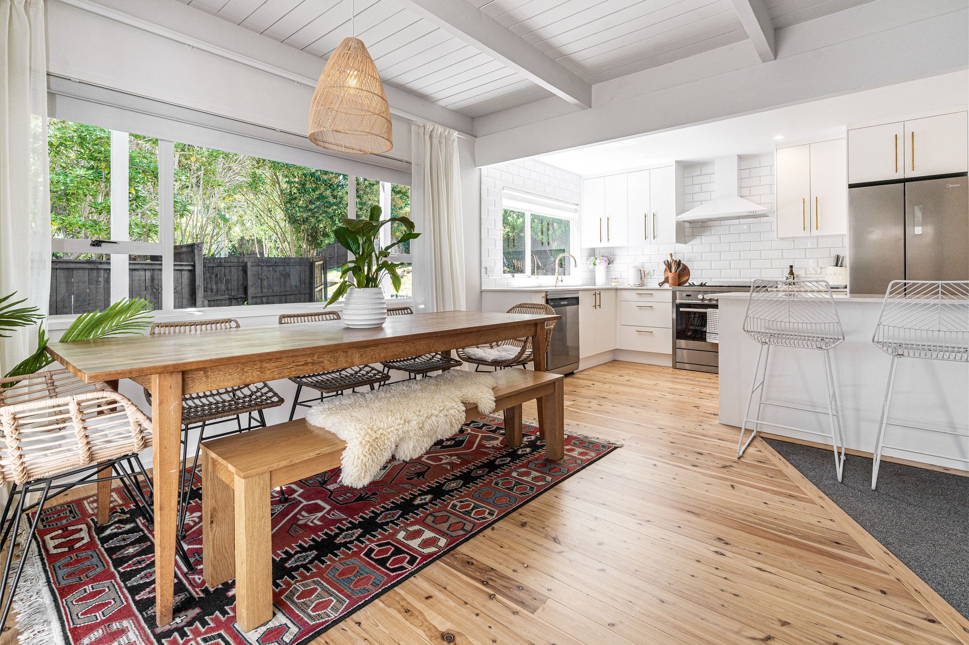 The open plan of the home allows the dining and kitchen areas to flow across the beautiful natural wooden floors and celebrate the light from the north facing sliding doors. The kitchen is state of the art with cupboards galore and a wonderful island bench which easily becomes the hub of the home. The living area is spacious and whilst open plan enjoys being separated from the kitchen yet still allowing a good indoor outdoor flow. Upstairs there are 2 good sized bedrooms, 1 with its own Juliette balcony and then a large master bedroom. The family bathroom is styled to perfection and located between the bedrooms