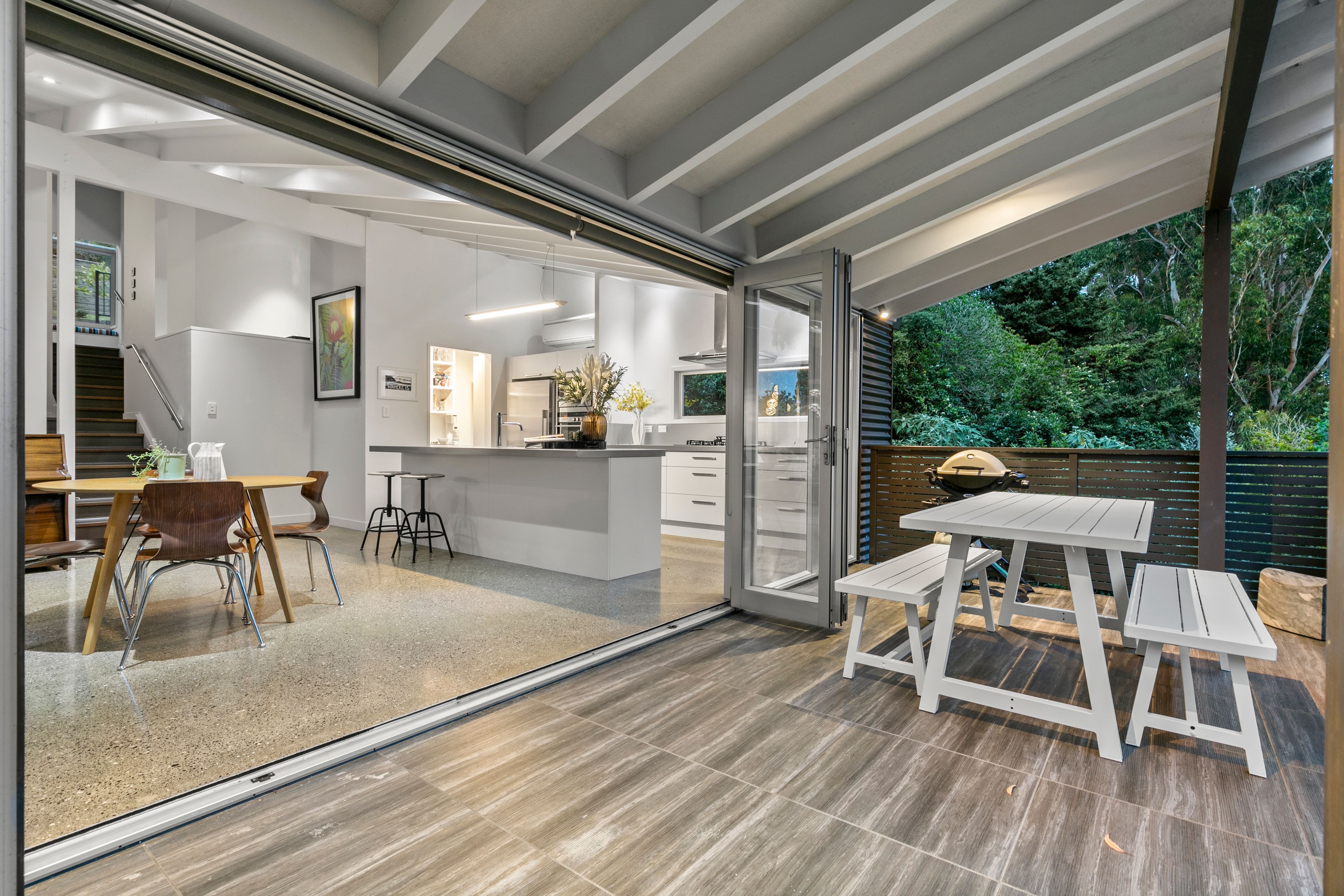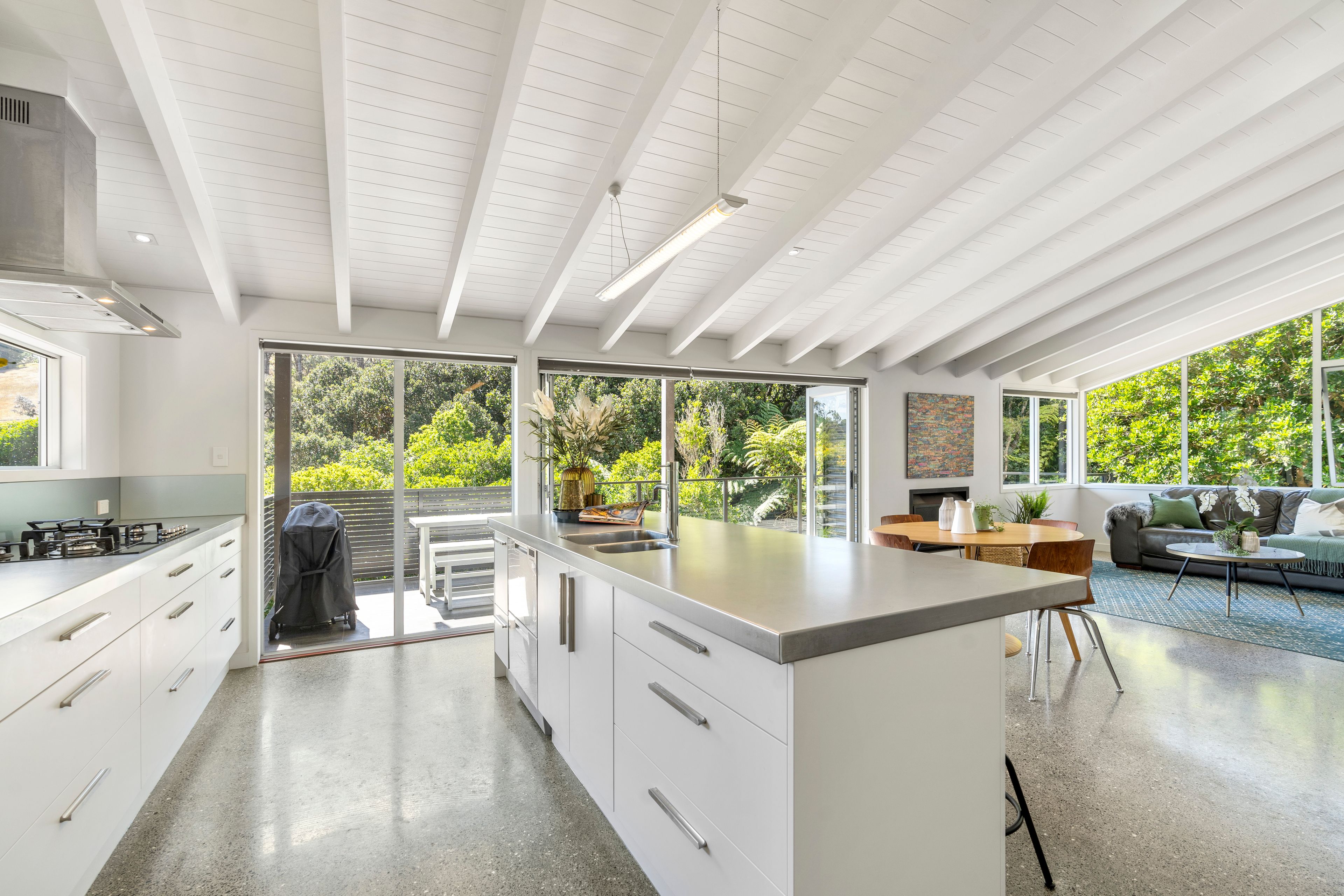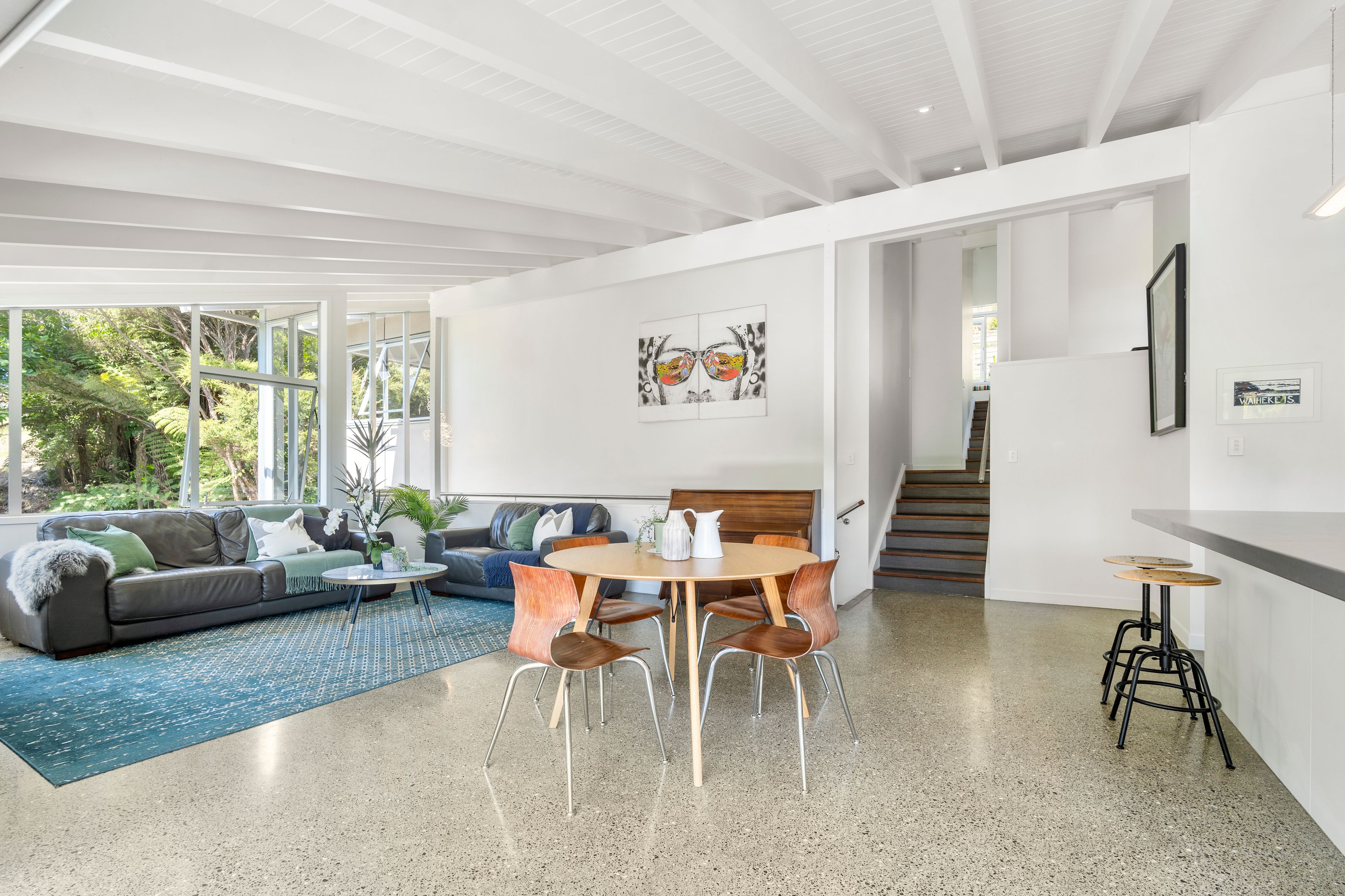 This discreet, quality home offers easy living and entertaining, tucked privately away behind native bush. It's also conveniently located less than one kilometre from world-class Onetangi beach or an easy stroll to the vineyards of Stonyridge, Tantalus and Te Motu as well as the fun and games at Wild on Waiheke.