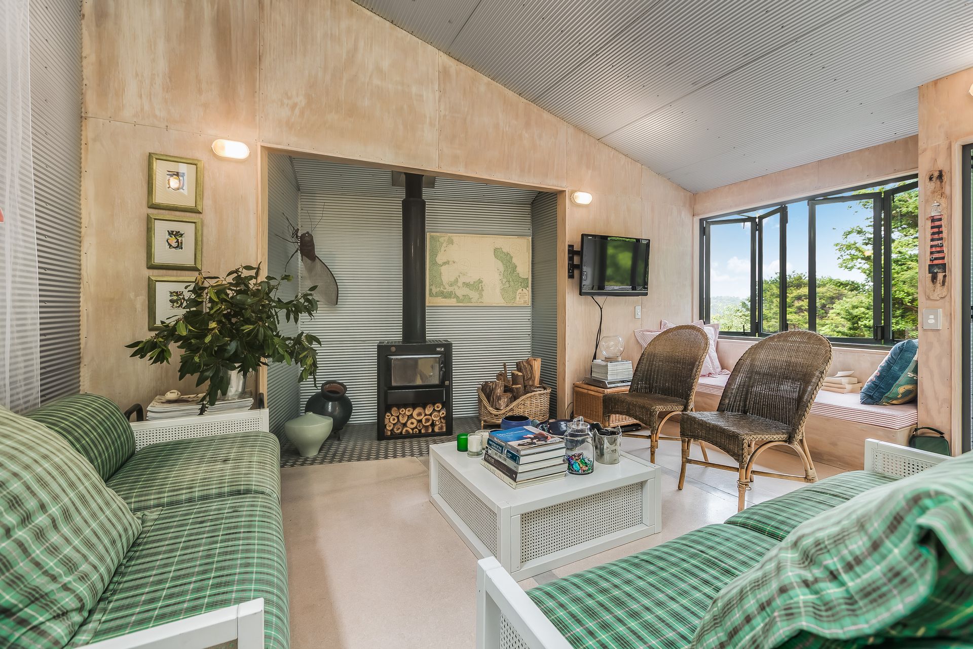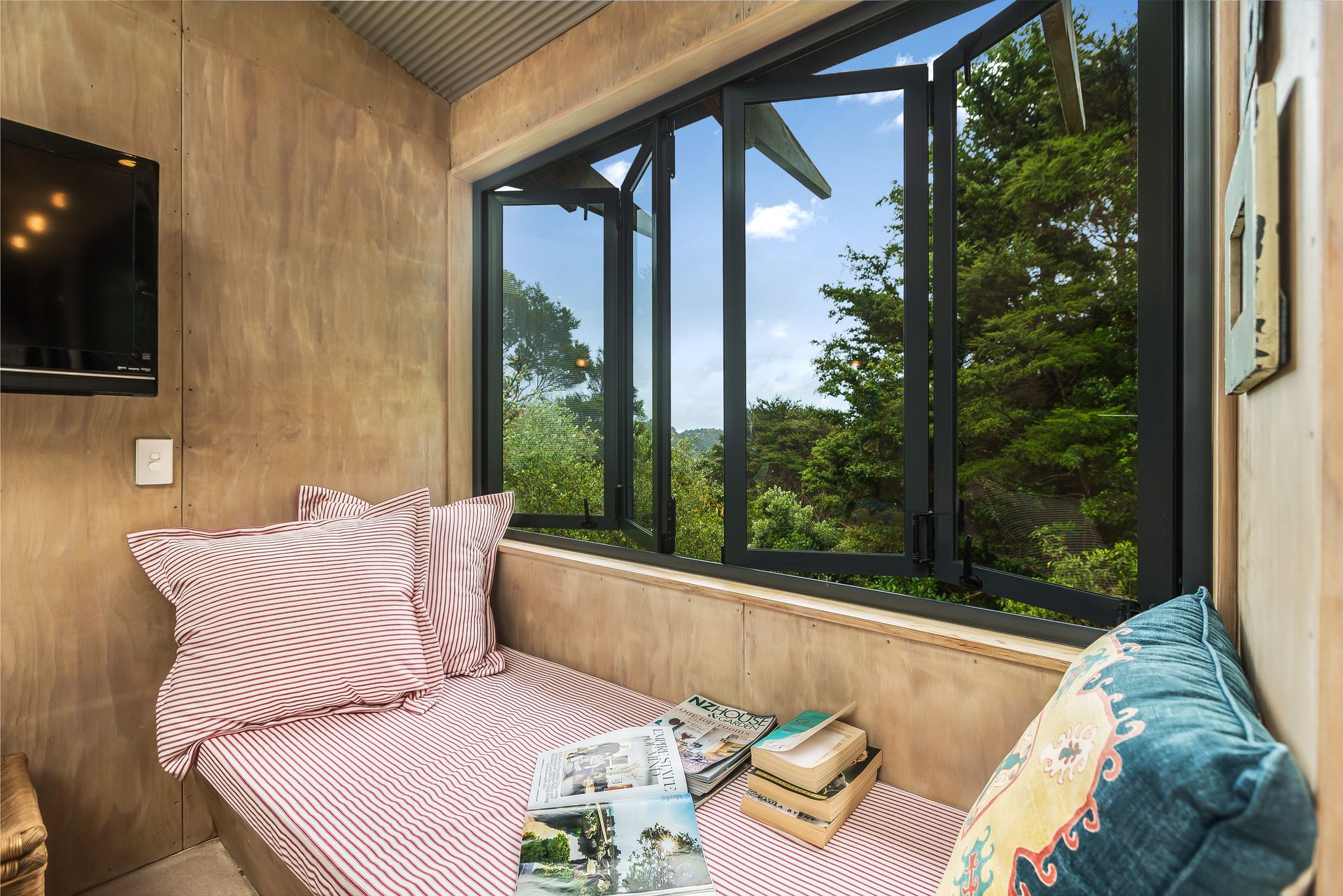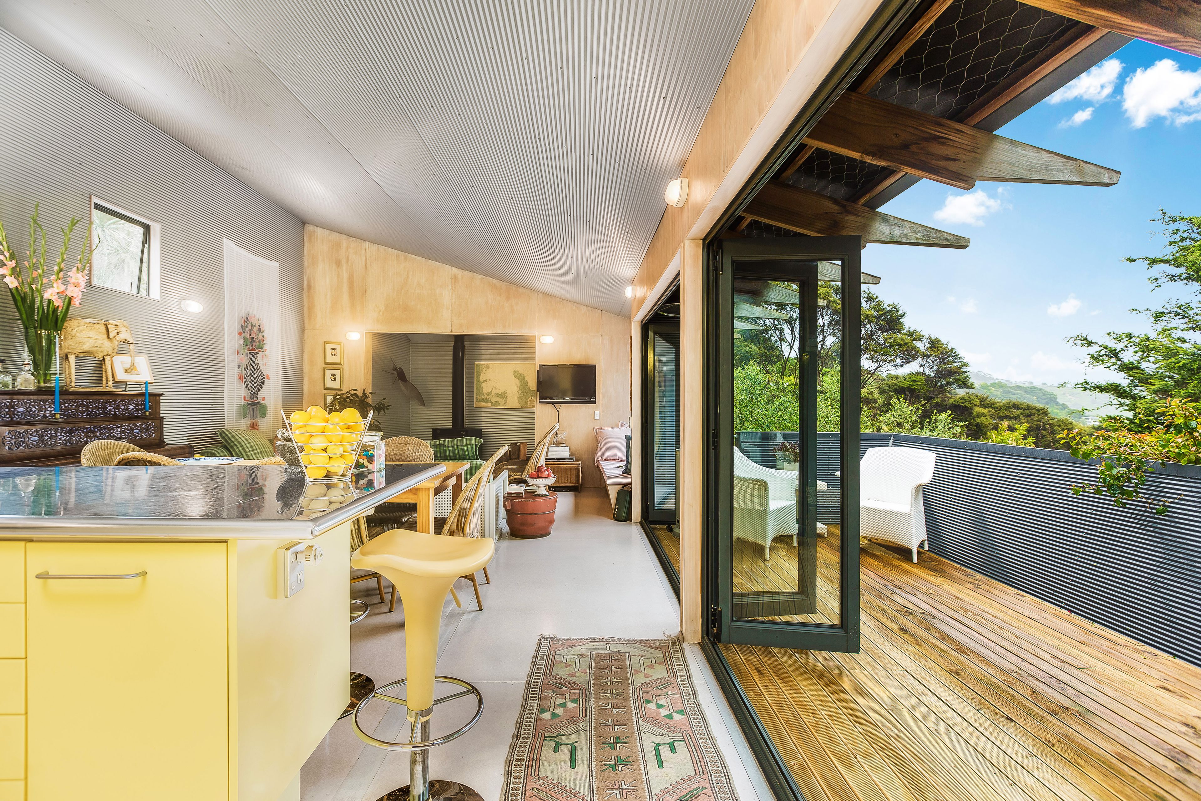 Brilliantly simple, architectural design marks this house as a classic Kiwi bach with a twist. This is baby corrugated iron and white-washed ply at its best.
