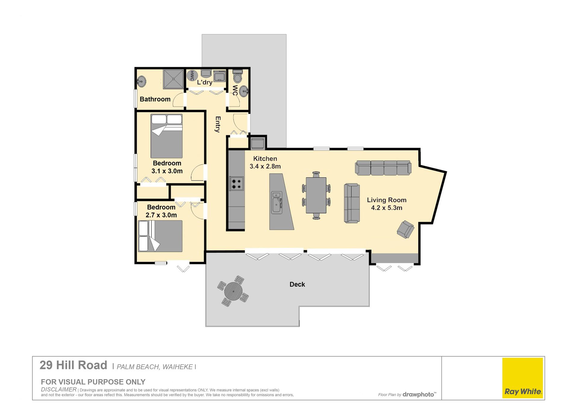 Full of light, raking ceilings create a great feeling of spaciousness enhancing the open plan kitchen, dining and living areas which flow directly onto an entertainers deck bathed in sun. There are two smart bedrooms, a stylish bathroom, separate toilet and laundry.
