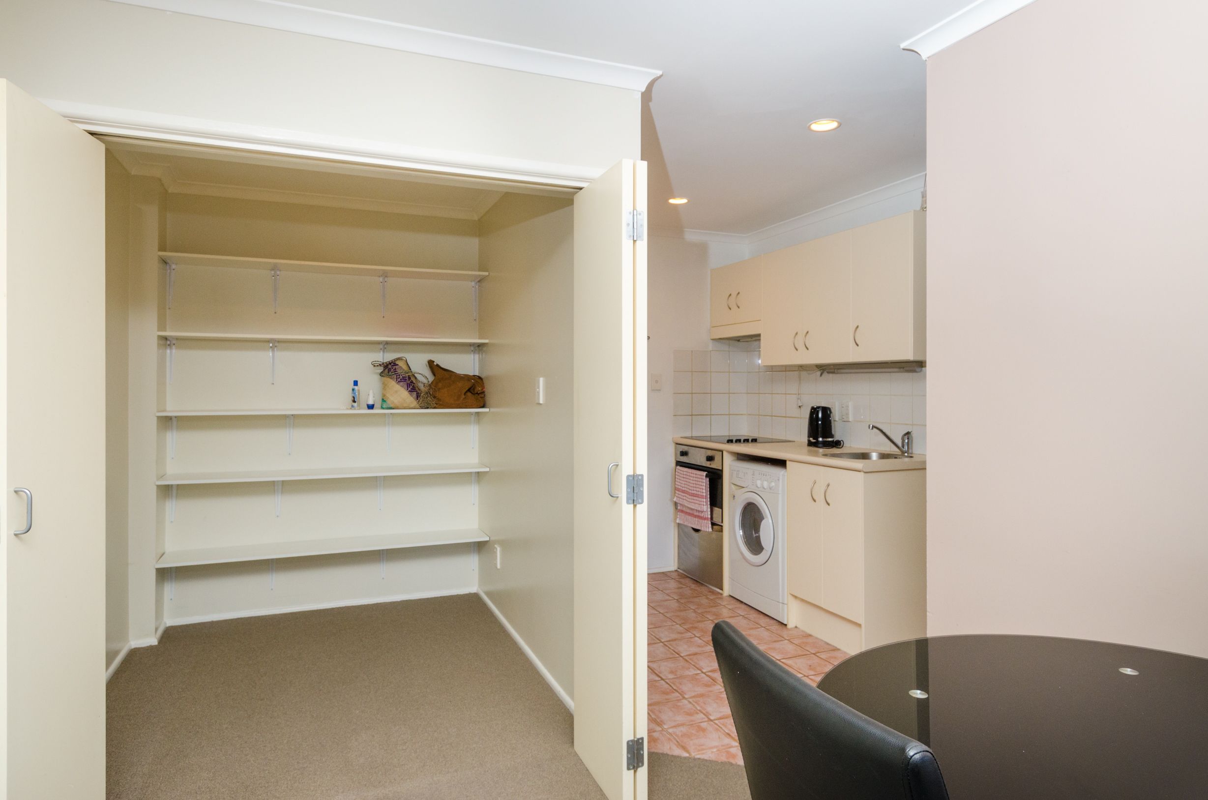 • A galley kitchen leading into the Lounge and