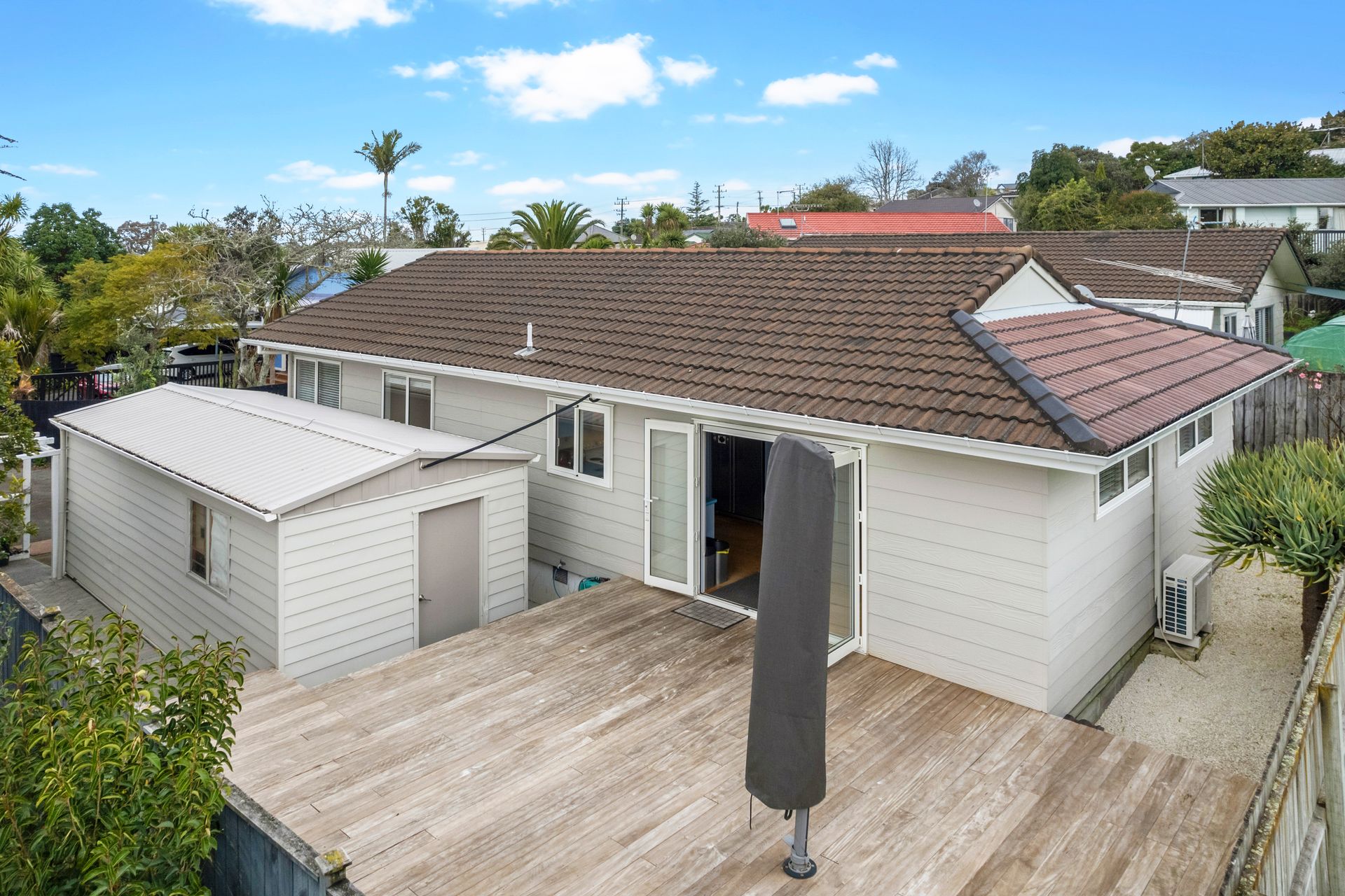 Set well back from the road and the madding crowd and backing onto a verdant outlook, there is a real sense of privacy here with the deck facing North to catch all day sun.