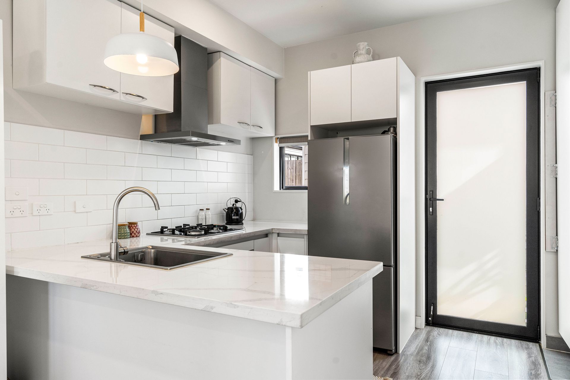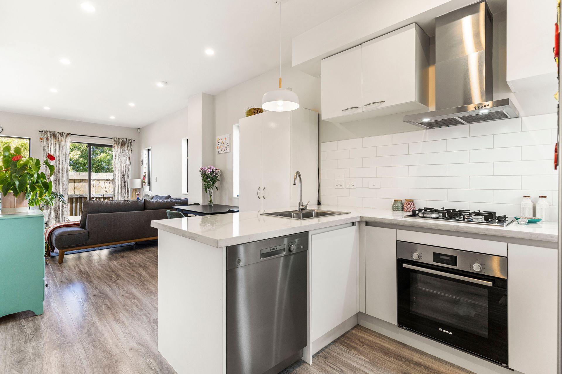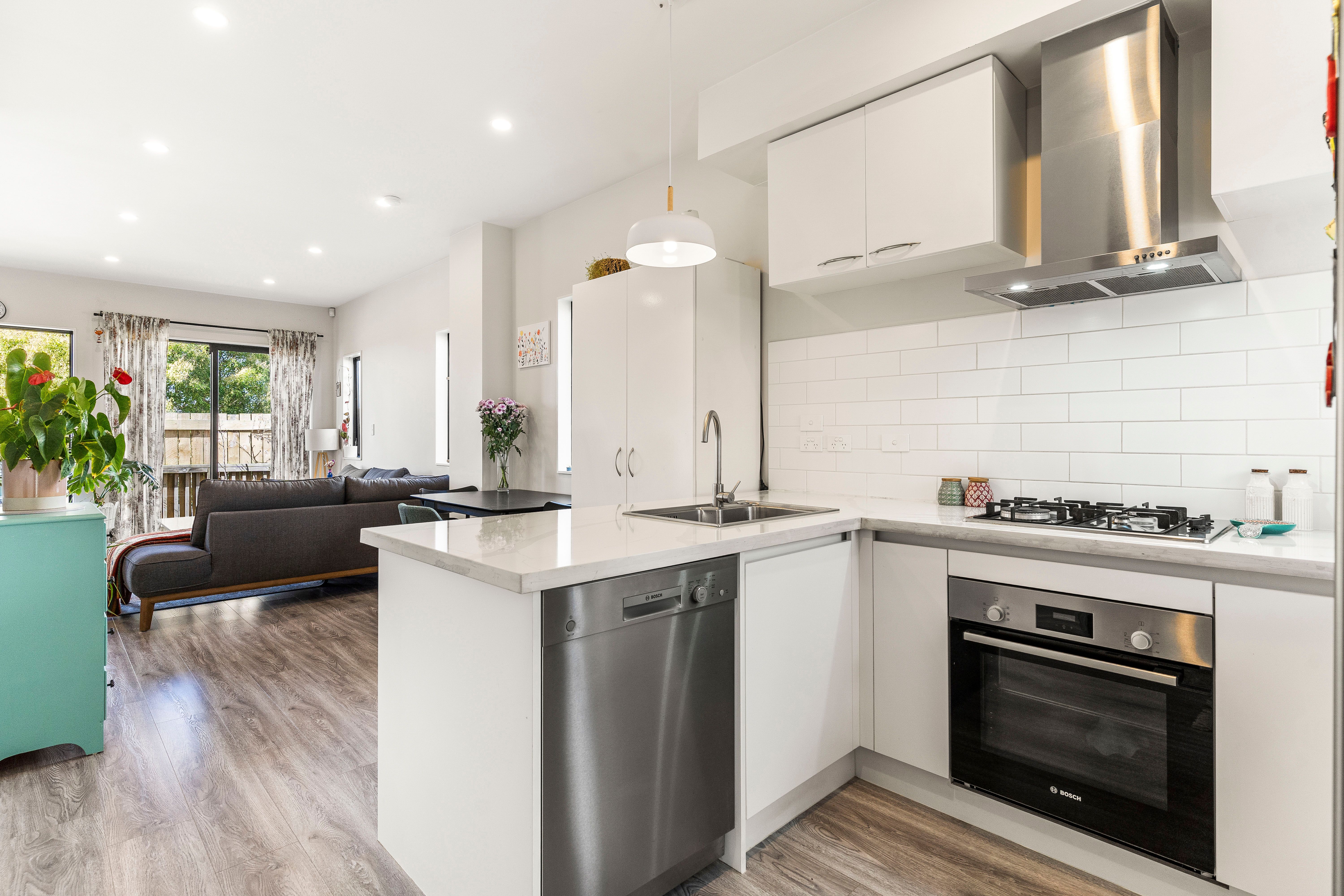 Step inside to the open plan living areas, where you will be surprised at the amount of light and bright space. You'll love cooking in the modern kitchen with high quality Bosch appliances including reticulated Gas Hobs and quality engineered stone bench tops with island seating. Also on this level, you'll find an extra powder room for guests.
