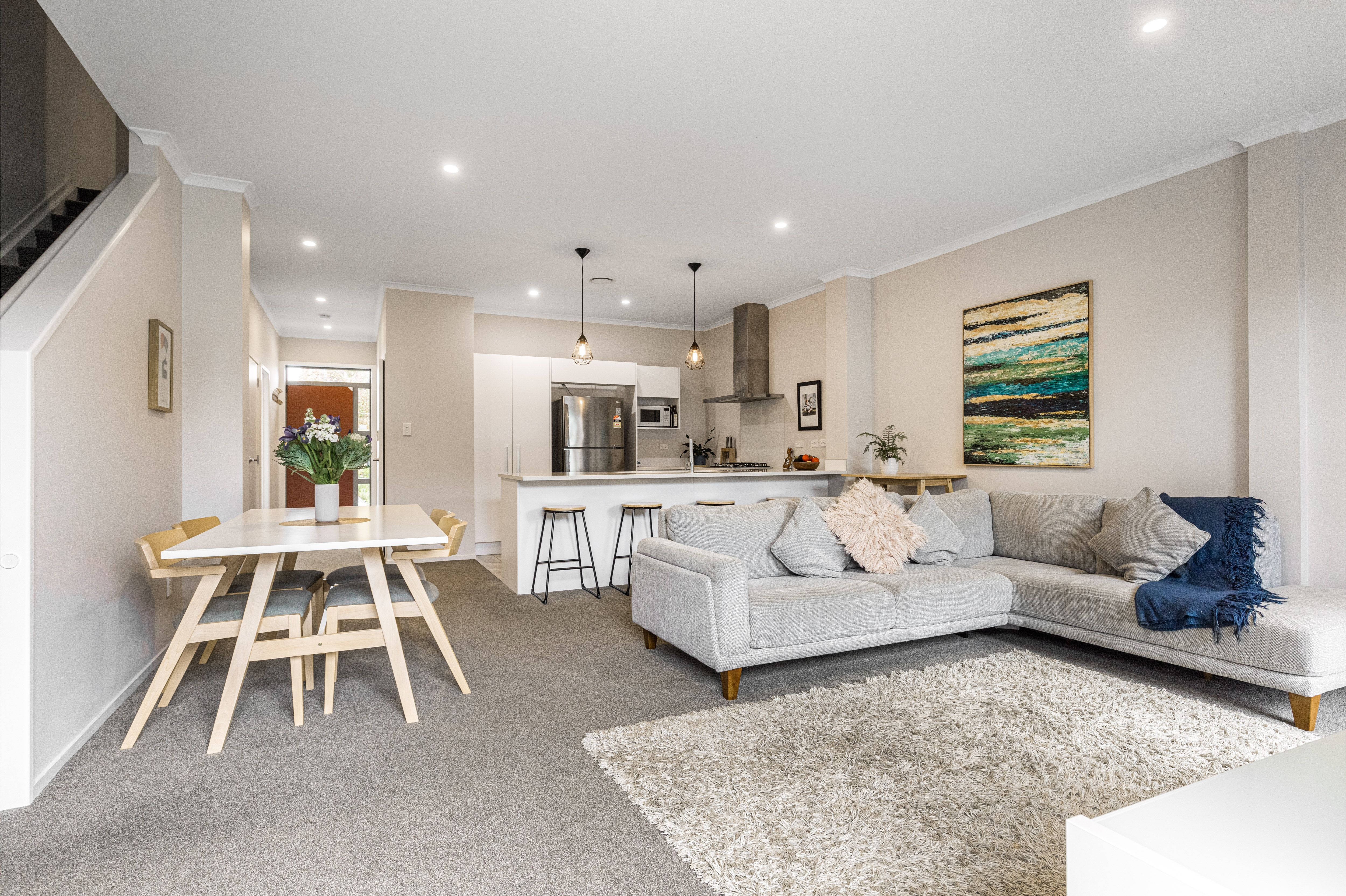 A garage with an enclosed carport is accessible from your shared private lane. Super close are cafes, a sushi bar, pizzeria, restaurant, nail salon, pharmacy, medical centre, an ATM, a travel agency and a Caci Clinic.