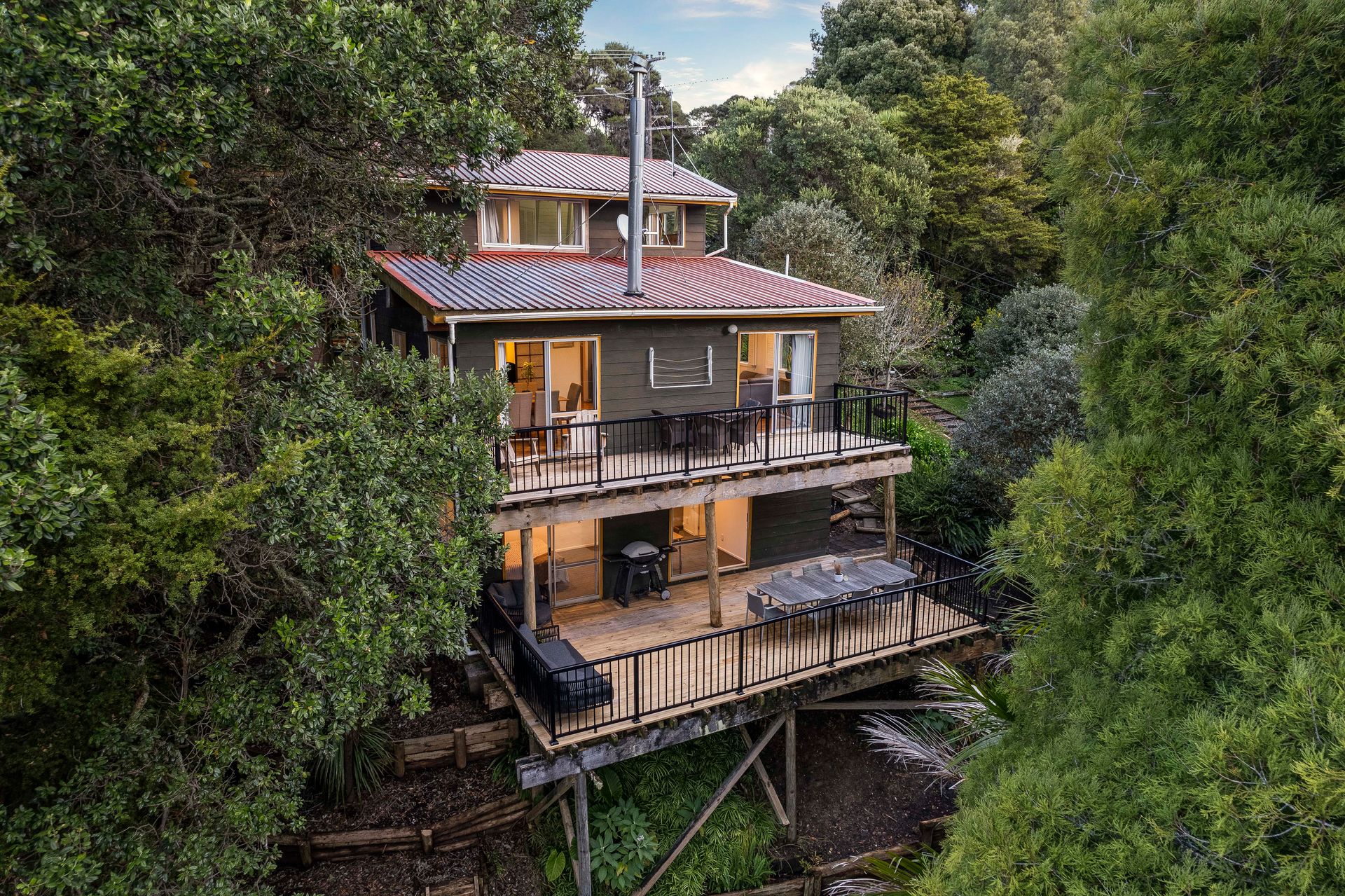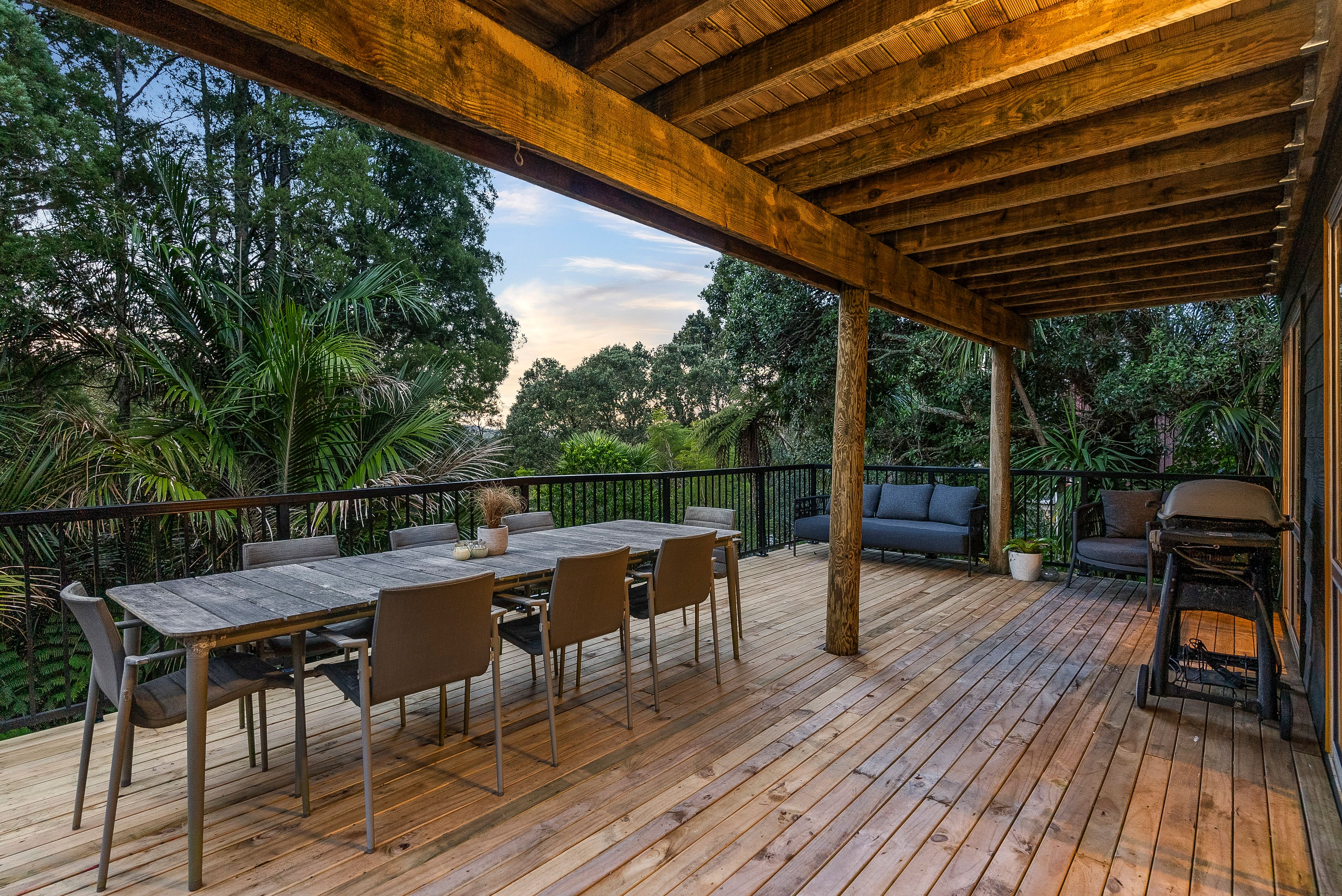 As soon as you enter you are greeted with the huge contemporary style, open plan living area that's sunlit, elevated and complemented by the green backdrop of the native bush and beyond.