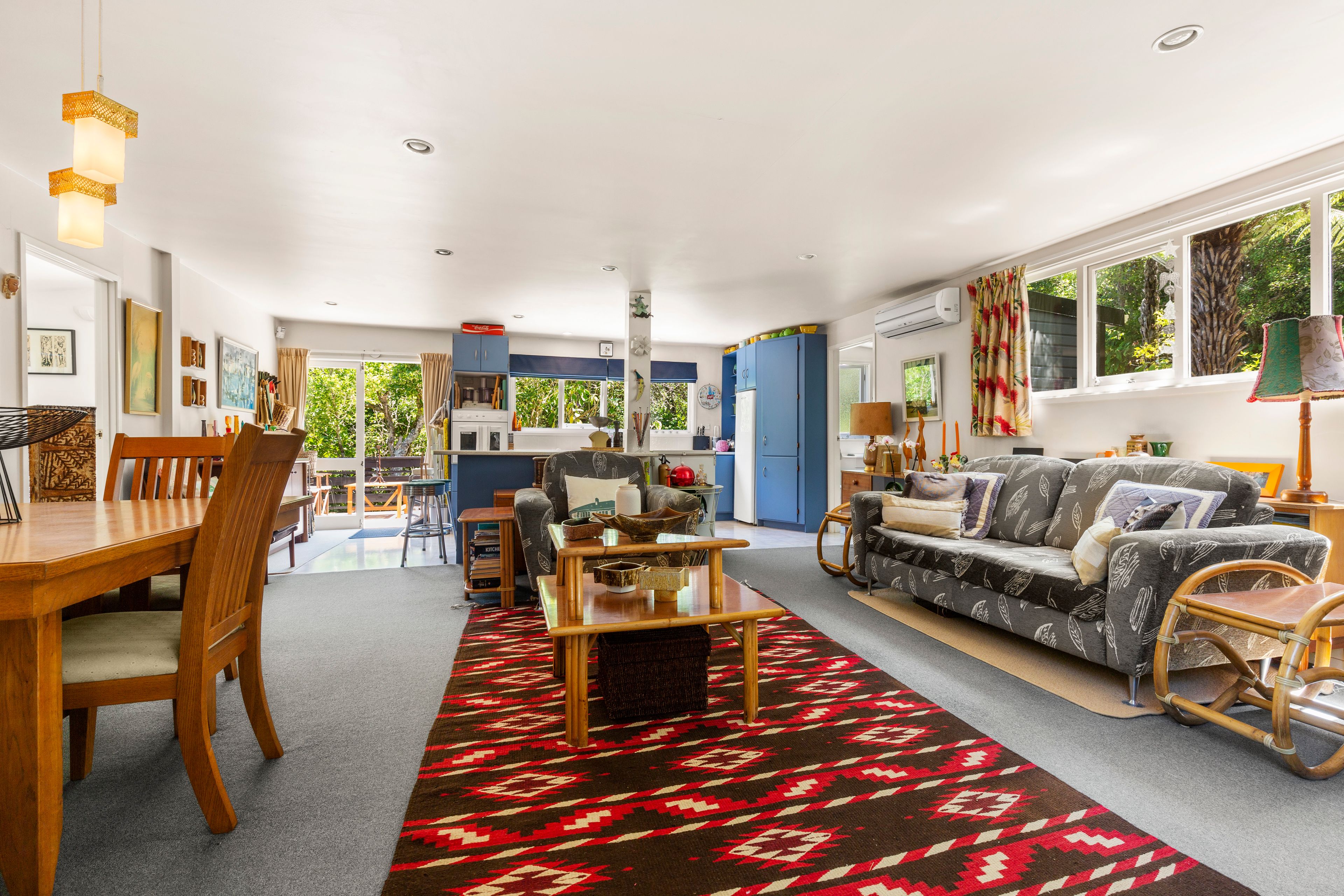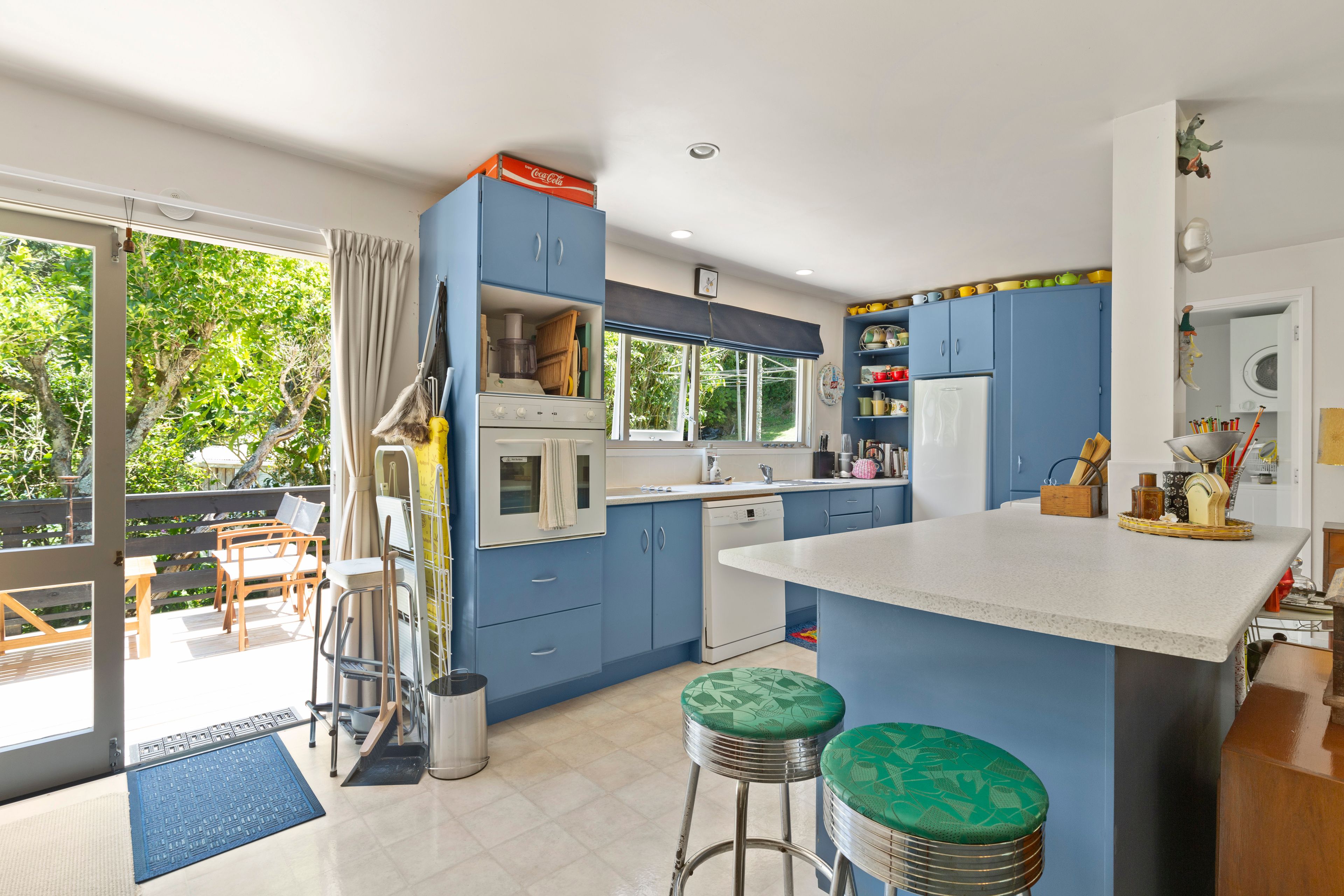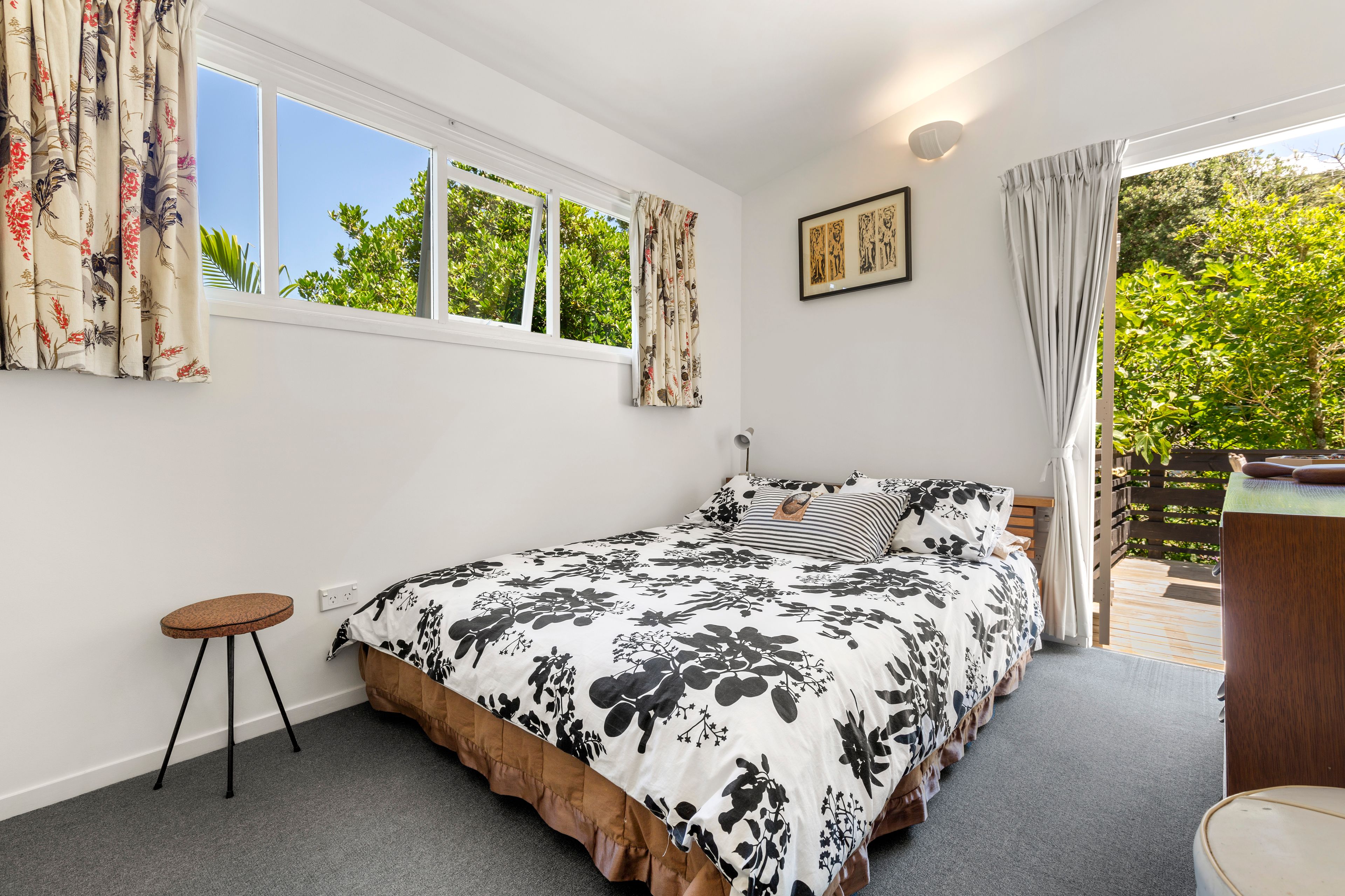 Both bedrooms have access to the outdoors which is very cool. The large open plan living and dining also open to the gardens while the spacious kitchen offers views to the bush.