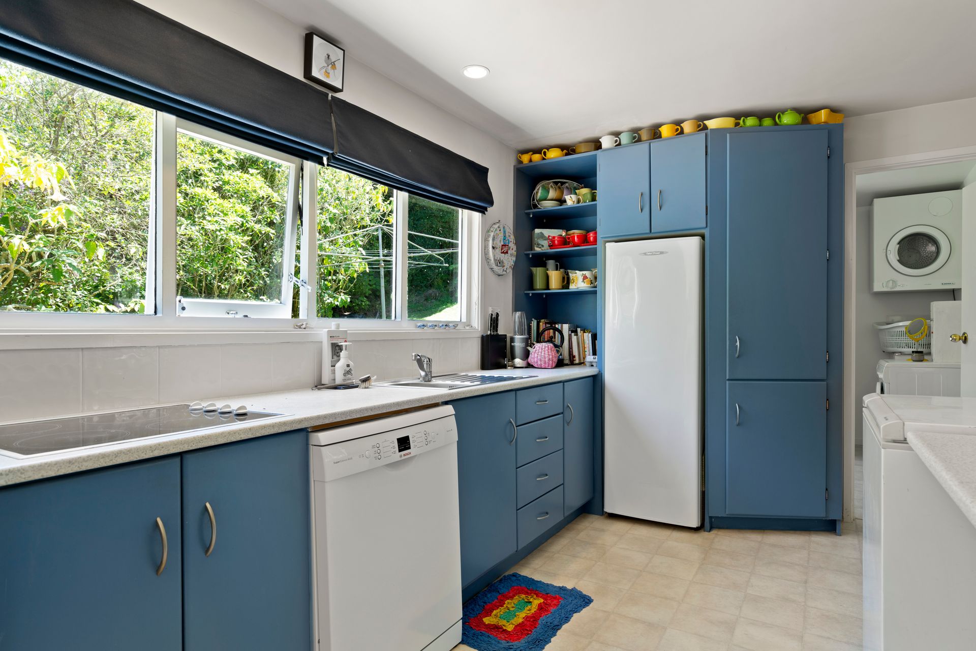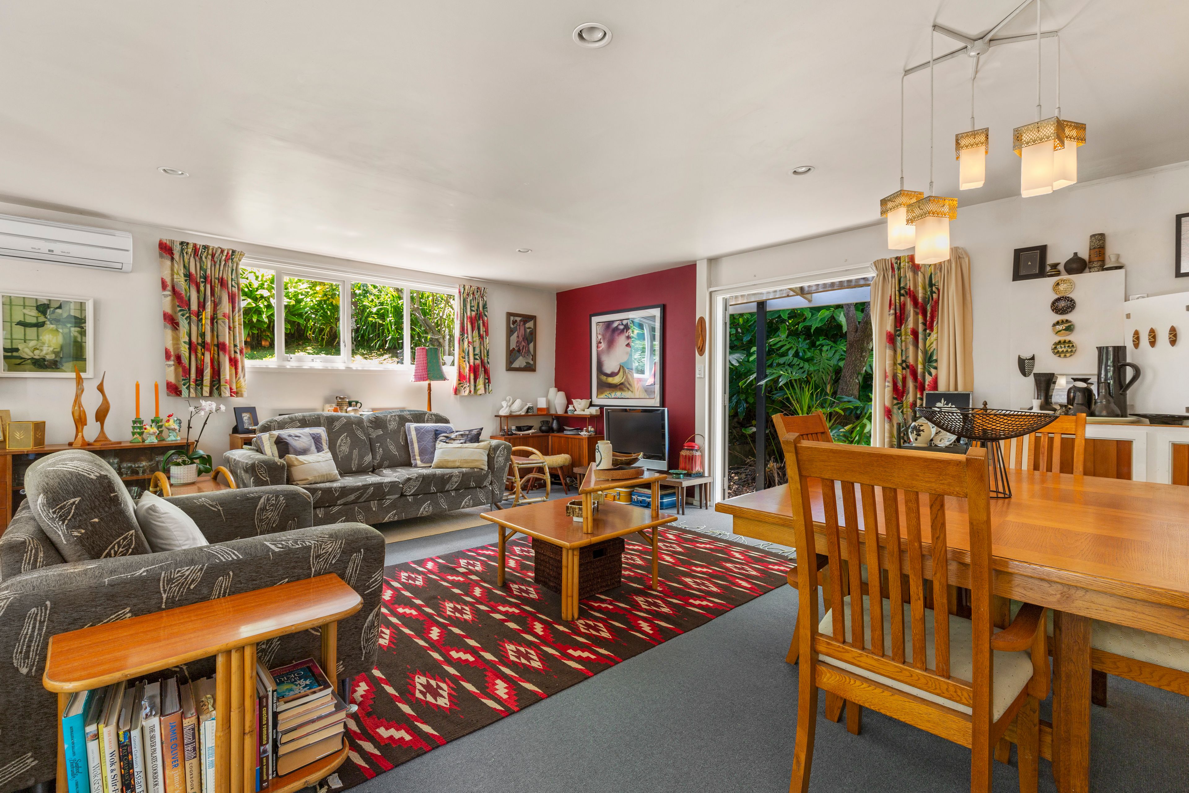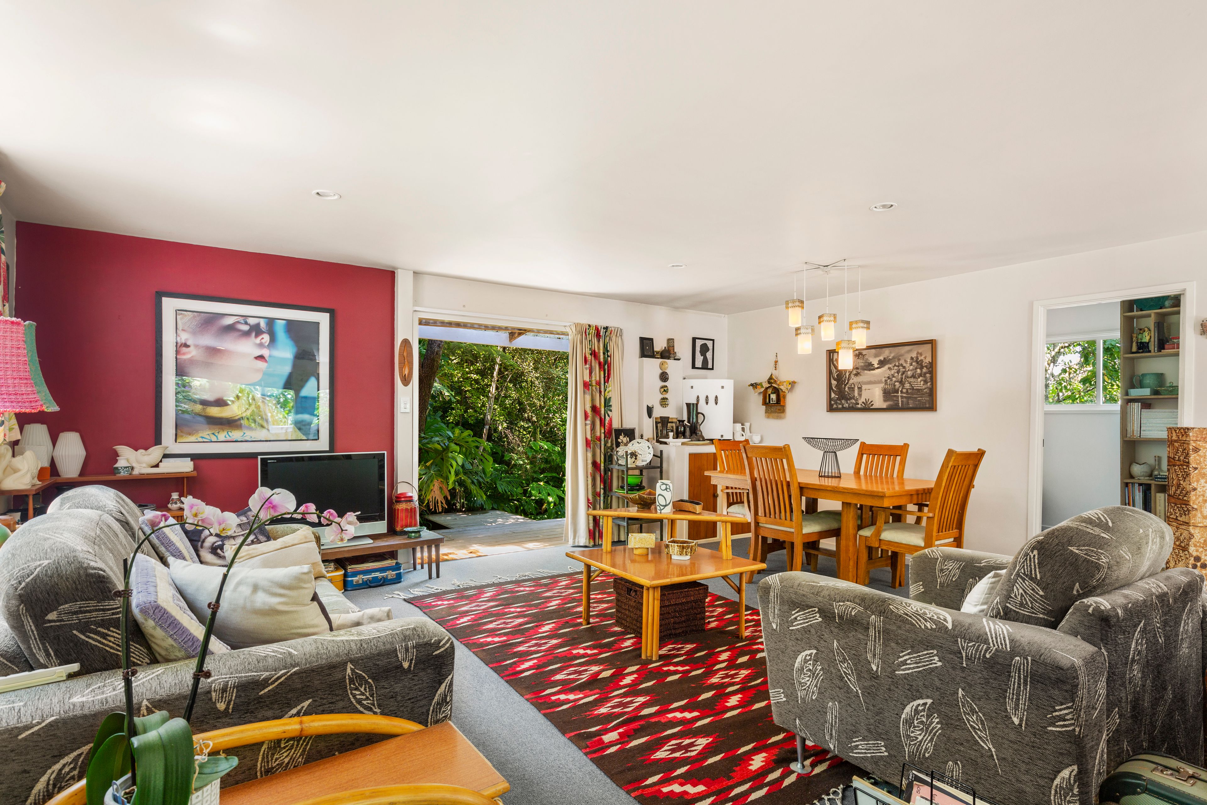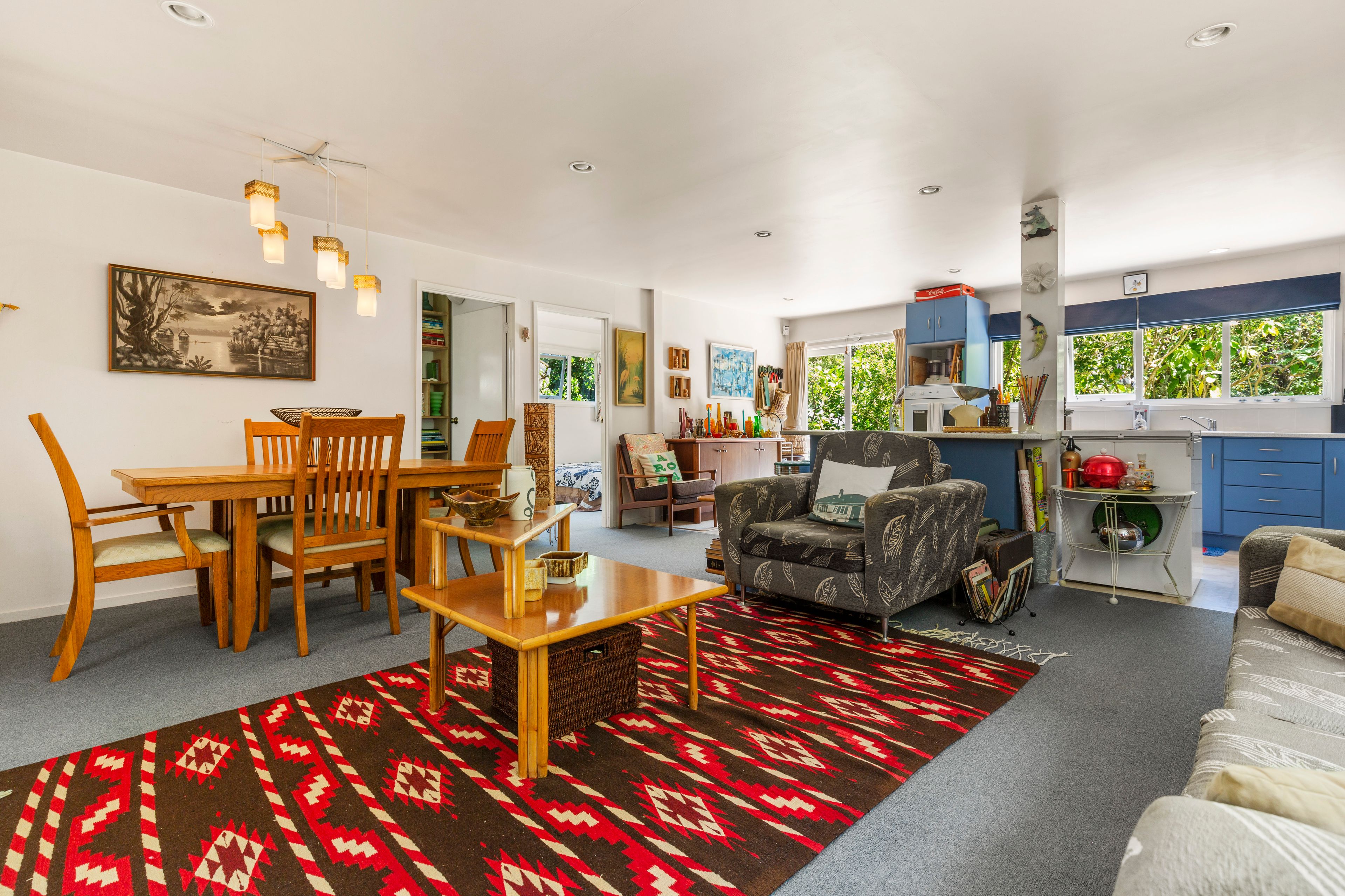 Both bedrooms have access to the outdoors which is very cool. The large open plan living and dining also open to the gardens while the spacious kitchen offers views to the bush.