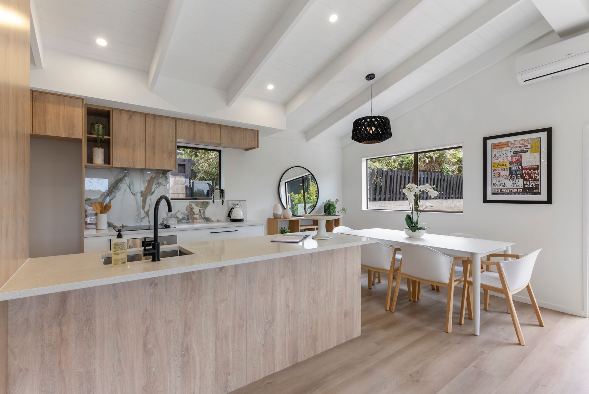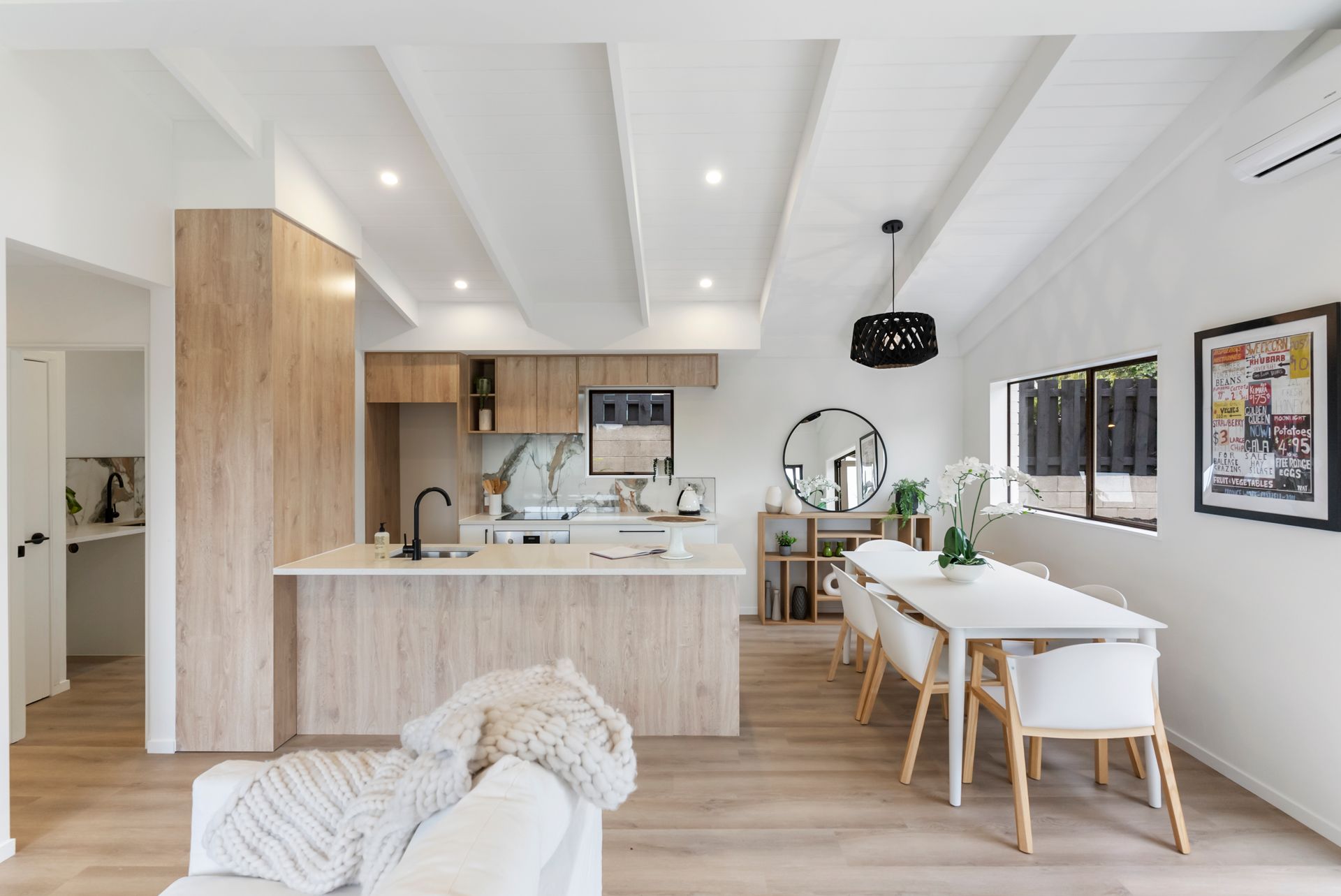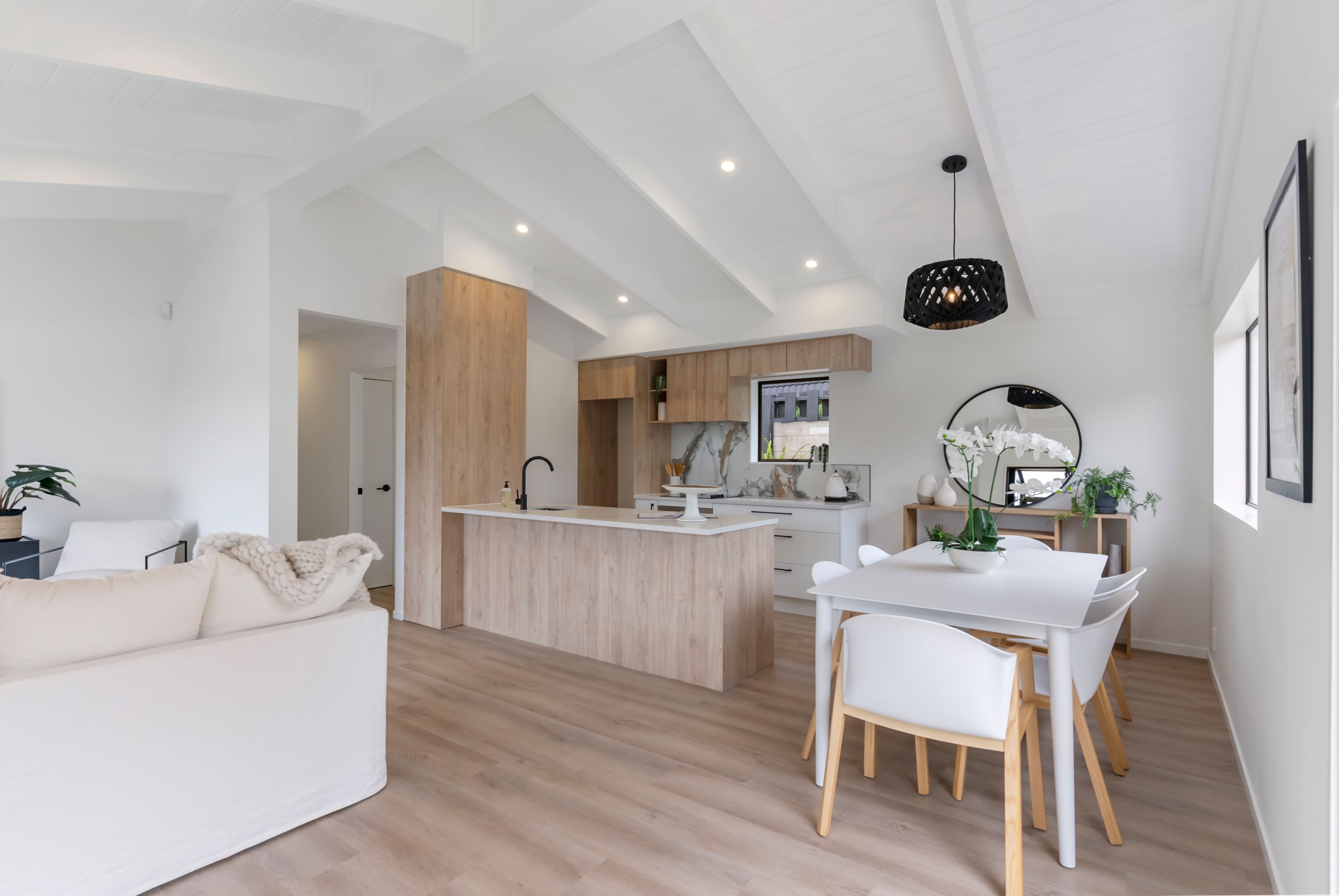 Open plan living, kitchen and dining, all renovated to a high standard