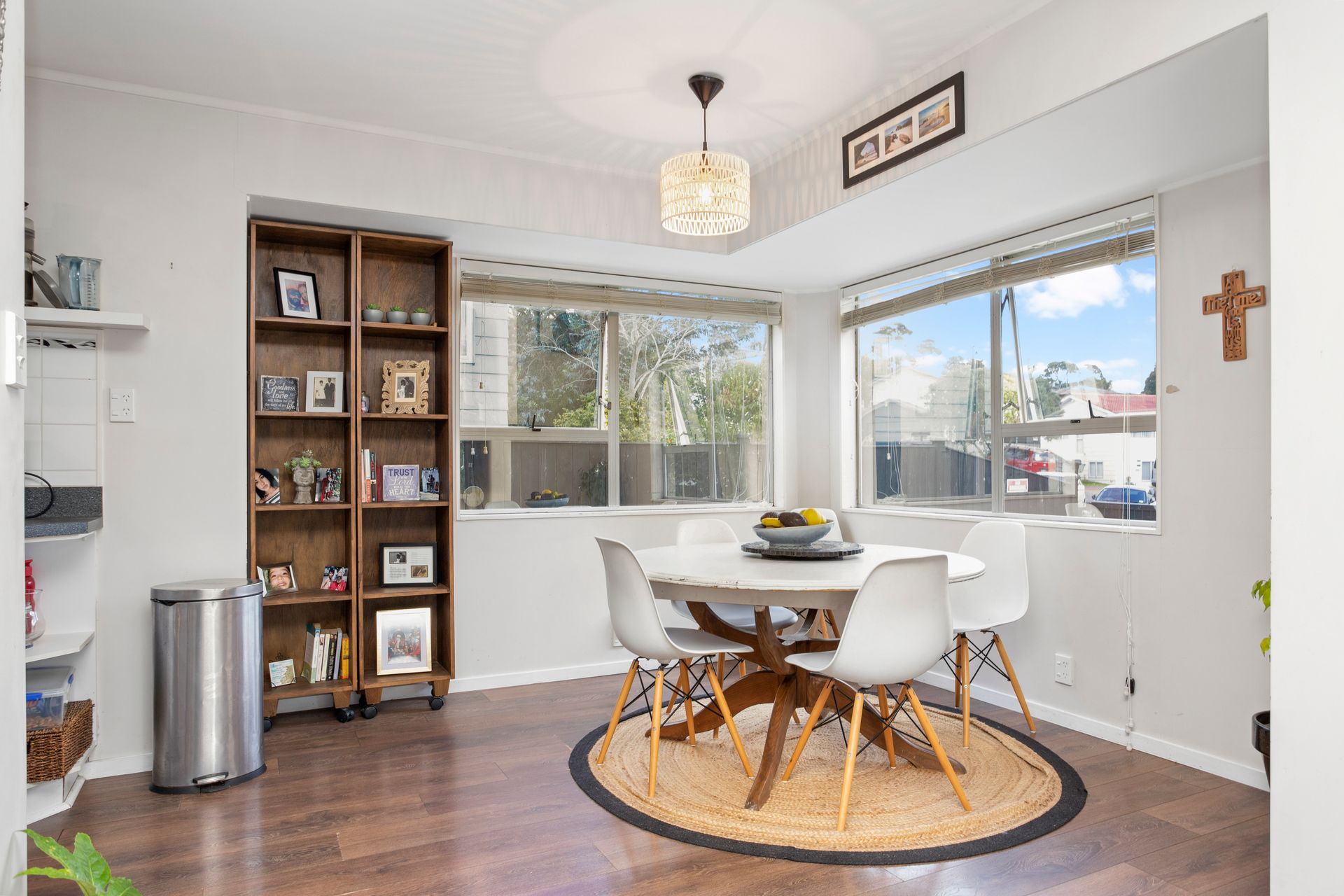 Laminate floors throughout for a neat and modern appearance and low upkeep. Modern family bathroom and laundry, Open plan lounge and dining area with wood burner and heat pump for those chilly evenings and door to patio and garden for those summer days.