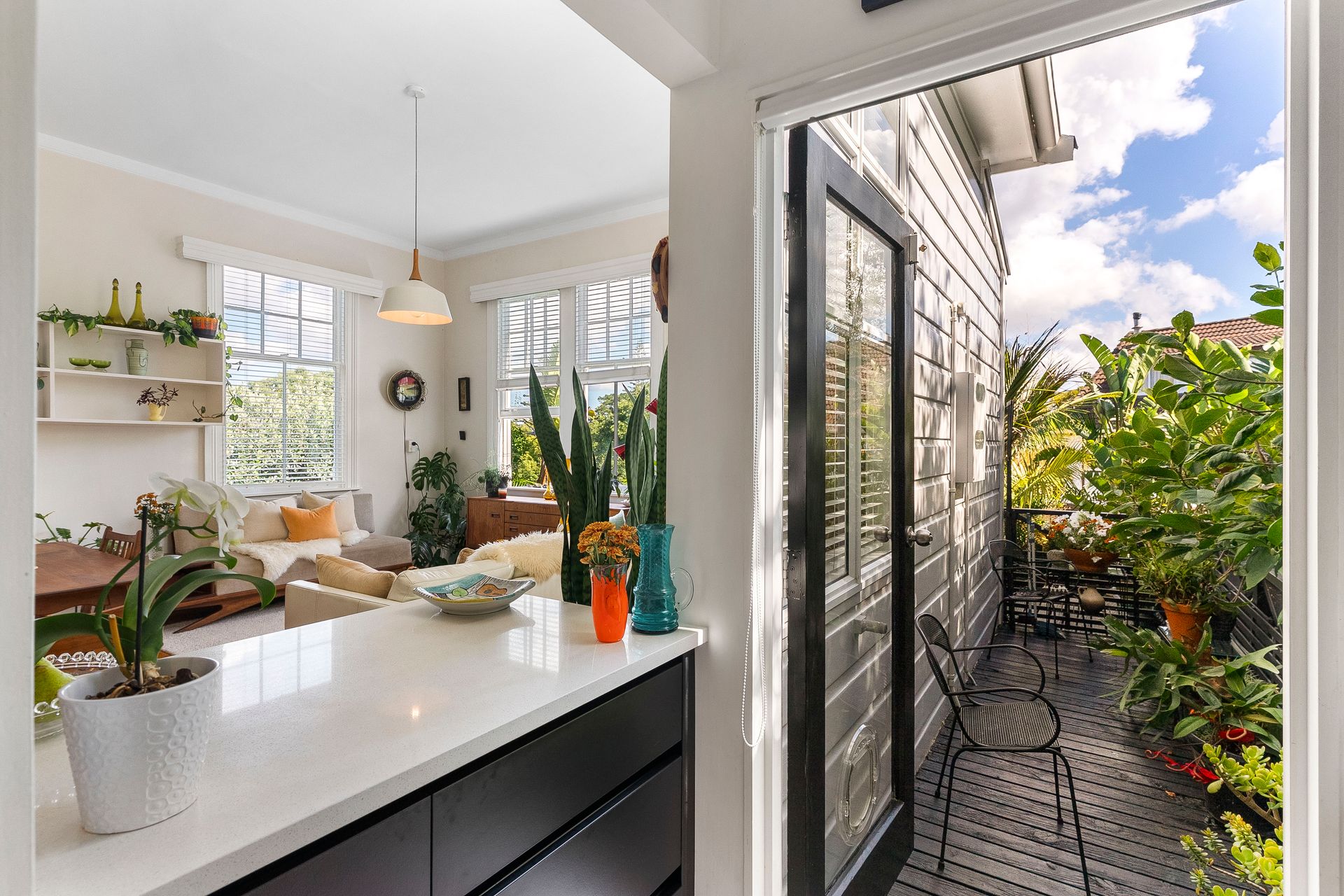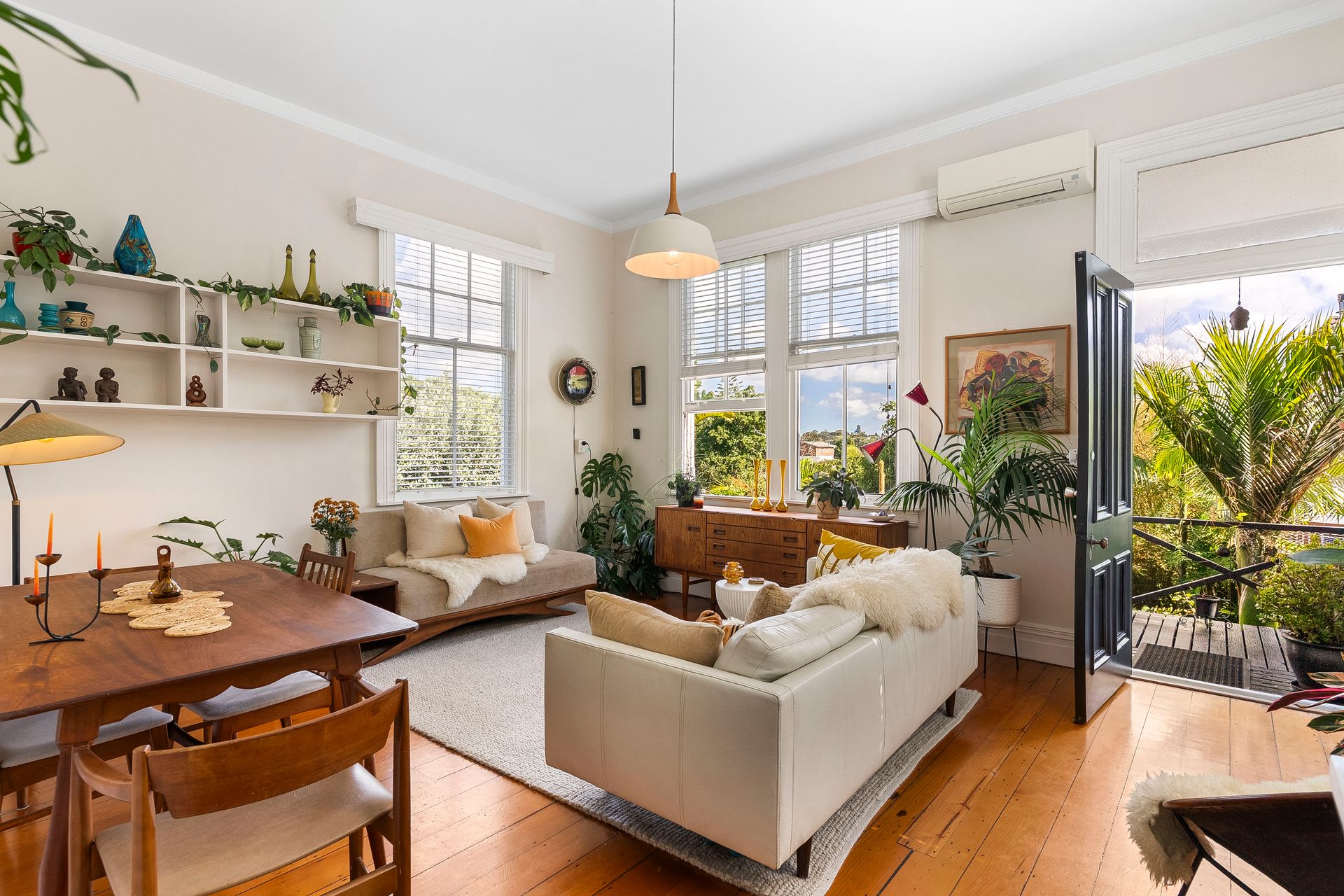The open plan dining and lounge are light and sun filled via the gorgeous sash windows. Your days will be spent enjoying this warm and welcoming space. The sunny wrap-around deck - ideal for morning tea or coffee, and afternoon vino's with friends.