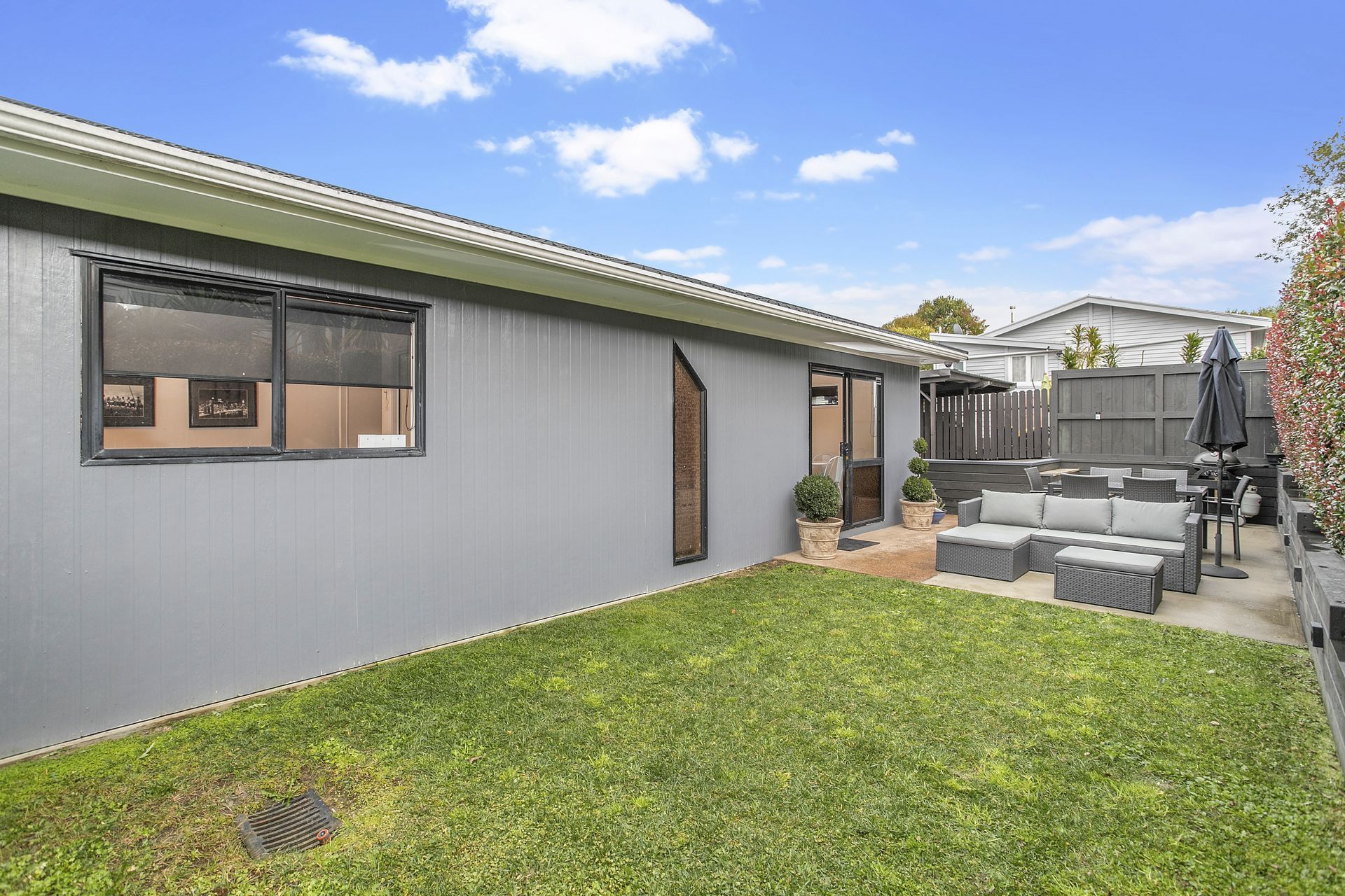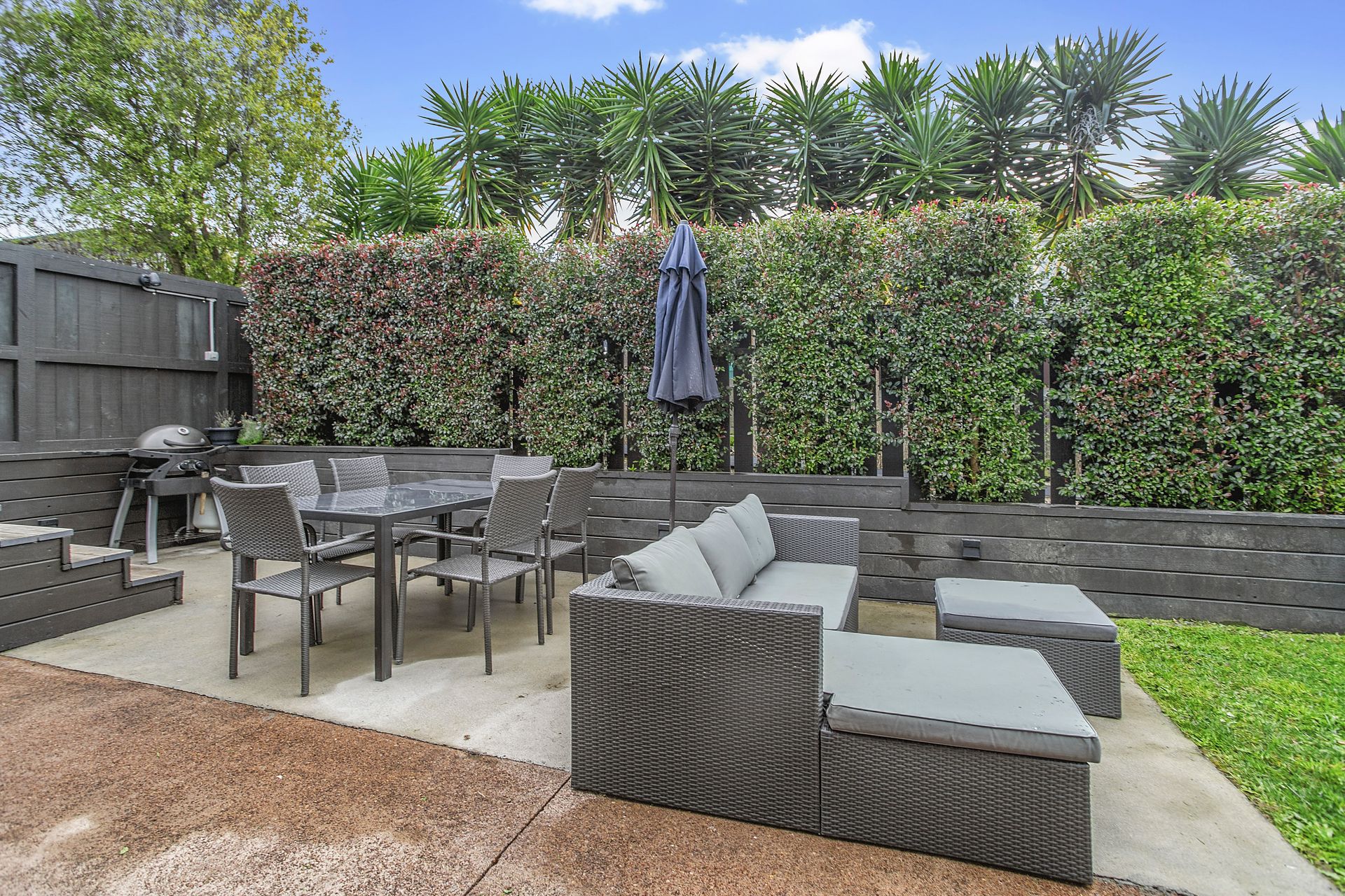 A private fenced outdoor entertainment area enjoys all day sun and will prove to be a great spot for the future summer barbecues.