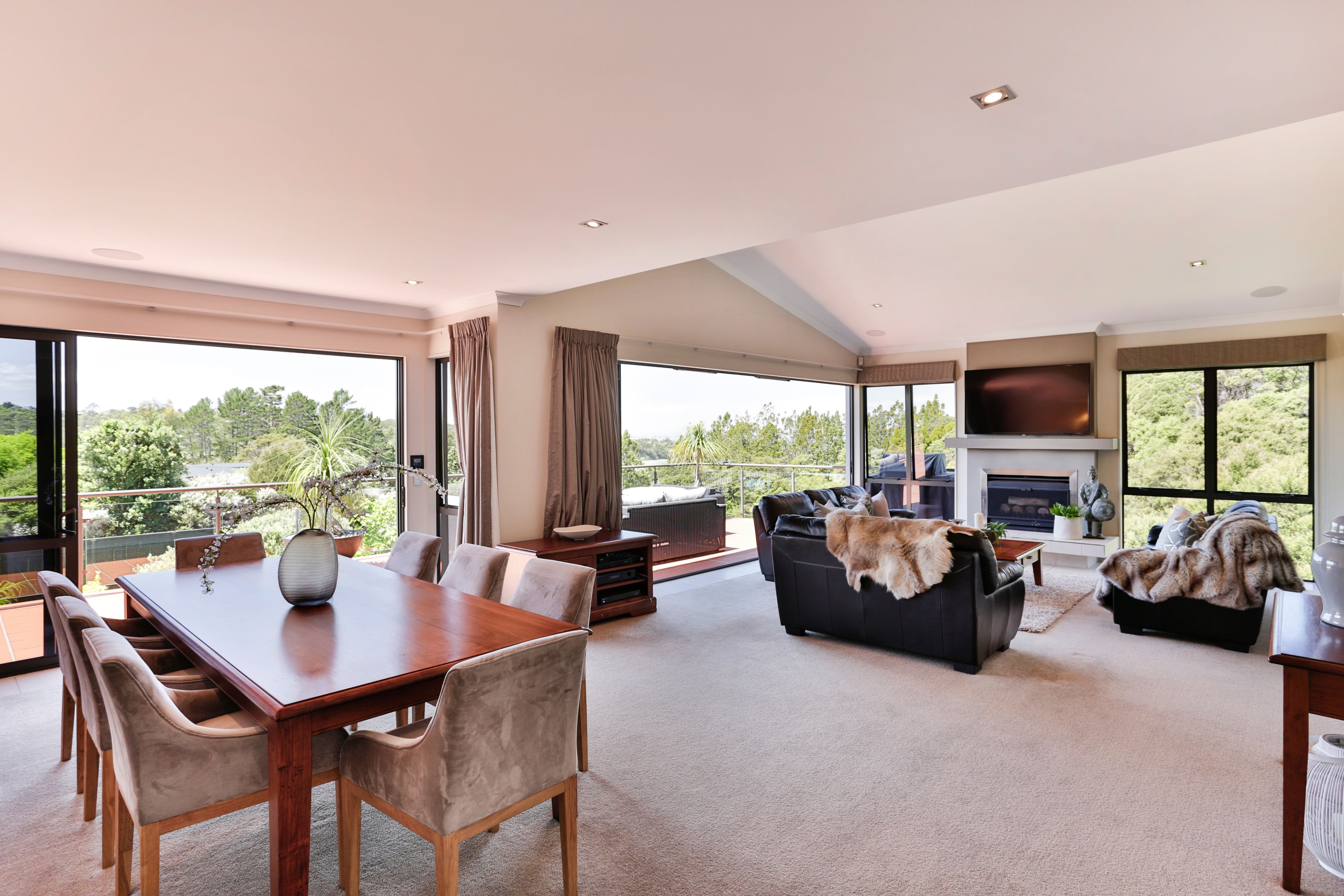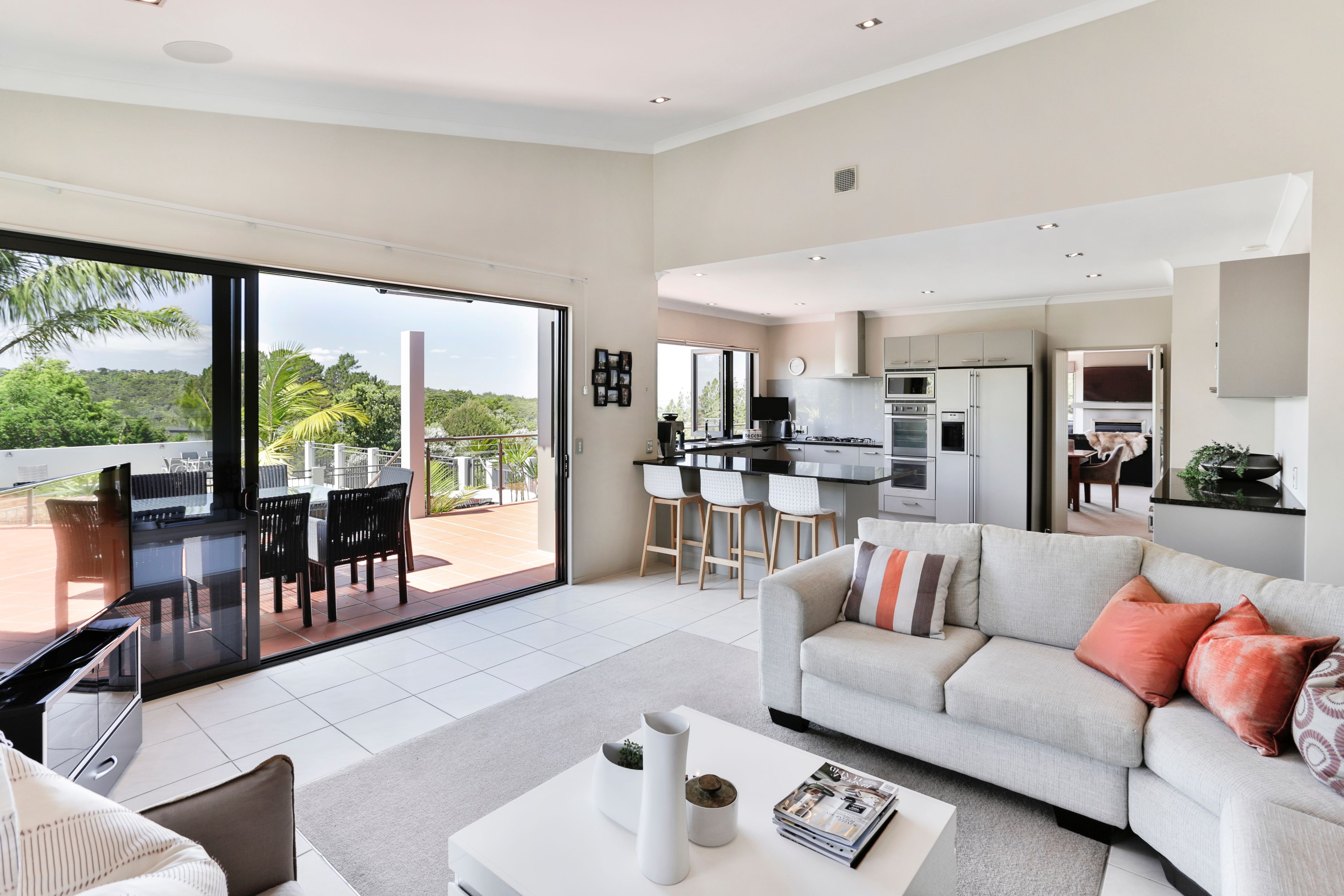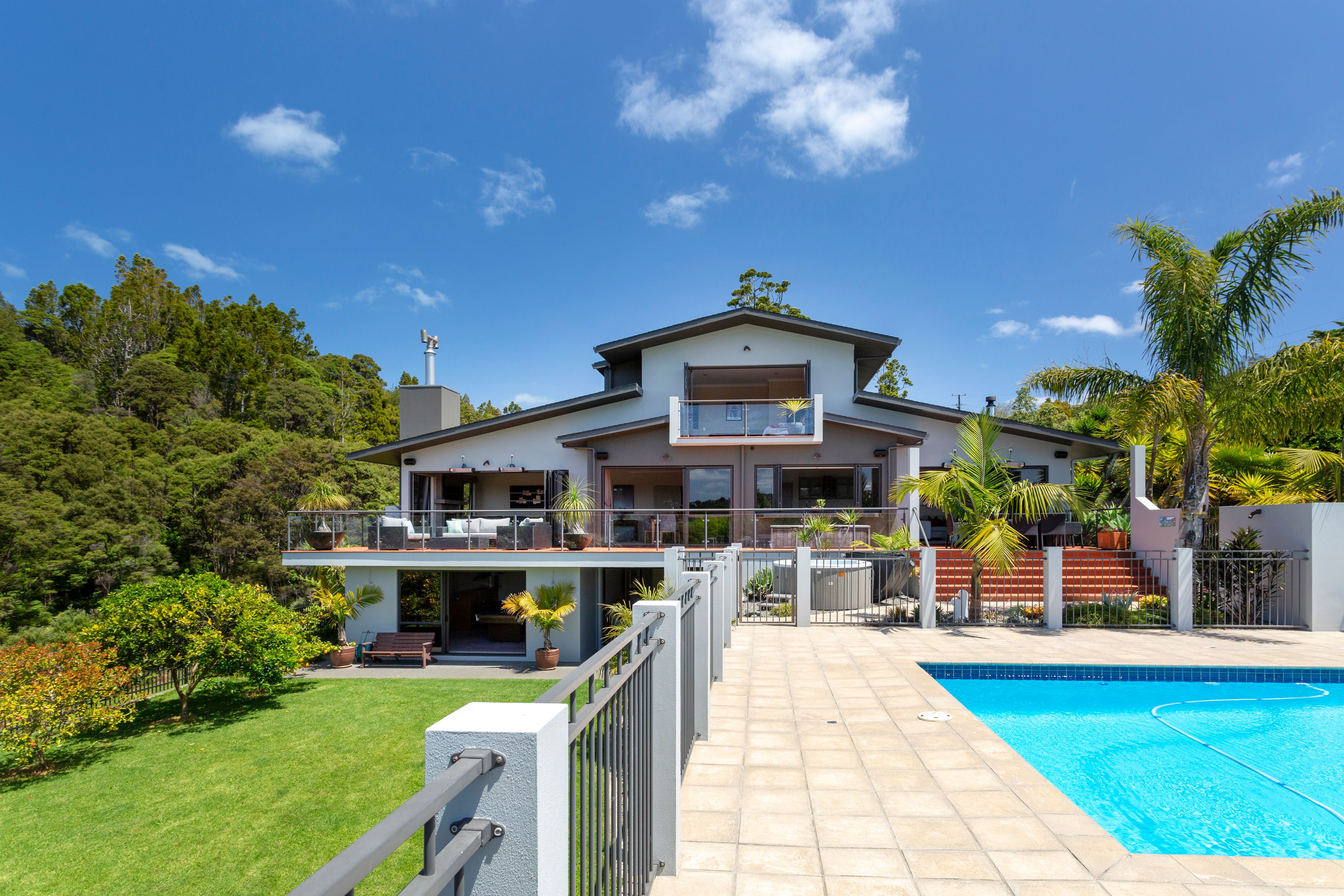 Set on the hilltop with elevated north-facing views across native forest to the hills and harbour, this immaculate and beautifully presented contemporary masonry residence is like living in a luxury holiday home year round - with just a 10 minute drive to Titirangi village.