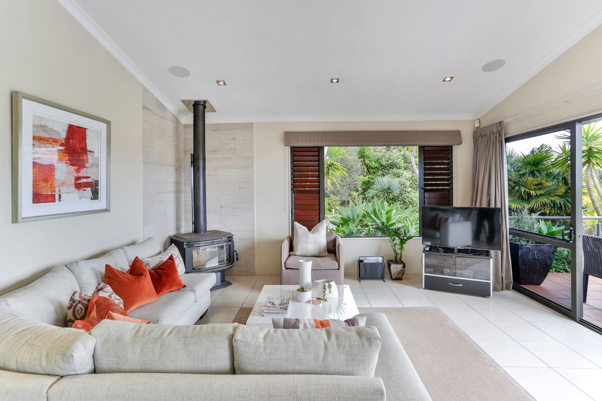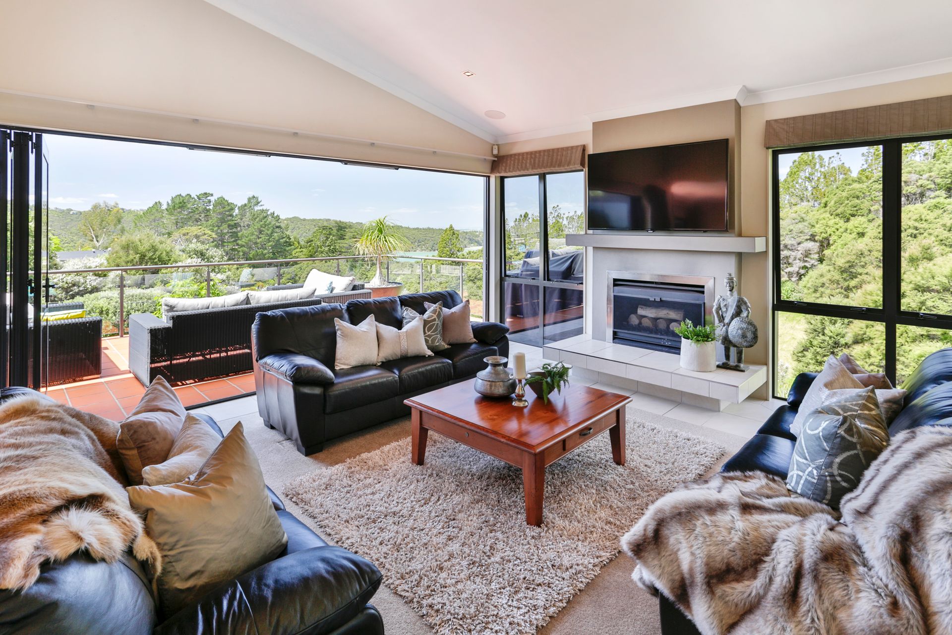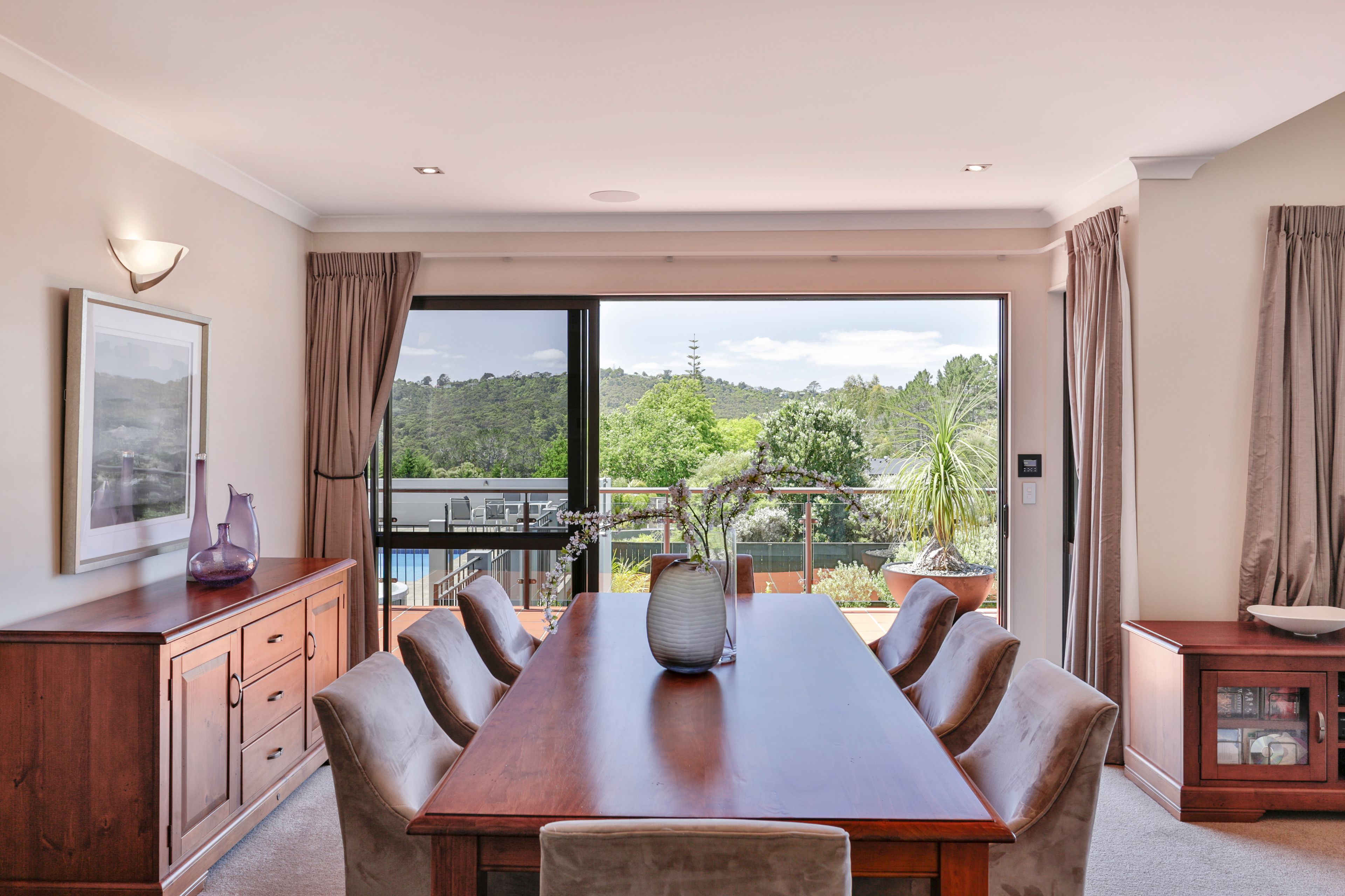 Set on the hilltop with elevated north-facing views across native forest to the hills and harbour, this immaculate and beautifully presented contemporary masonry residence is like living in a luxury holiday home year round - with just a 10 minute drive to Titirangi village.