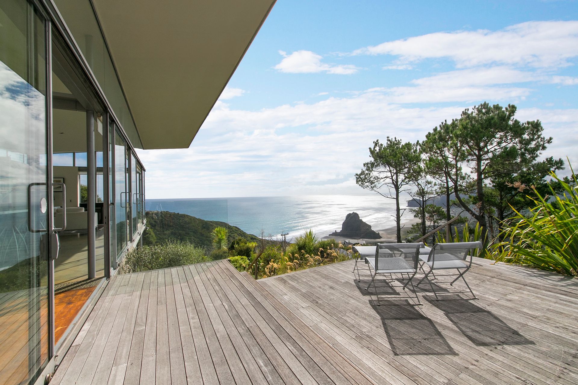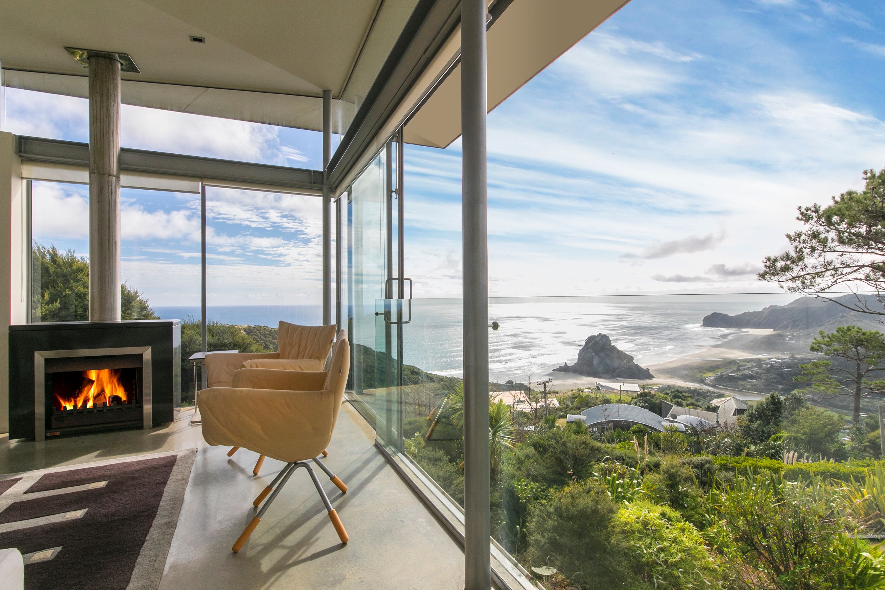 home standing proudly on the hill overlooking Piha offers a uniqueness that is as current today as it
