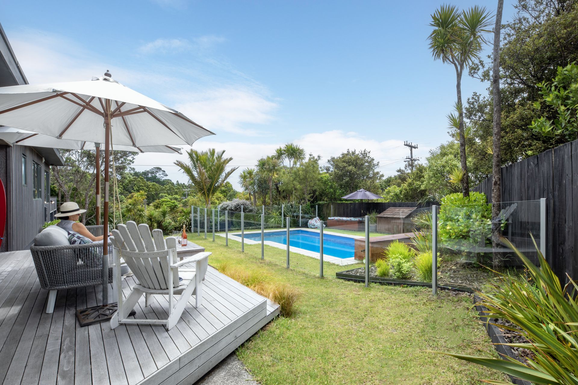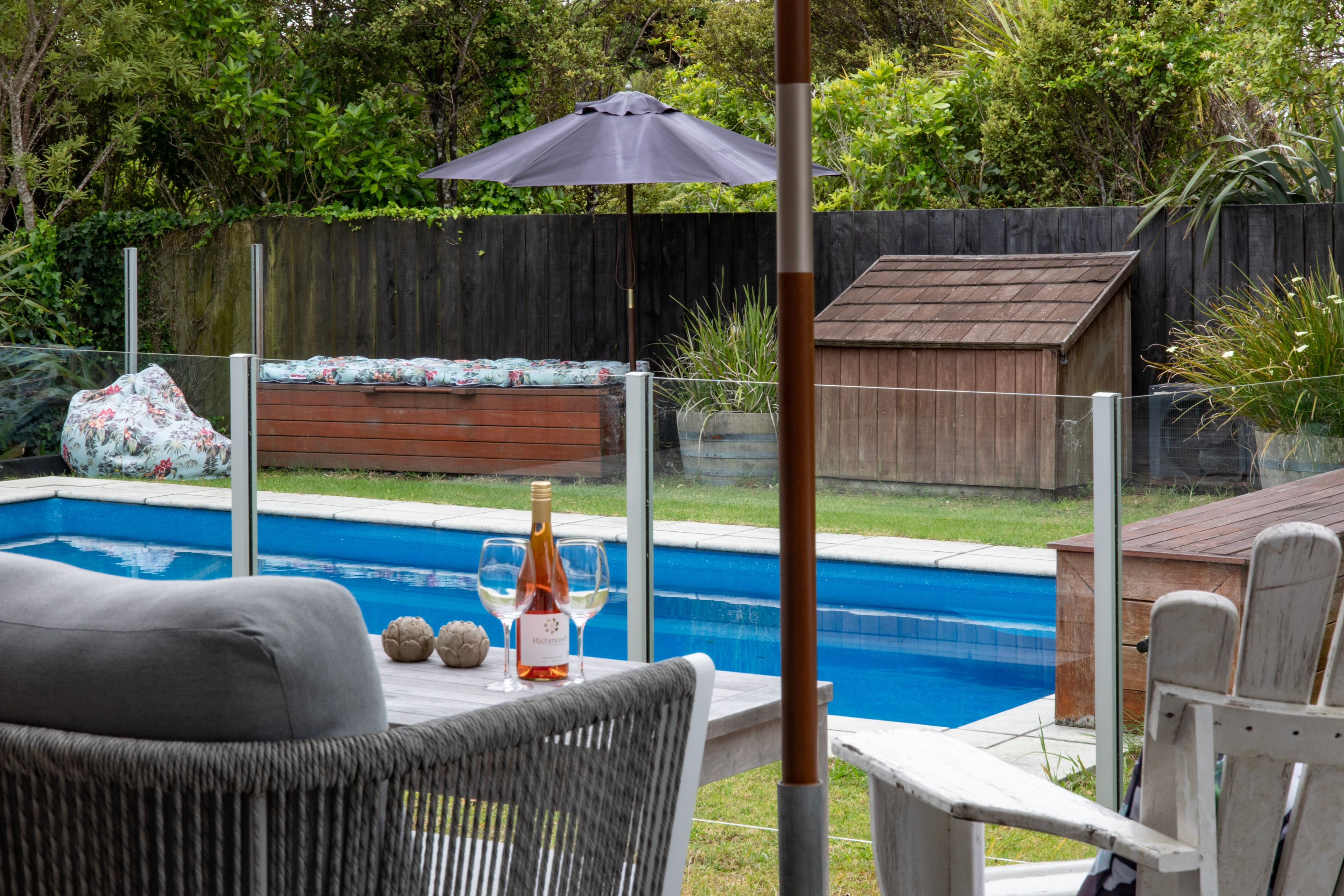 Enjoy effortless indoor-outdoor flow from the main lounge onto a spacious sunny deck ready for relaxing beside the pool or stay cosy by the large wood burner during wild West Coast winters. The second lounge with doors opening onto another deck is perfect for the kids, as a rumpus room or a substantial home office.