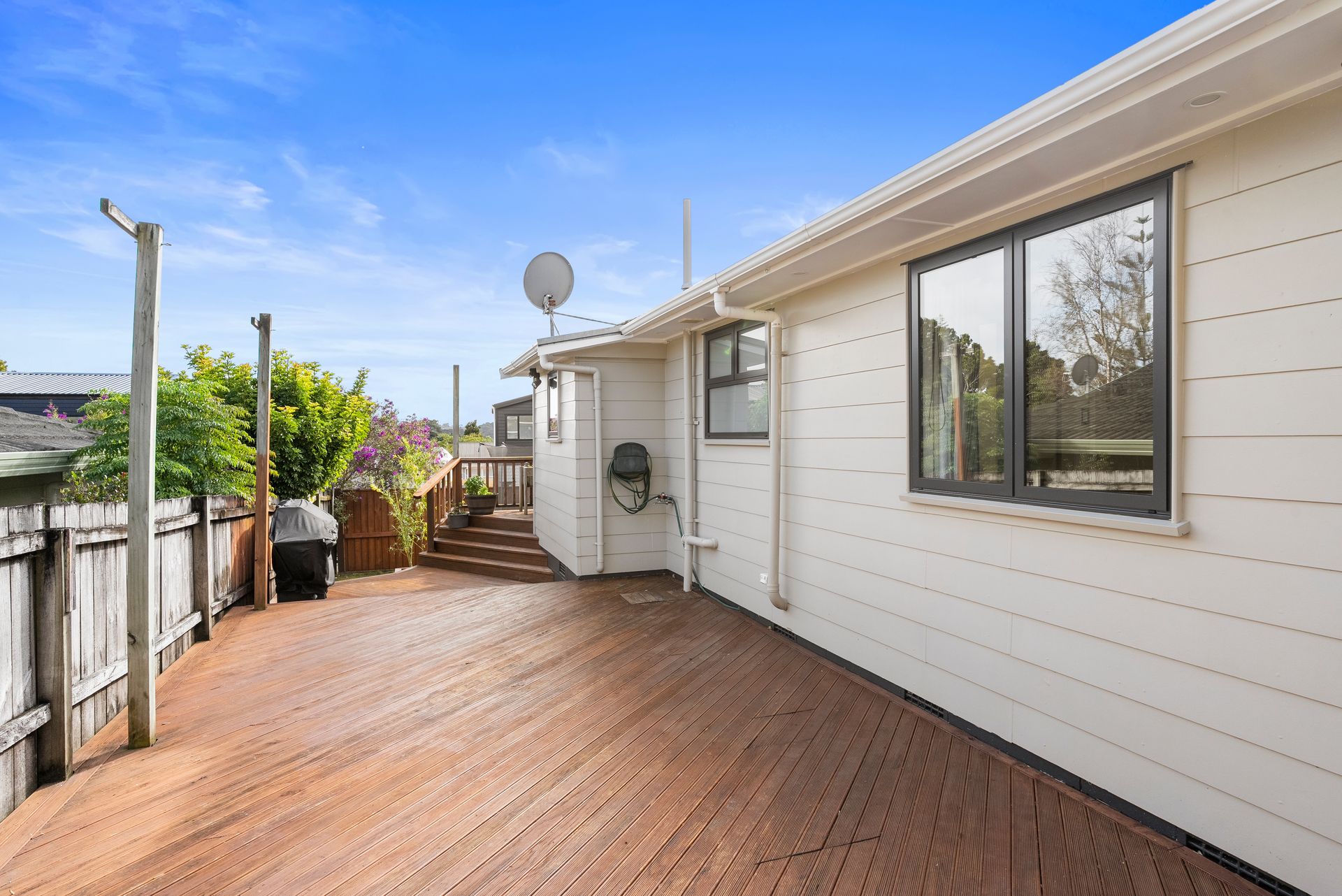 Huge entertaining deck off the kitchen with an in-built sandpit for the kids, thriving garden beds and yes, room for the trampoline, the boat and/or trailer.
