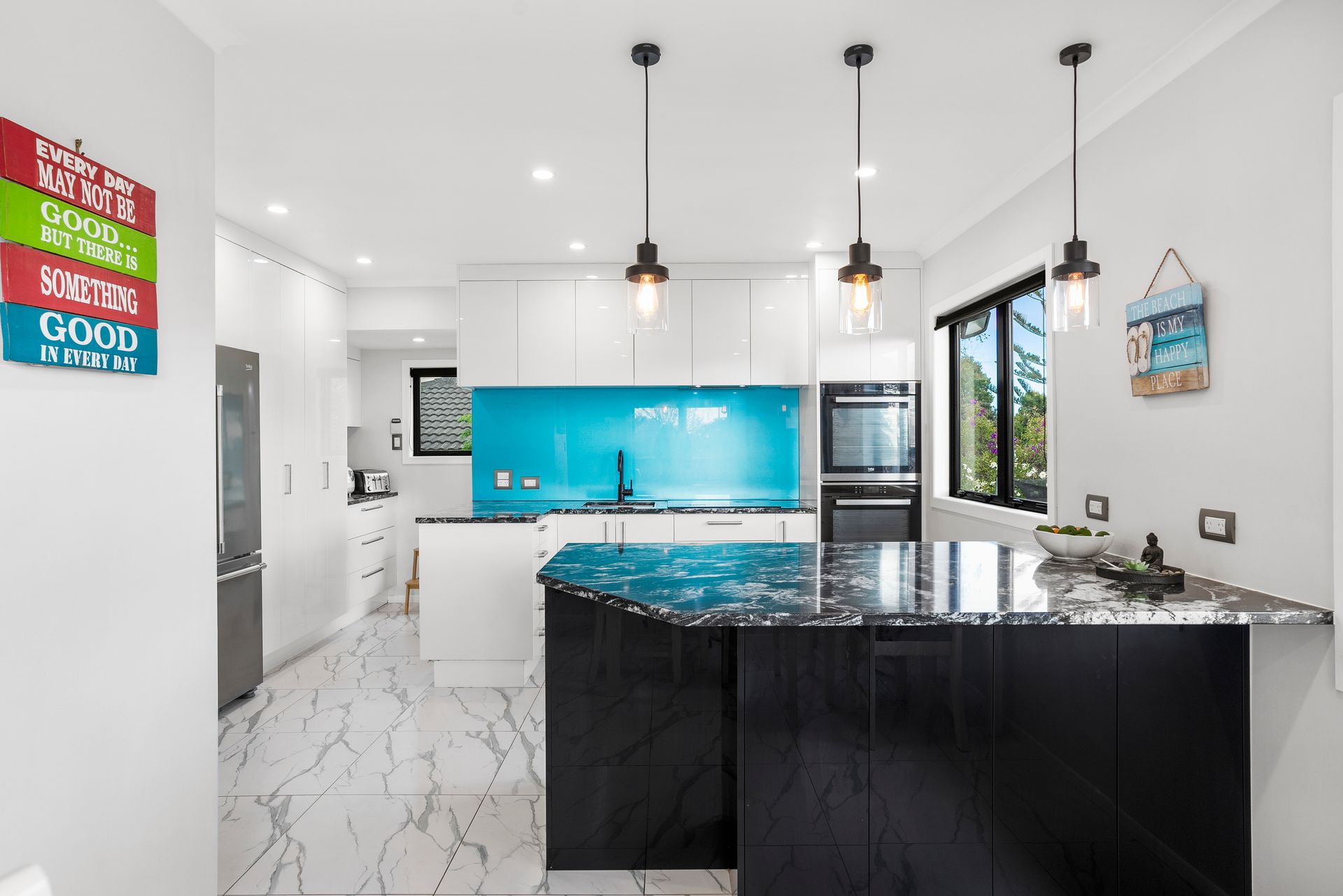 You will love the designer kitchen with unique stone bench tops, double dishwashing drawers, induction cooktop, double ovens and an extra space maximizing functionality and storage. All areas are seamlessly connected, this home just works.