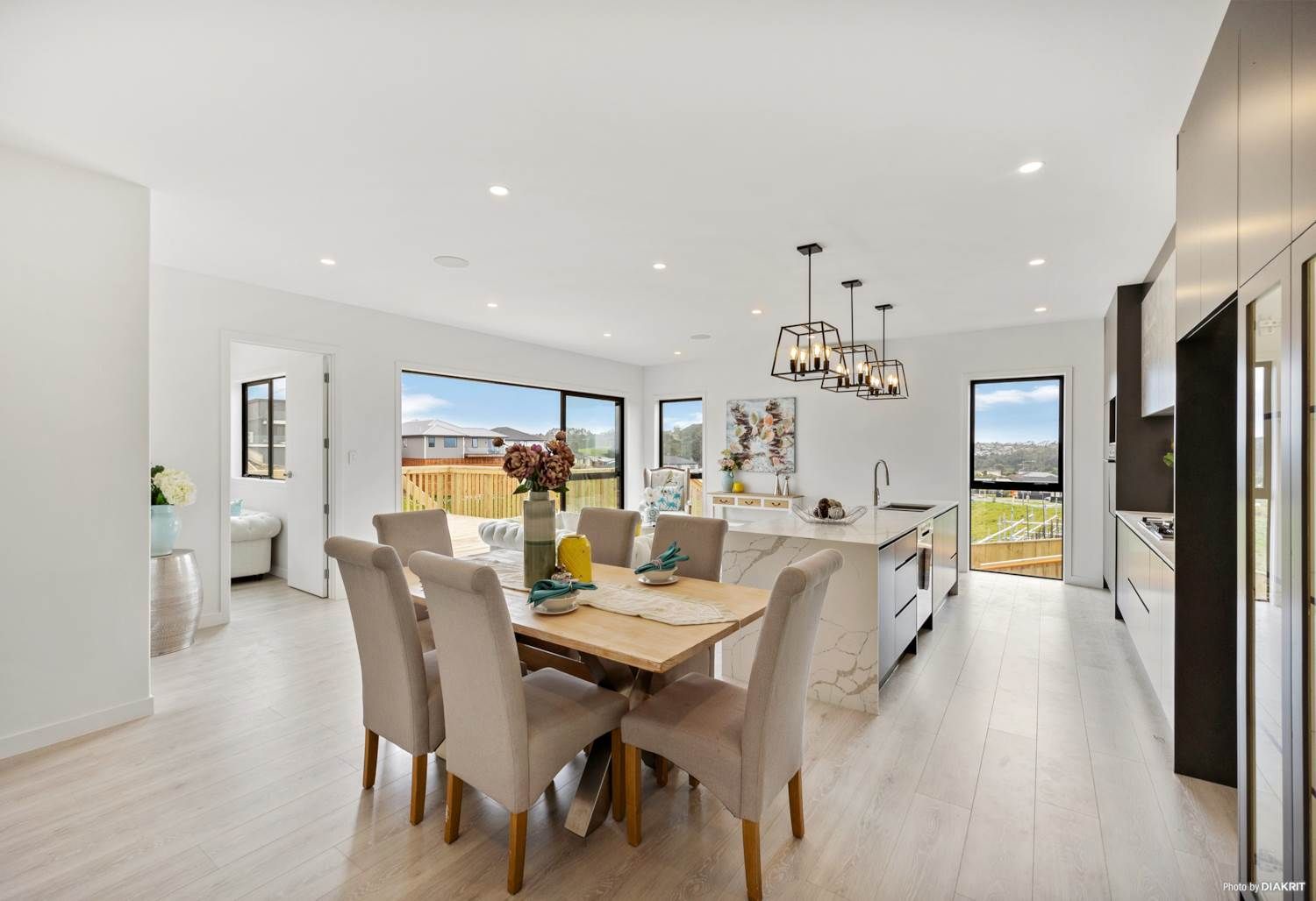 Step inside to a grand entrance adorned with a beautiful chandelier, showcasing thoughtful design and layout throughout. Enjoy elevated views from various rooms in this spacious home, which features 6 bedrooms, 3 living areas, and 4.5 bathrooms (including 2 ensuites). The open-plan living area flows seamlessly into a modern chef's kitchen with a scullery, leading to a vast outdoor entertainment deck and lush garden. This serene space is perfect for relaxation and enjoying the surrounding native bush views. Additionally, the double internal garage and ample parking cater to all your family's needs.