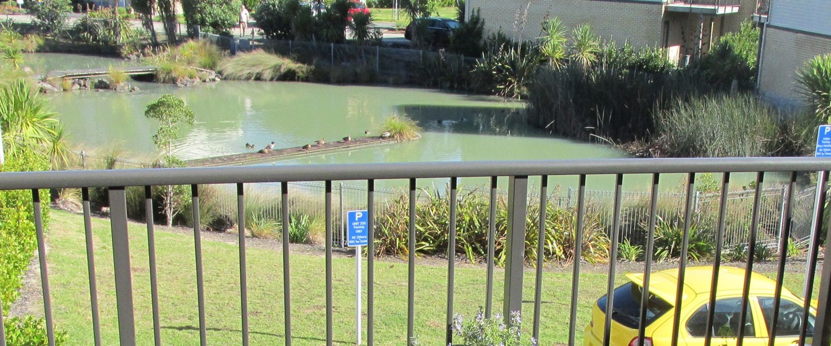This is a three level townhouse consisting of three double bedrooms and two bathrooms....two double bedrooms and bathroom on first floor, open plan modern kitchen and dining with living room leading out to good size entertainment deck in the middle floor with nice views to the pond. Third bedroom plus guest bathroom and a single internal access garage located on ground floor plus extra off street parking for one vehicle.