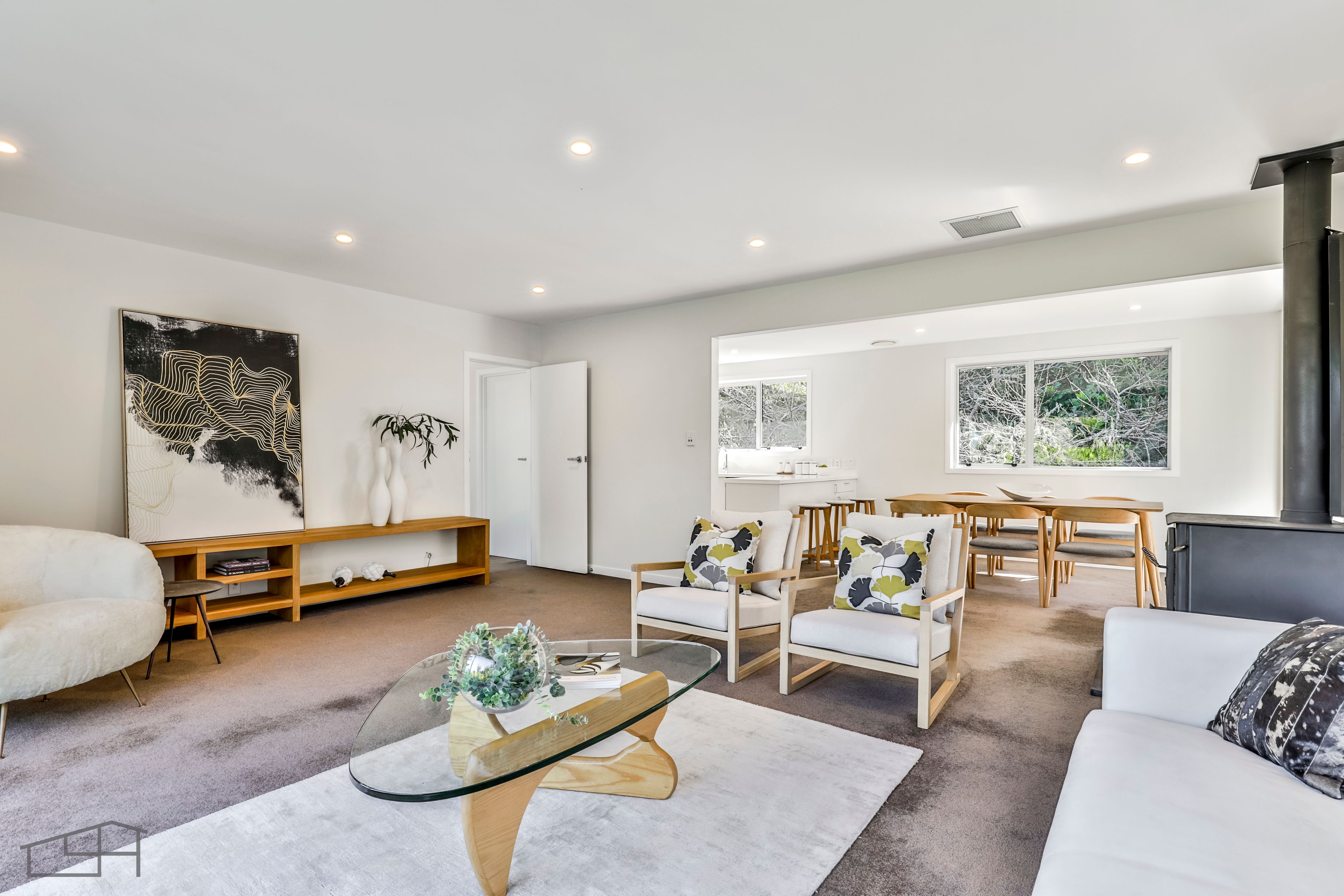 Open plan living captures the light and views across the treetops to the harbour. Centered by a generous contemporary kitchen with new bench tops, the whole space extends out to large wraparound decking for dining in the sunshine to the sound of birdsong with the breathtaking outlook as your backdrop.