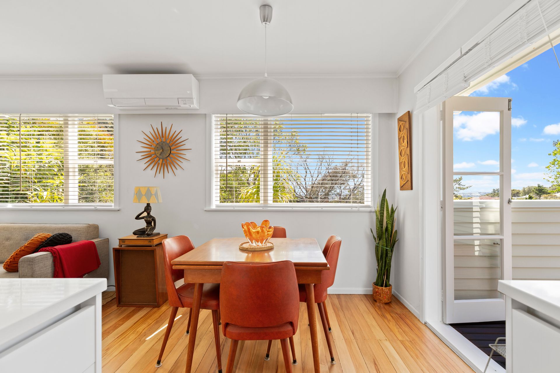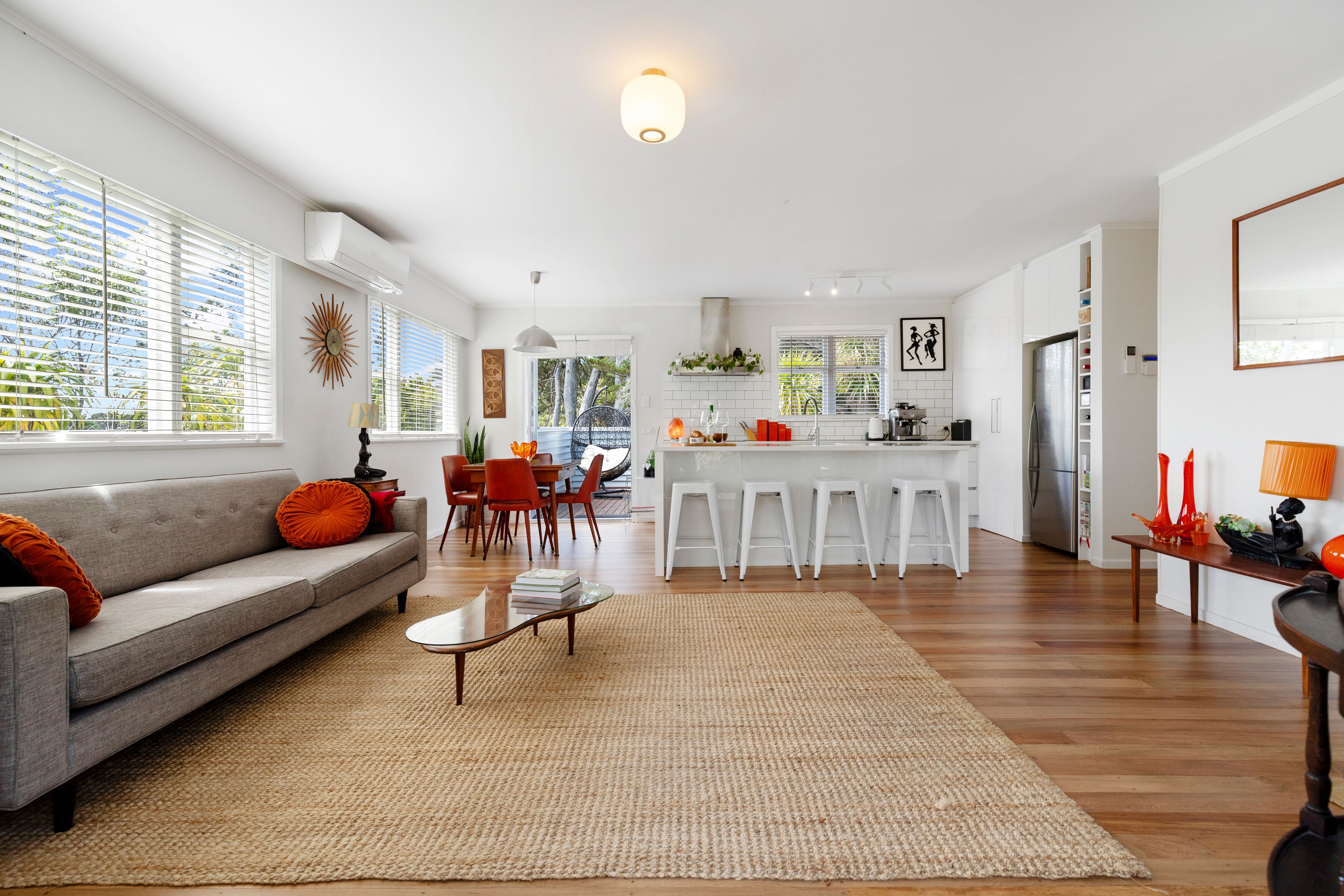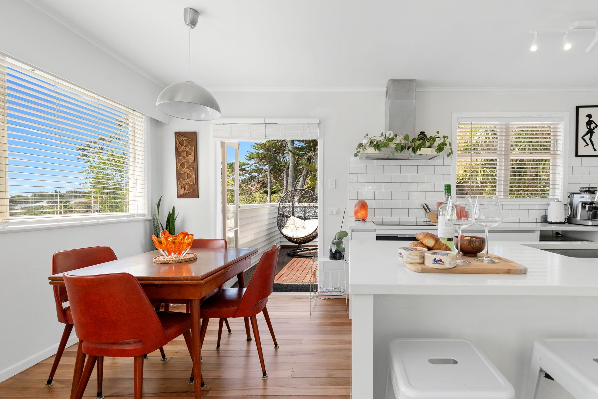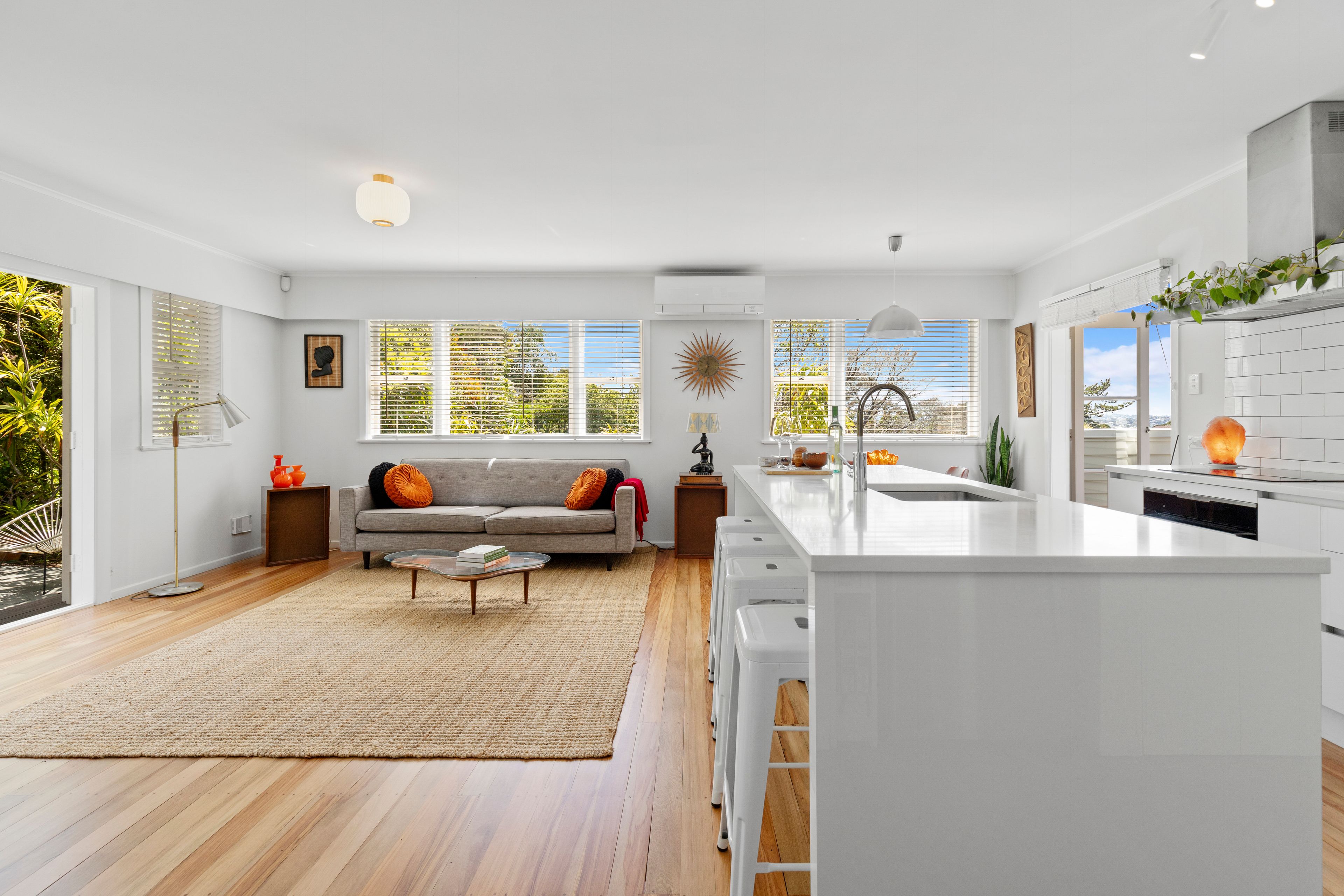 peaceful surroundings. Enter through the welcoming front door to discover a warm, classic Titirangi atmosphere with polished wooden floors and a bright and light-filled,