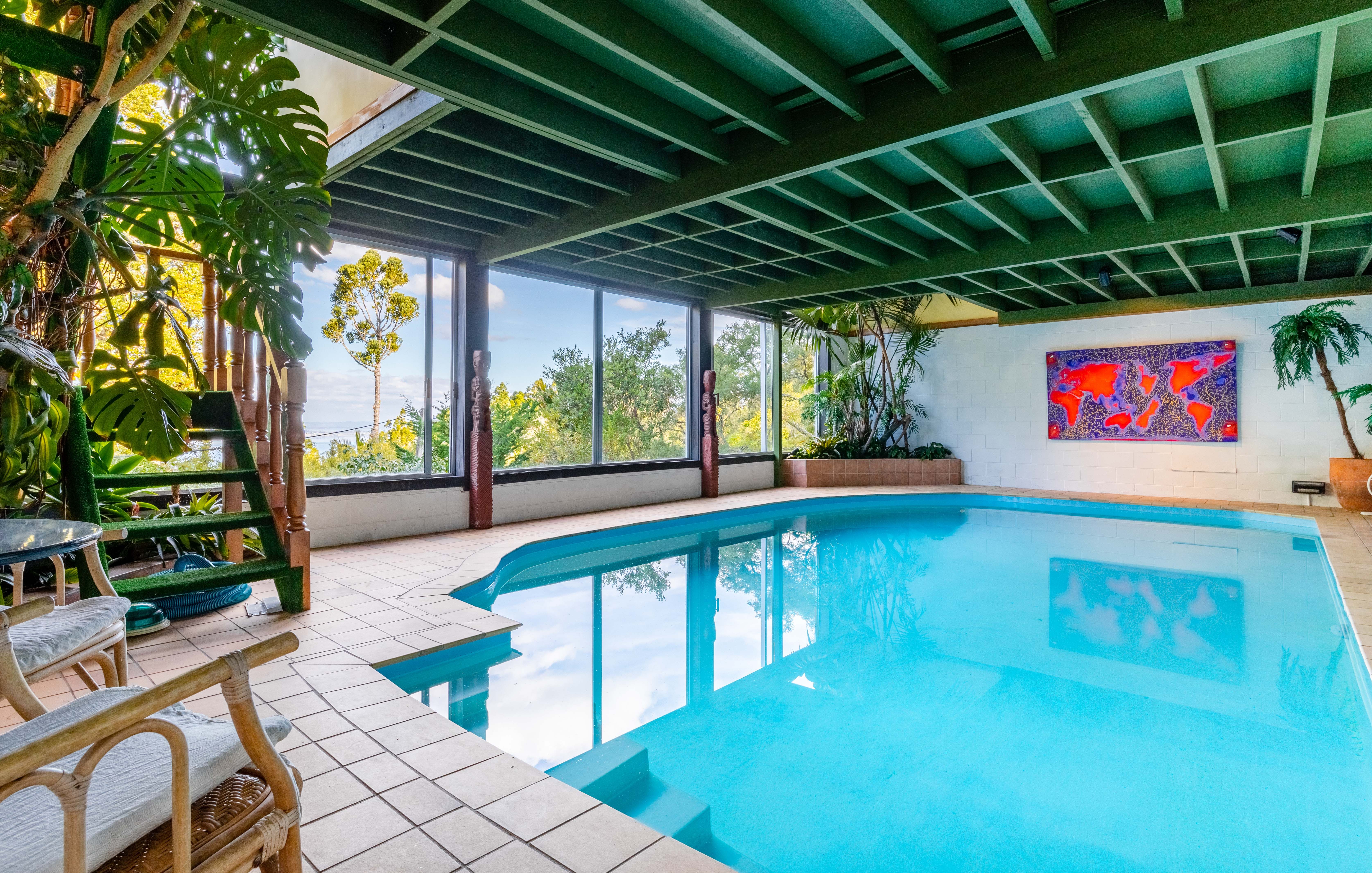 Elevation means spectacle and this property has that aplenty, with myriad tree-framed views of city, harbour and the Waitakere ranges. At night the views are a magical vista of twinkling city lights.