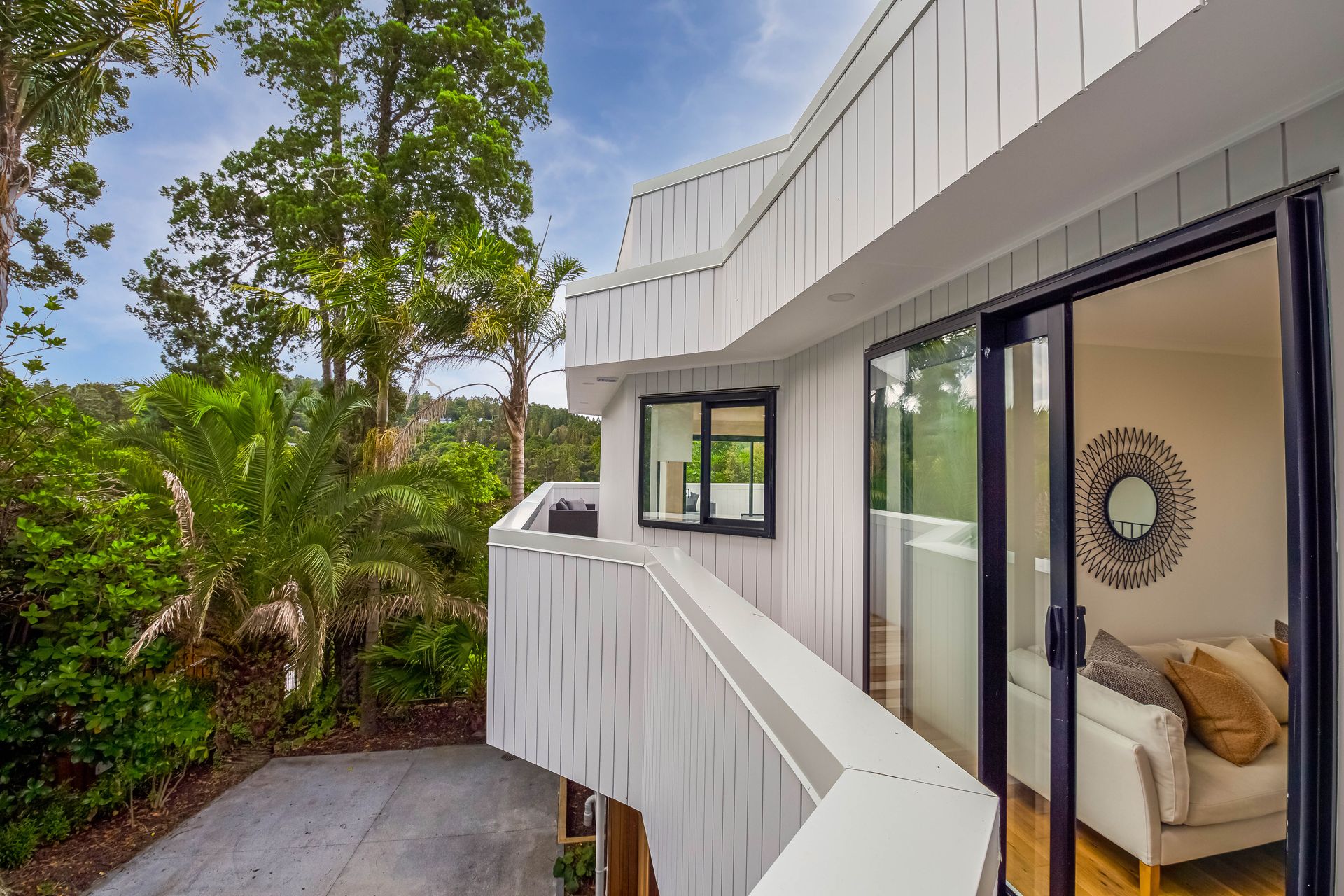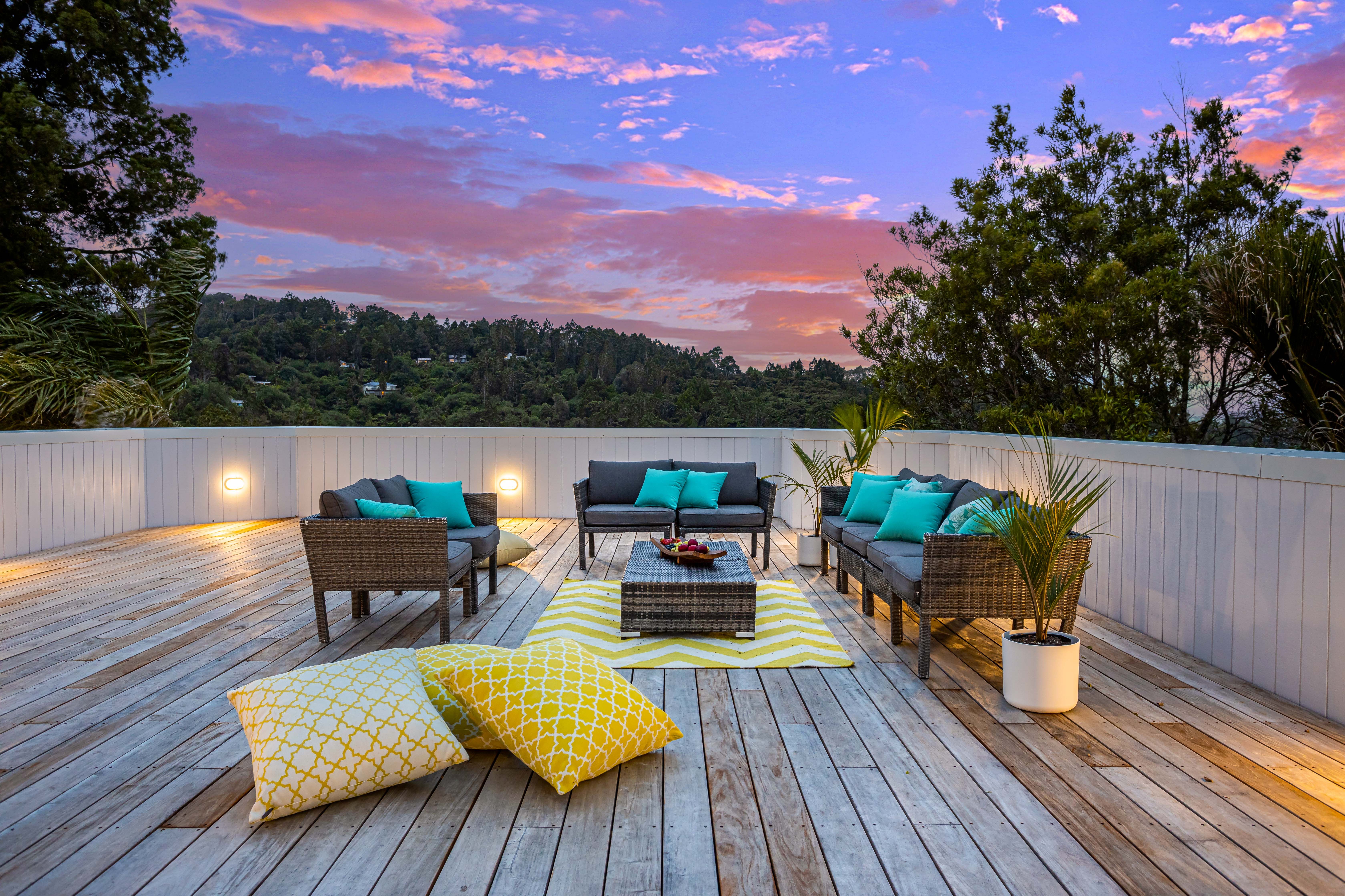 Where in Titirangi can you find a roof top terrace overlooking stunning sea views stretching all the way from the airport to a peek of the Sky City tower?
